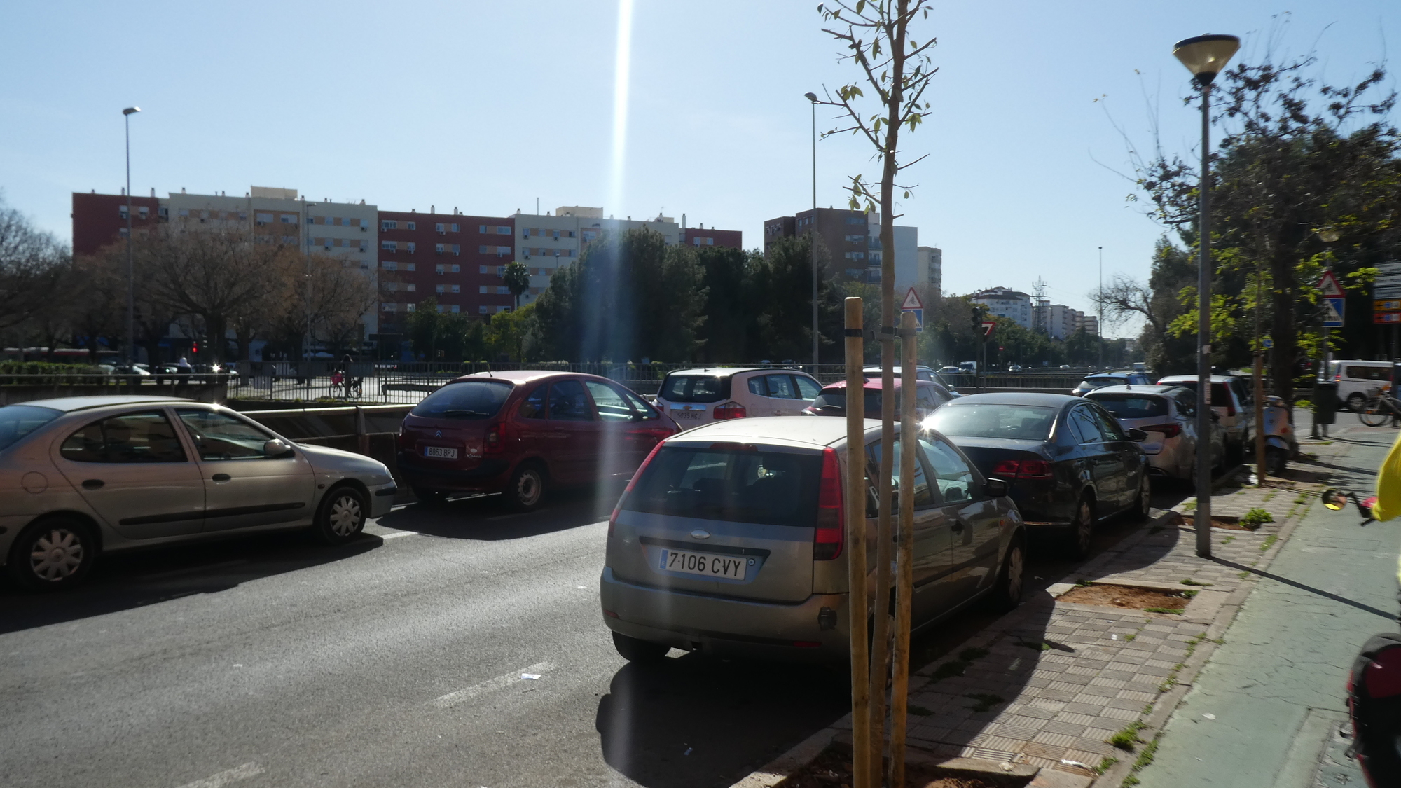 We could have done with some extra power, because it took about another hour to penetrate the layers of the new city, trying to reach the sweet core of Sevilla. This is the reverse of the process we did for leaving Cordoba. Onlything, Sevilla is twice the size of Cordoba, so going in and out should be about twice as tough.