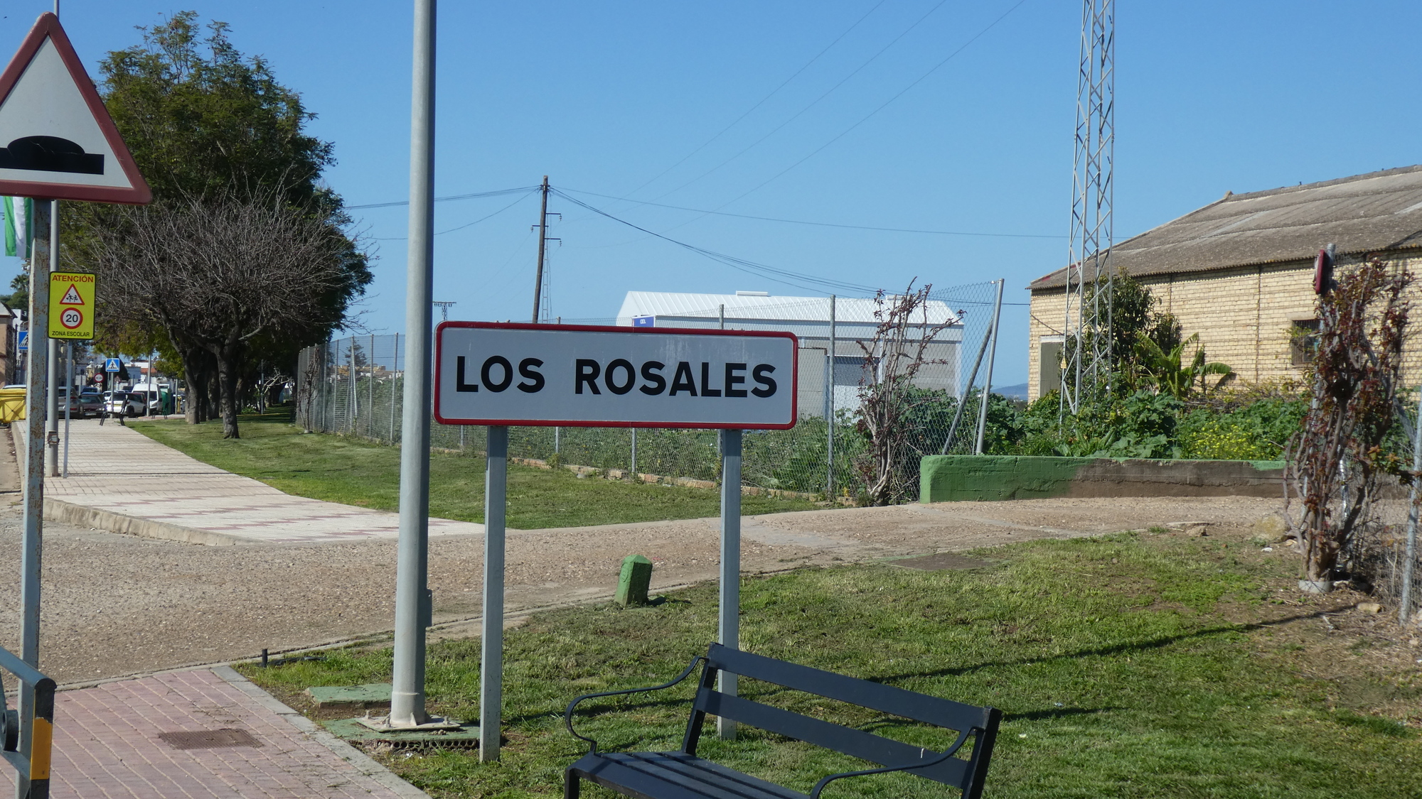 Whether on the highway or on our track, there were almost no towns along the way. Having had only a small breakfast, we were looking out for a grocery, and had hopes for Los Rosales. But while the town had most things - a hardware store, Chinese bazaar store, real estate office, and so on, there was no food store of any type.