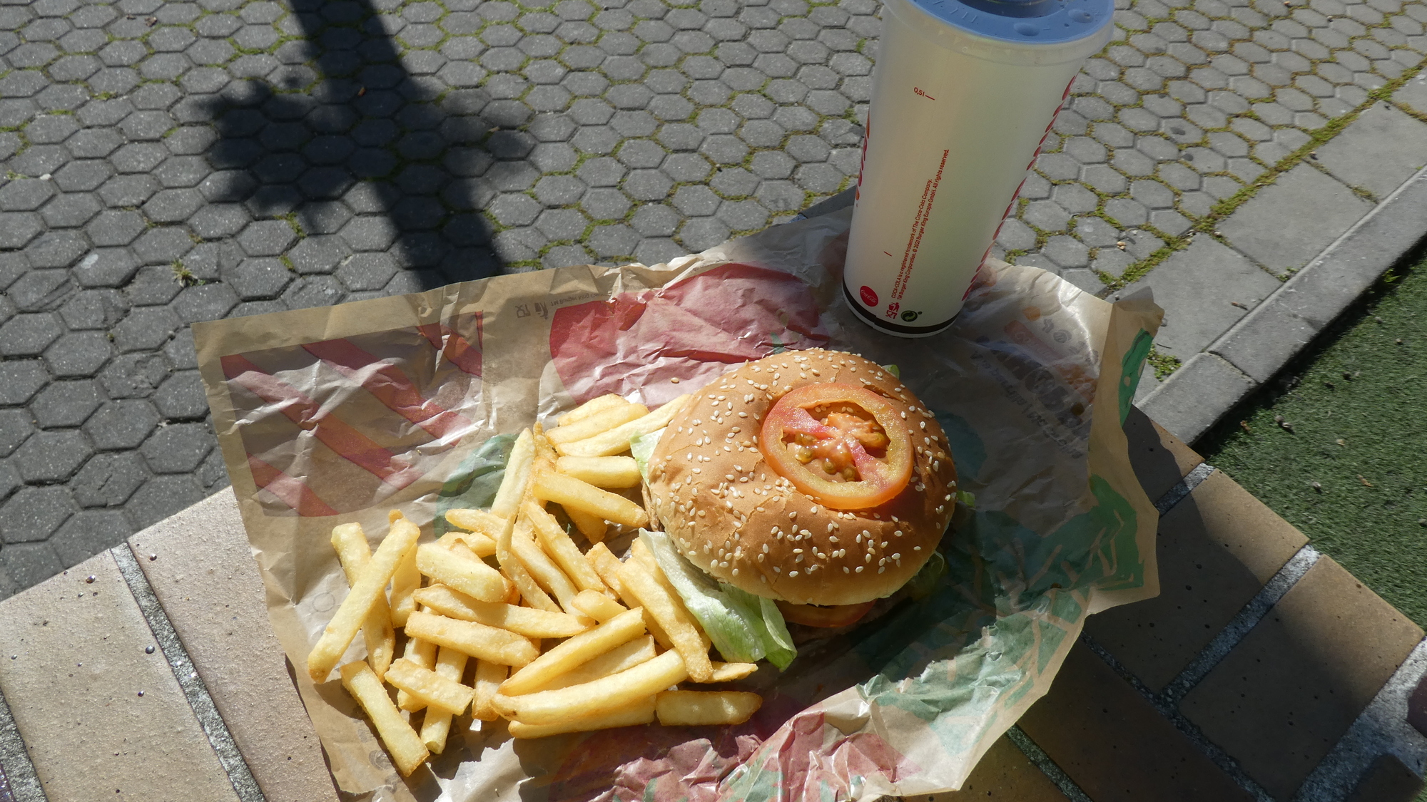 Final comment. I promise this is not a biased or hysterical one. Our Whopper Combo actively cost us strength and the feeling of well being. We left feeling sick. But how could it be? Bread, lettuce, tomato, ground beef - these are all legitimate foods. Well, it's some kind of scientific miracle because I am writing this four hours later and I still feel sort of poisoned - just not strong.