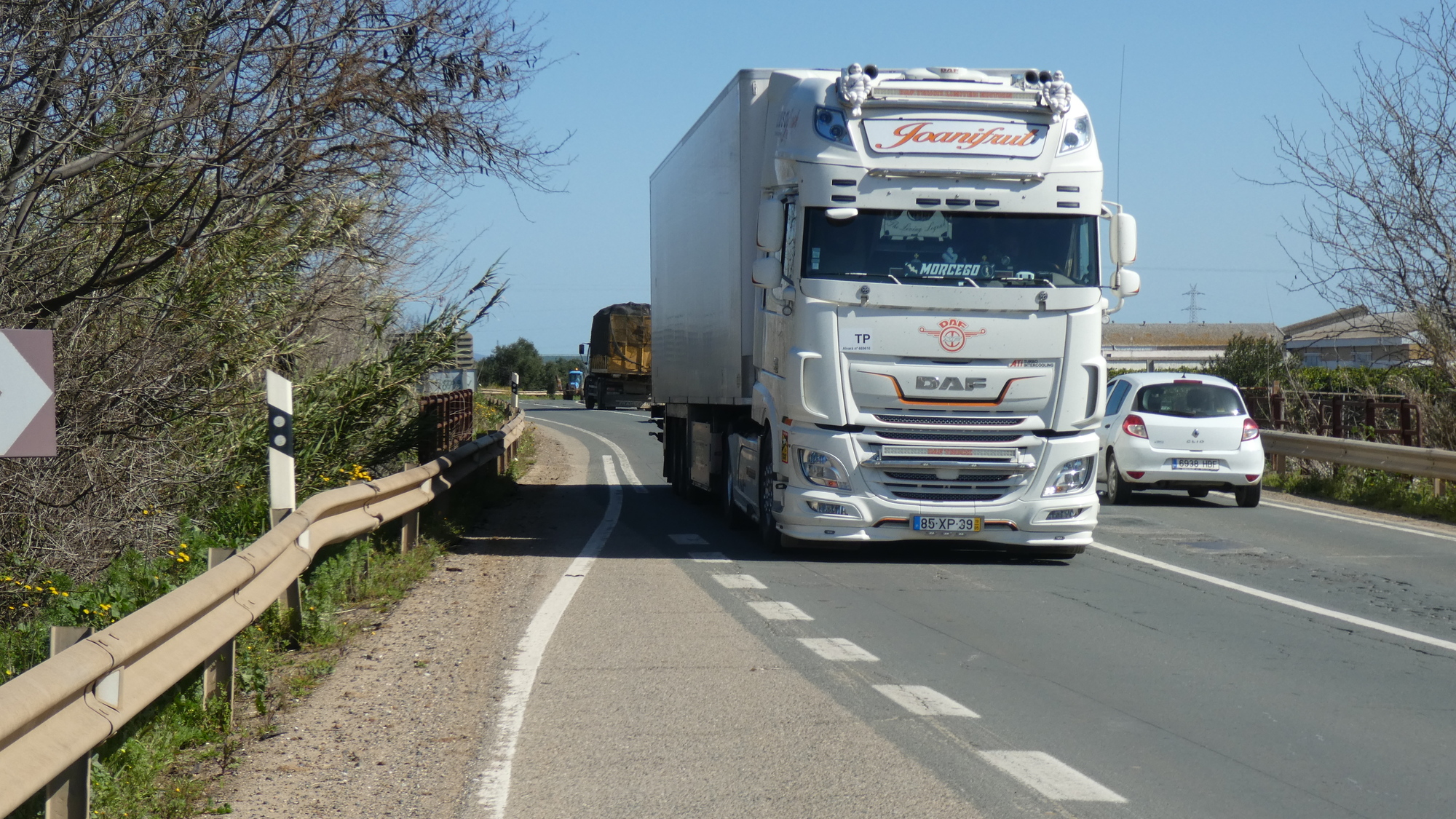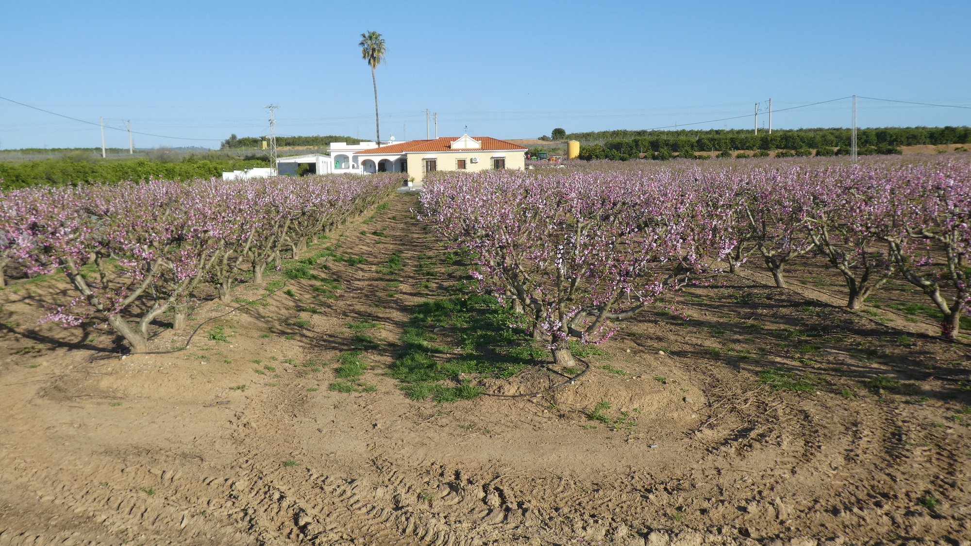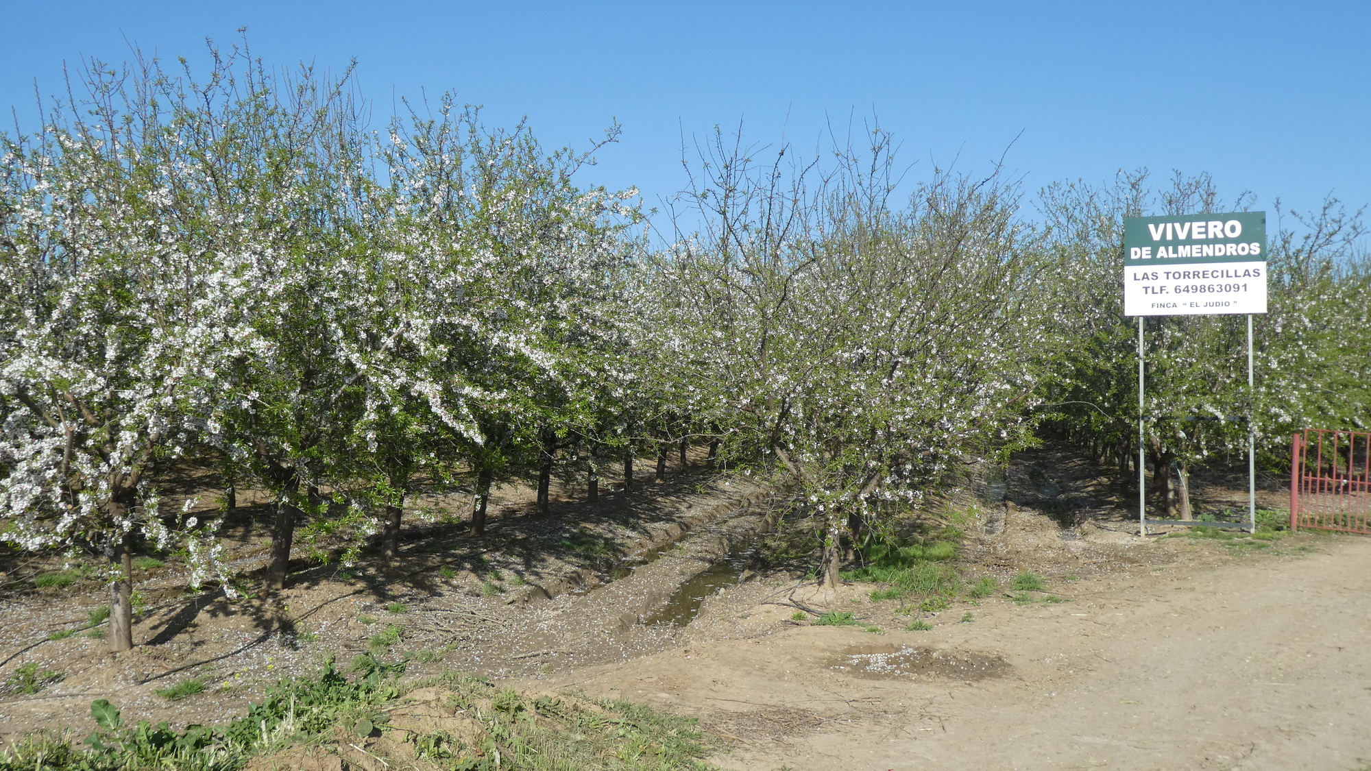 That is not to say there was no fun and nothing to look at. We had left mountains behind, and on this river ride there were fields of crops (like broad beans, and artichokes), and orchards, mostly of olives. Some trees in bloom were pink, and I would have labelled the almonds, except for the signed almond orchard, with white blossoms: