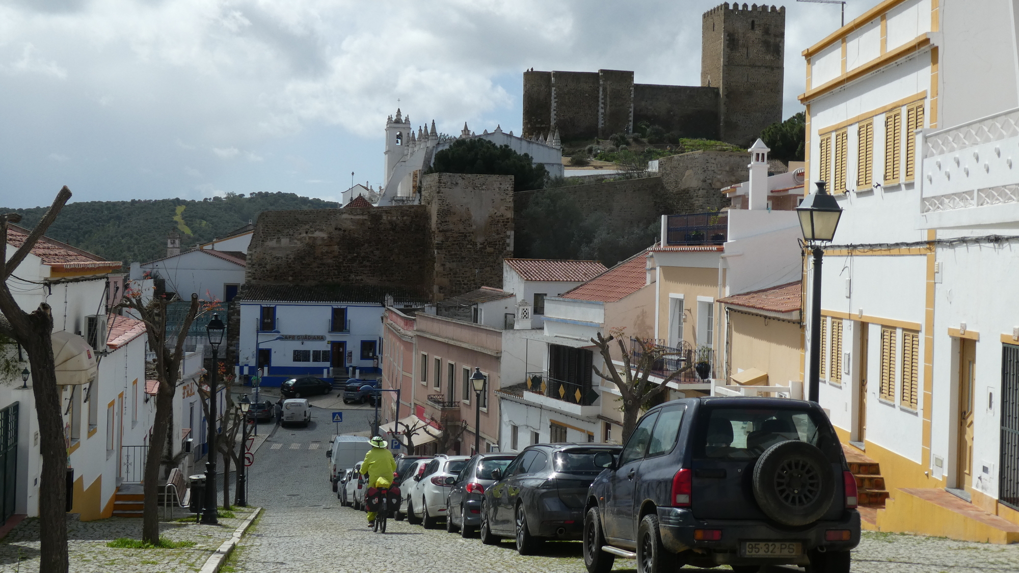 Presently, we came to a sign indicating Mertola 1 km. That surprised us, because we thought we still had a fair bit to go. We must be pretty strong to breeze up to town so much faster than we expected.