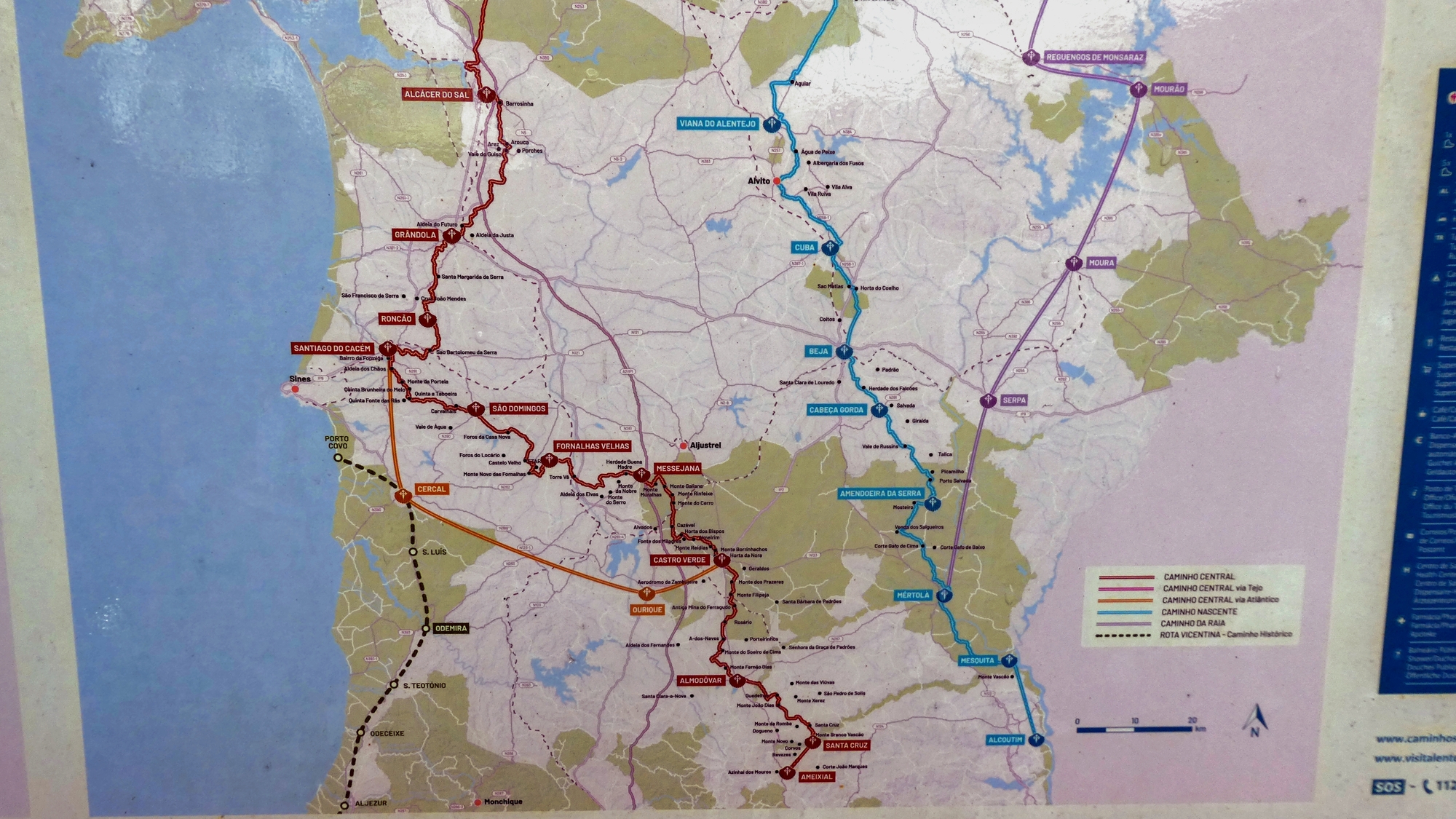 But look, the sign does give good coverage to the routes of six Caminhos that thread through Portugal.