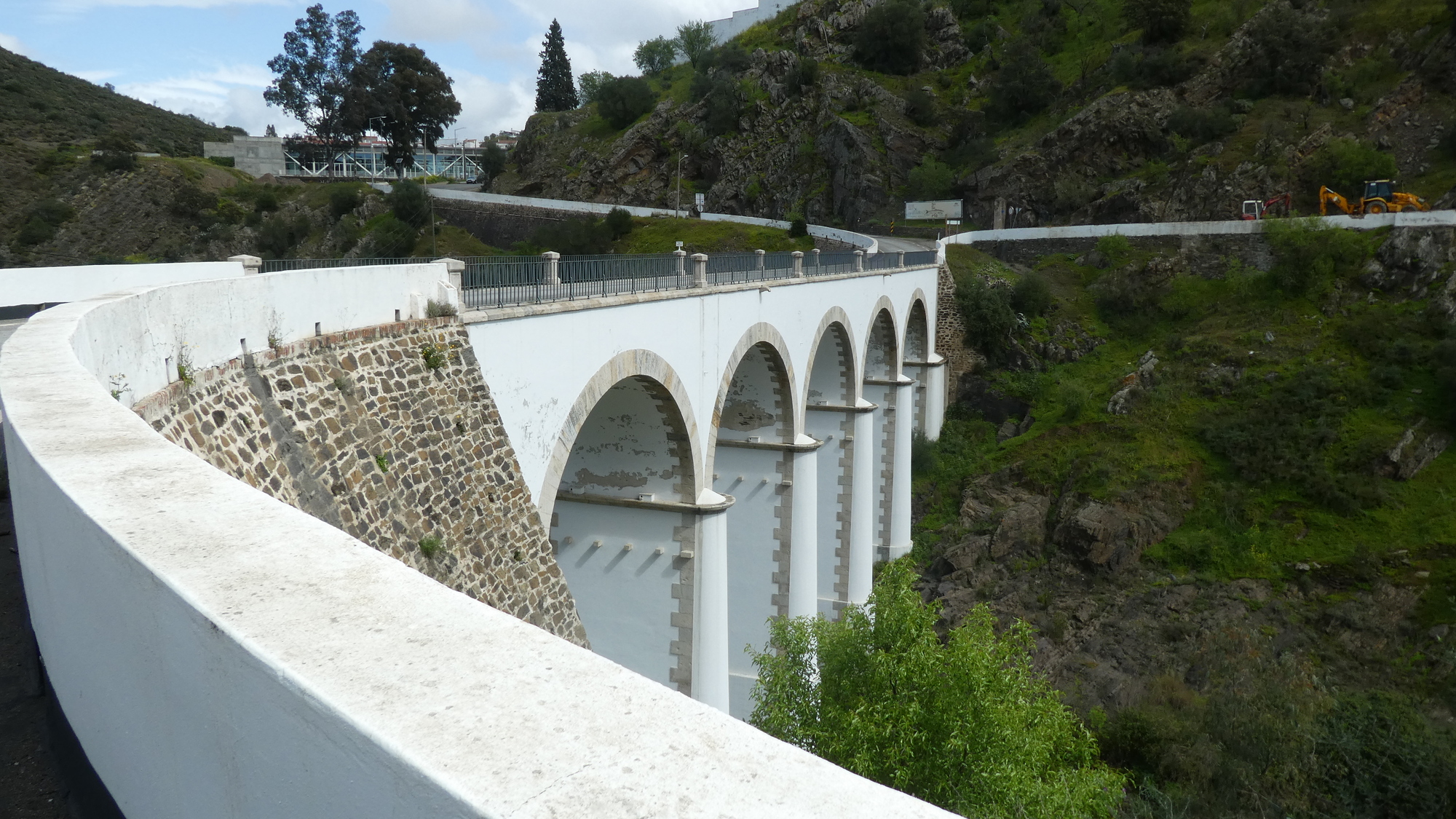 I am writing about these Caminhos as if I really know where we are going. But get this. We soon passed the bridge at the base of the castle, and crossing a tributary of the Guadiana, the Oeiras. While this bridge looks like we could call it a Roman bridge, I think not. It's a bit confusing because there is apparently another old partial bridge and aqueduct a bit downriver on the Guadiana, that was part of a wharf and also defensive structure of the town. Even that is not Roman, but 8th or 9th century Arab.