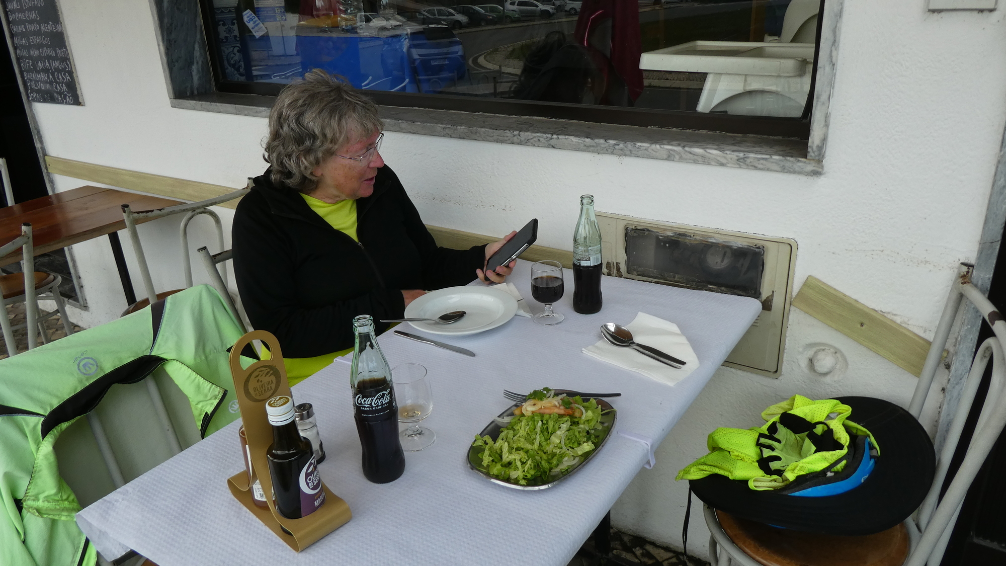 If I was thinking "Why did I come to Portugal to cycle in the rain, I can do that at home", I cancelled the thought because even with the temperature at 10 or 12 degrees, the rain, wind, and cold just didn't have that good old Canadian bite. It was still a rather pleasant cycle! We did have to start with a steep climb, not the best idea when starting cold. But it was ok.