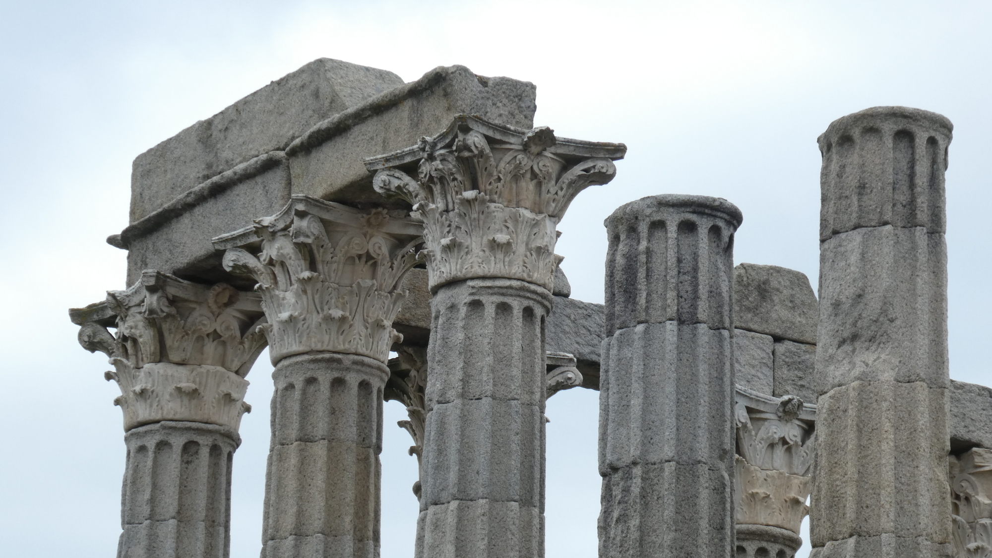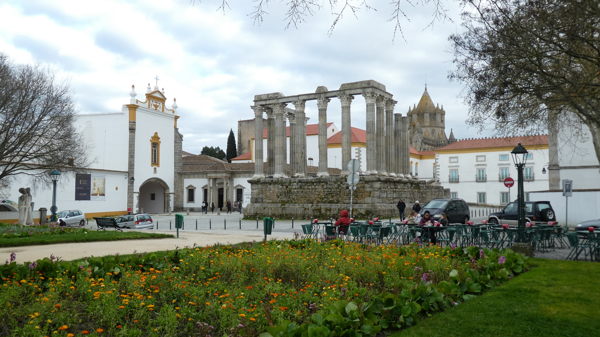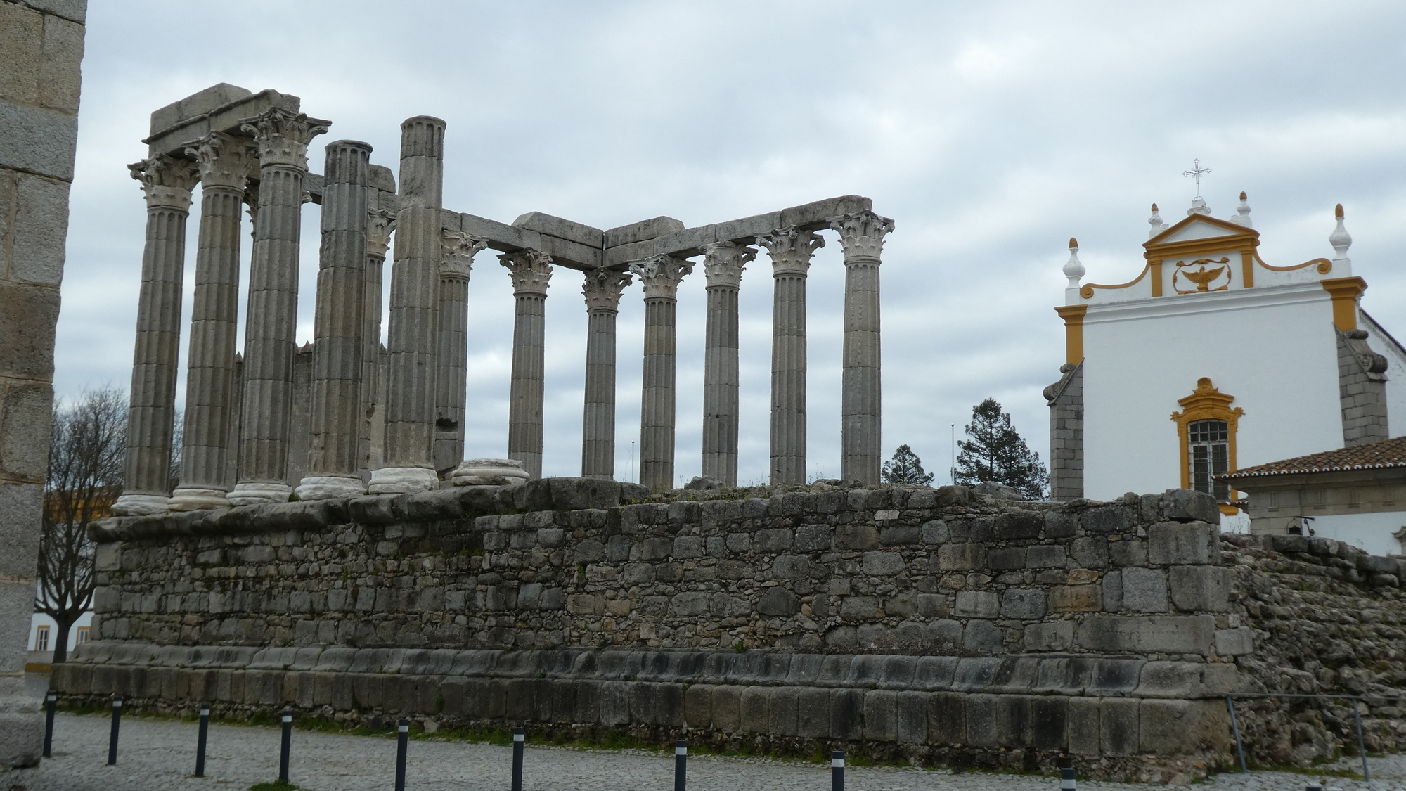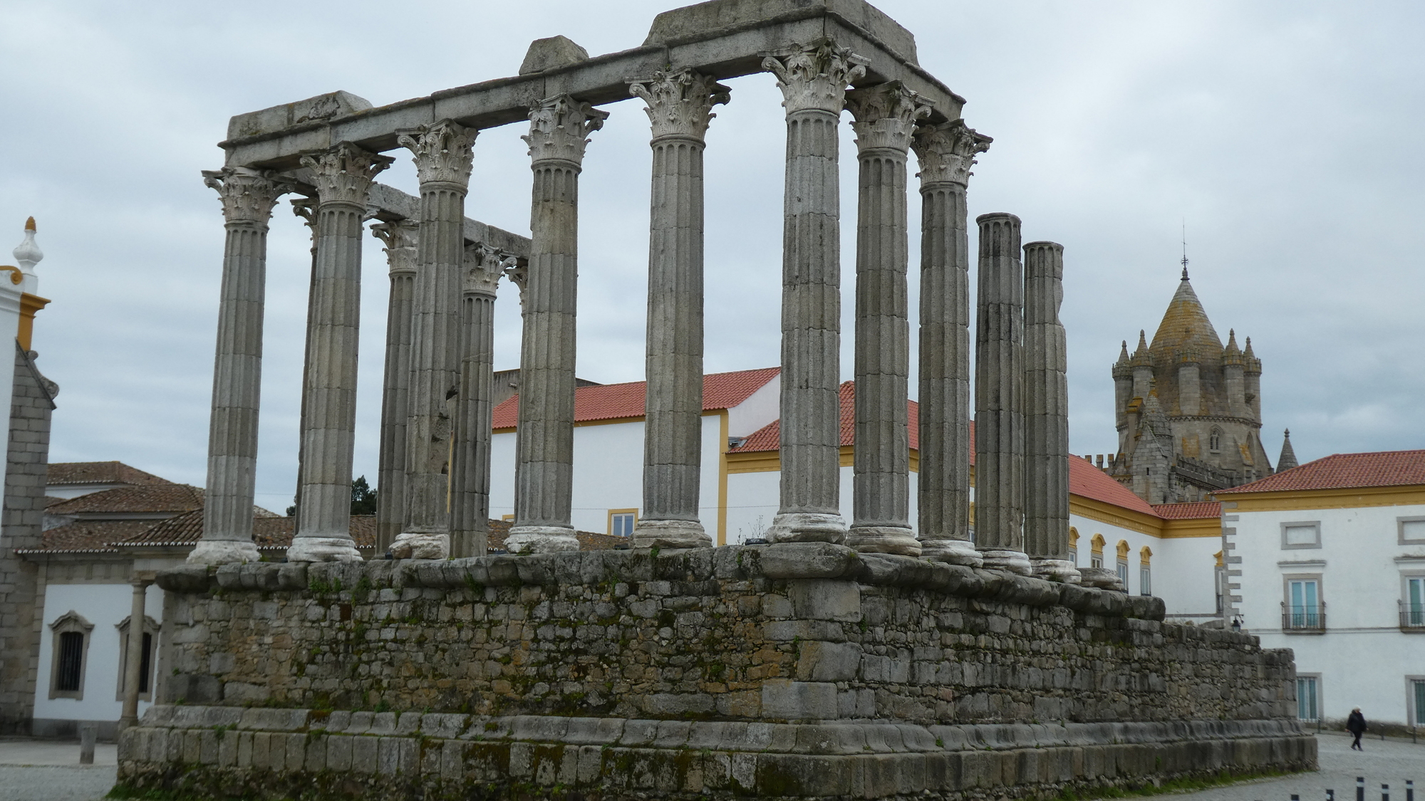 As we entered Evora, there was one last steep climb, to the hotel - which had been cleverly chosen to be up by the Roman Temple and the Cathedral. At the hotel, they compounded matters by suggesting a trip to the upper terrace for a look at the town. Dodie jumped on the bandwagon by suggesting that I trot up to the temple for a couple of shots, and oh, maybe some postcards. I did all of those, and came back with four nice postcards. Not enough! This earned me another trip up by the temple, so I came back with six more! For this second outing, I took myself deeper into downtown, and even found yet another church to photograph. Well, no wonder I ended totally beat!