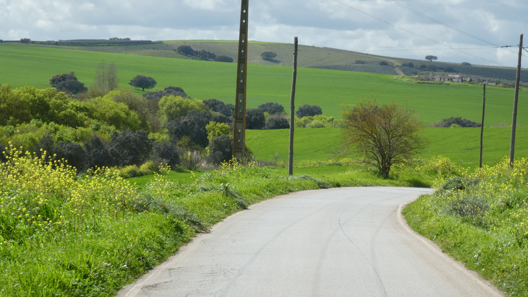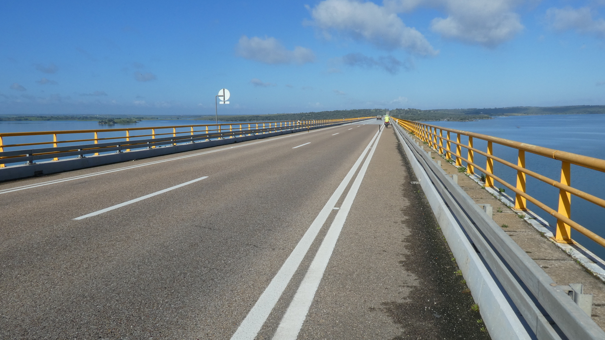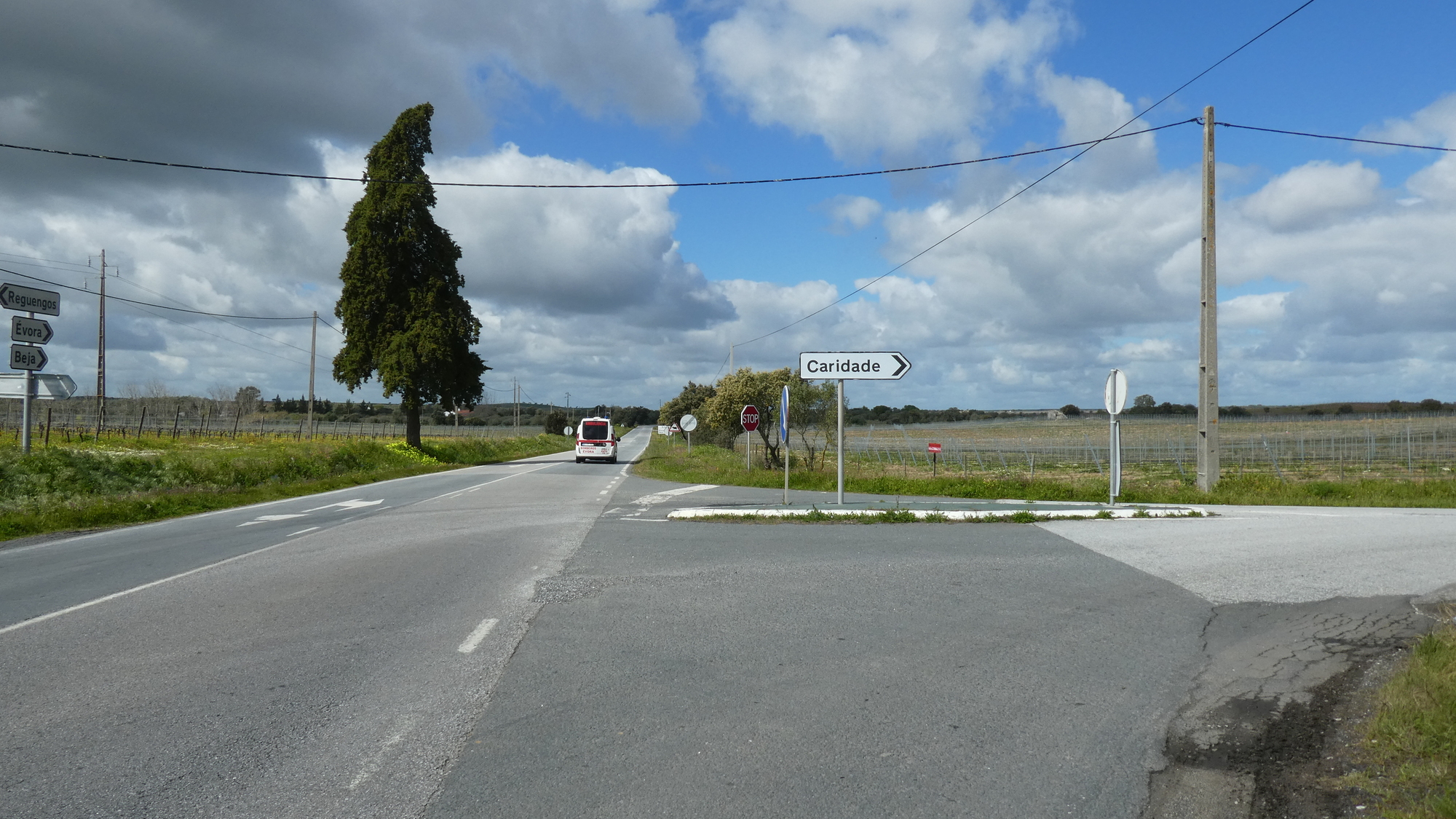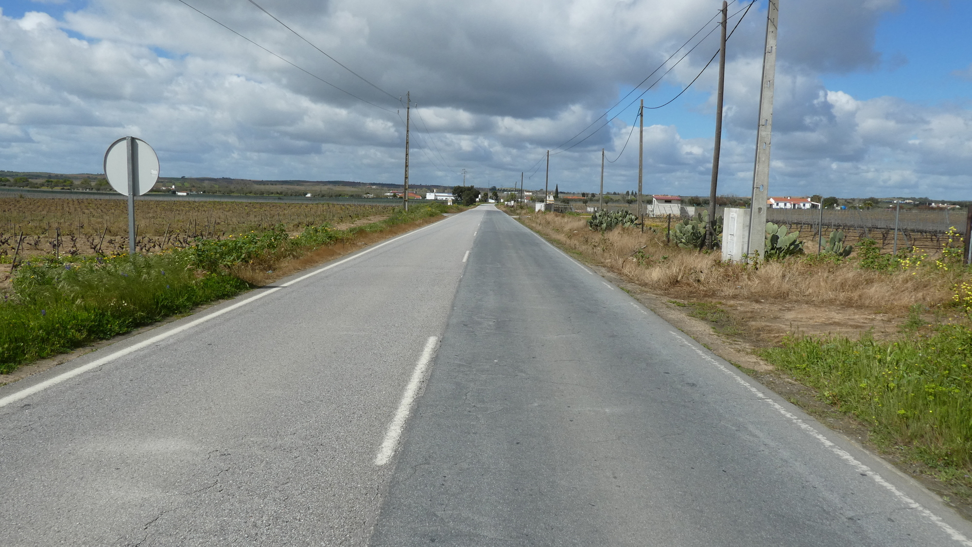 The N256 had started out with a decent shoulder, something that compensated for the somewhat active traffic. But well before Reguengos de Monsaraz the shoulder disappeared. We were not pleased with that, but decided to give the shoulder a chance to reappear after the town.