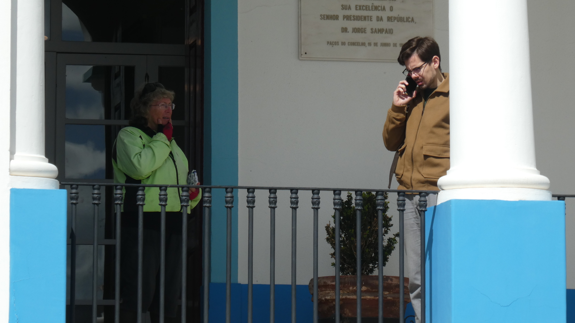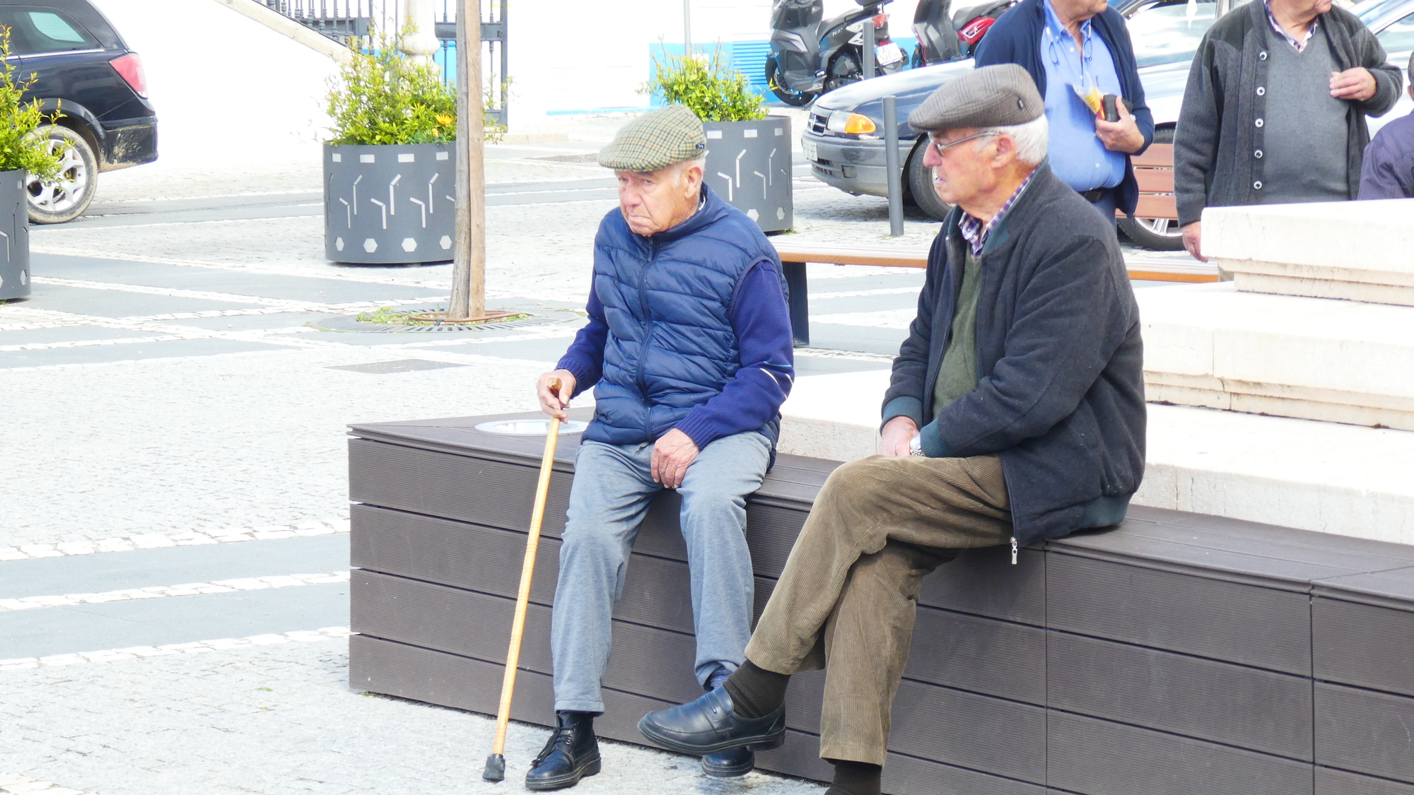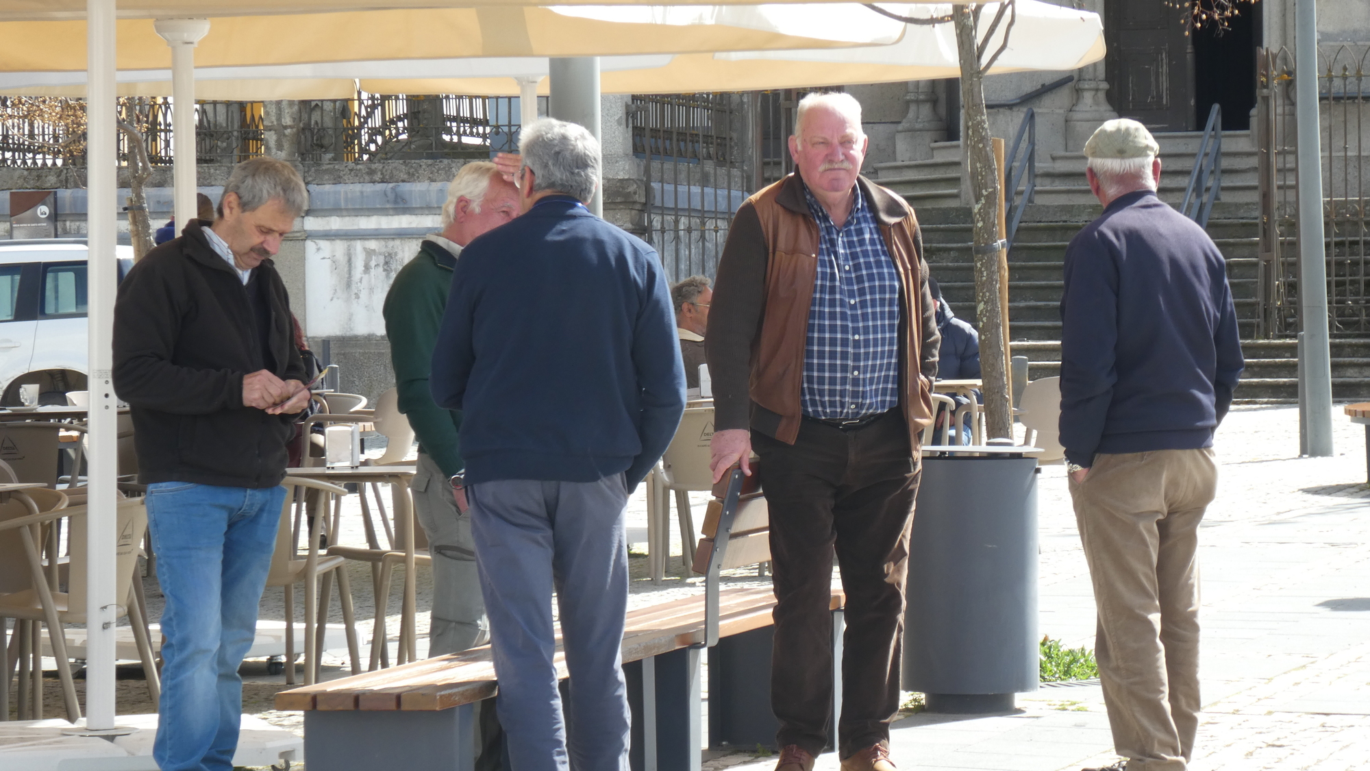 The church properly faced the town square, with City Hall opposite. We could not help noticing that in this square, once again, old men were congregating to hang out. They really were everywhere. No old women, children, or young people!