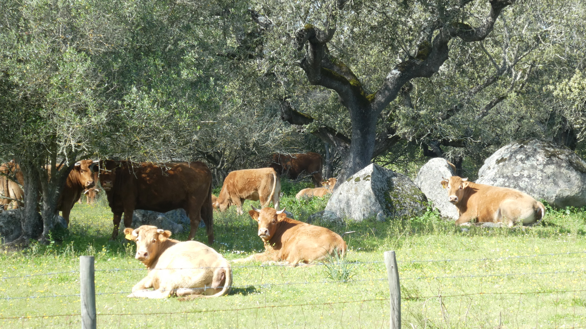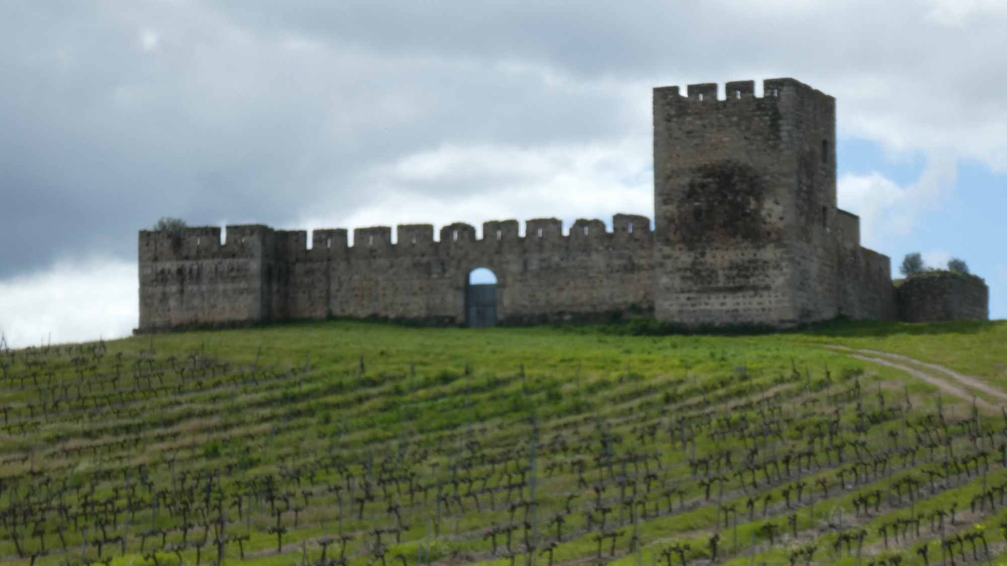 Then in the "middle of nowhere" we came upon a castle, now a ruin, from the 13th century. It's Valongo Castle. As we pulled up to read the historical plaque, and couple in a car also pulled in. The lady stayed in the car, talking on the phone, but the man chatted with us for 1/2 hour. They had driven, it seemed, 100 km just to see this castle, as both are antiquities buffs. The man also mentioned that in a couple of months this green landscape would be yellows and reds, and by mid summer it would be a baking 40 degrees plus.He also reiterated the tale of the change to the landscape that was brought by the dam. Before 2000, he said, this was all a dry semi-desert.