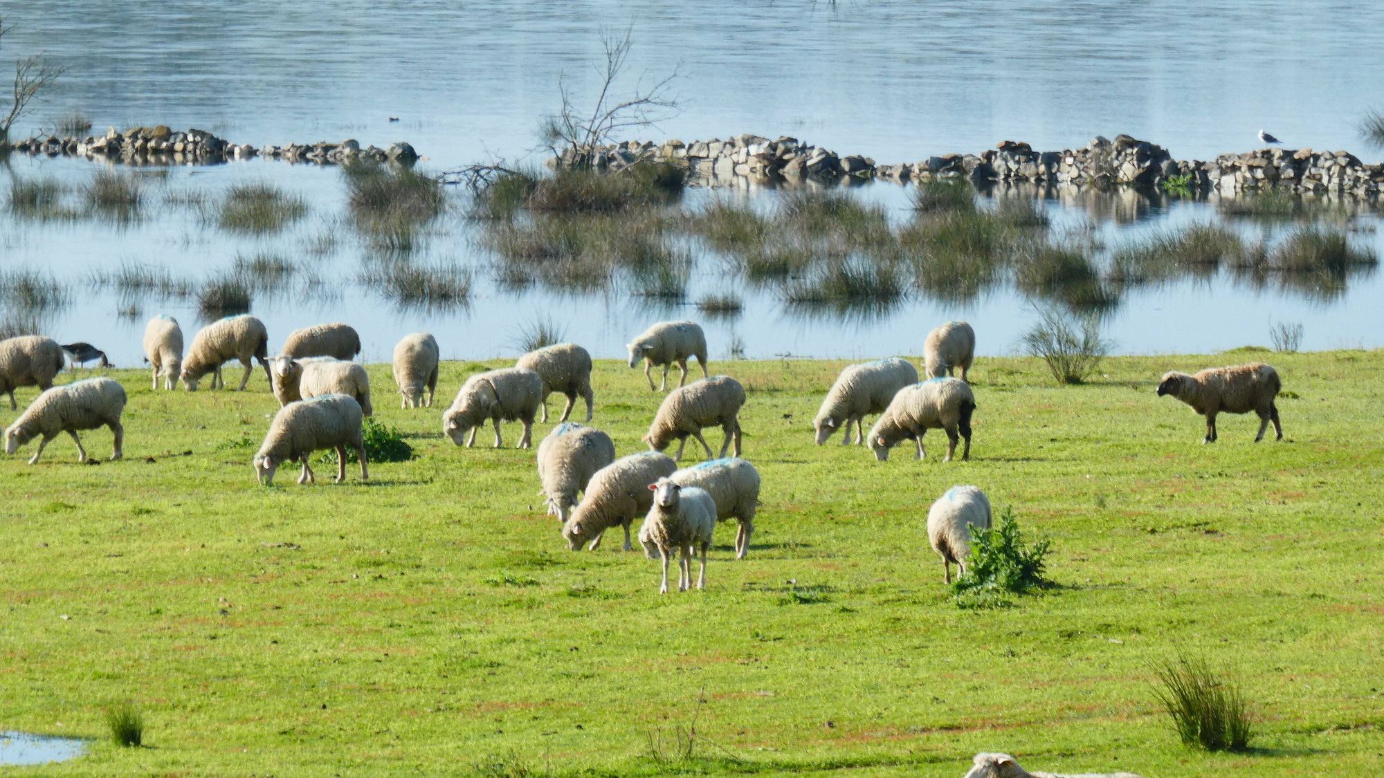 The route in its early stages crossed quite a bit of reservoir and wet land. This gave us a chance to spot at least some geese, not to mention the now common for us Corn Buntings.