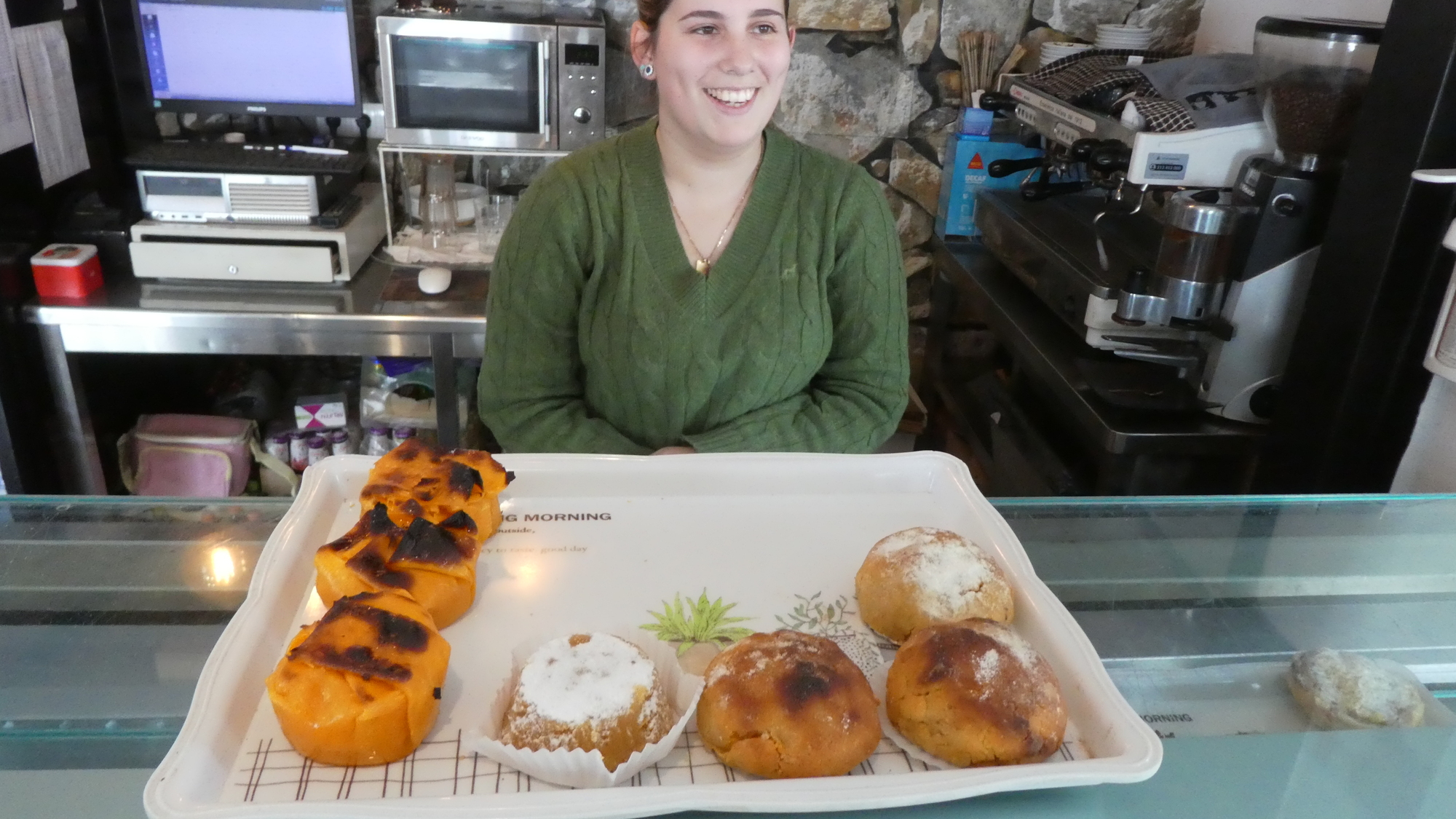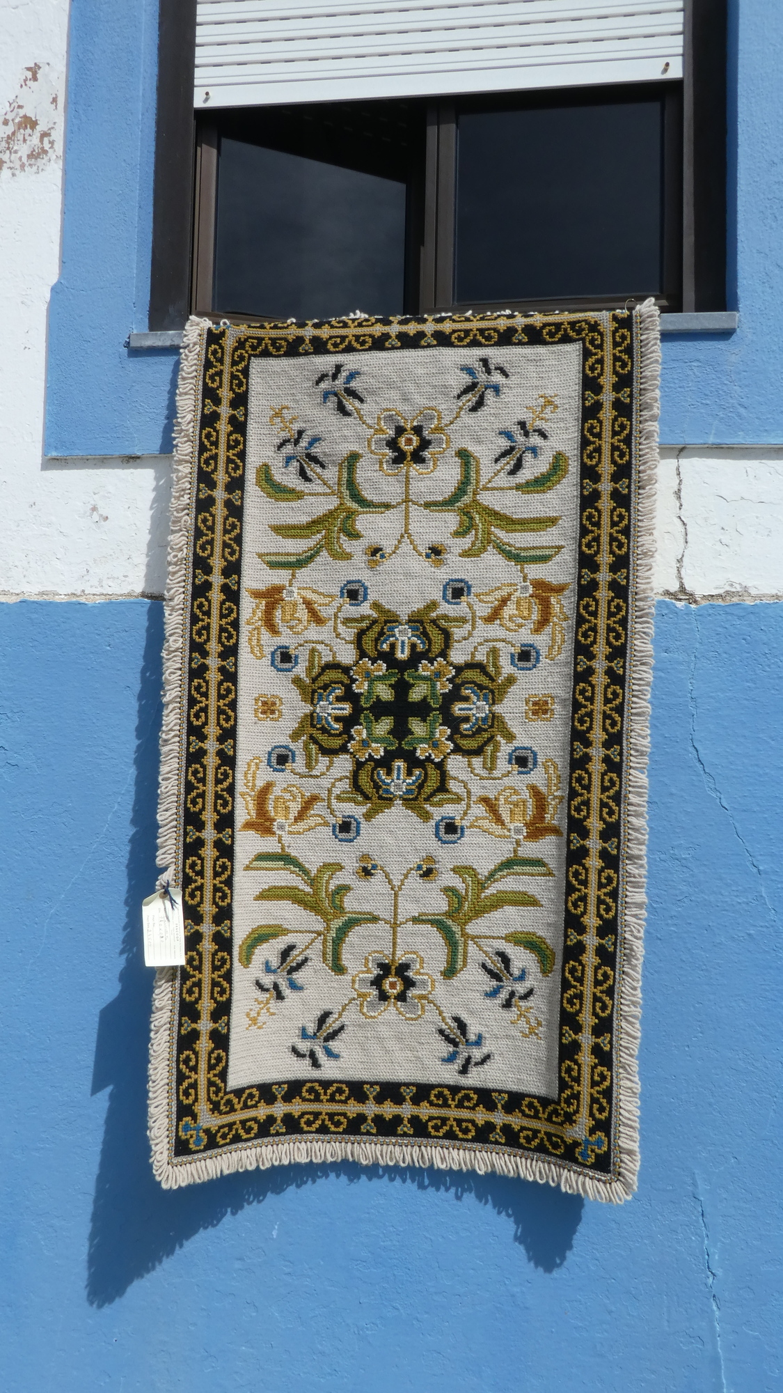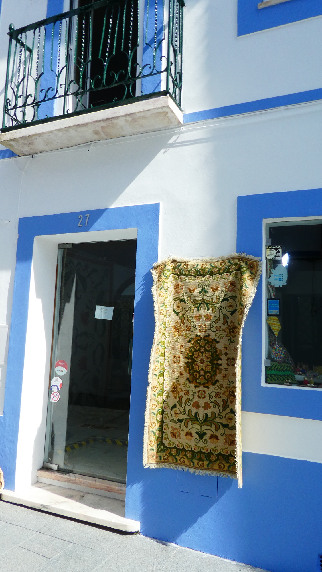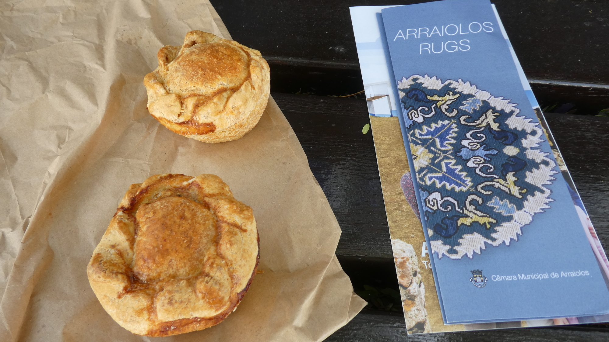 Having read the pamphlet, we went back to the bakery and asked for some of those typical pastries. We passed some more carpet, and a carpet mosaic in the street surface, before getting to the bakery.