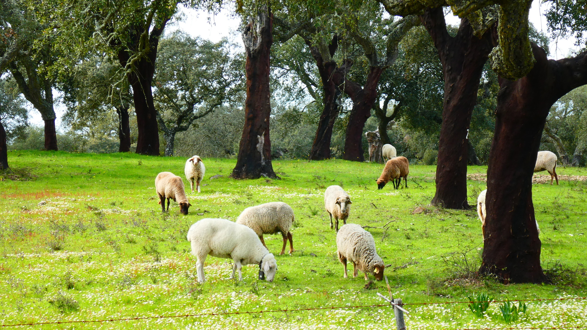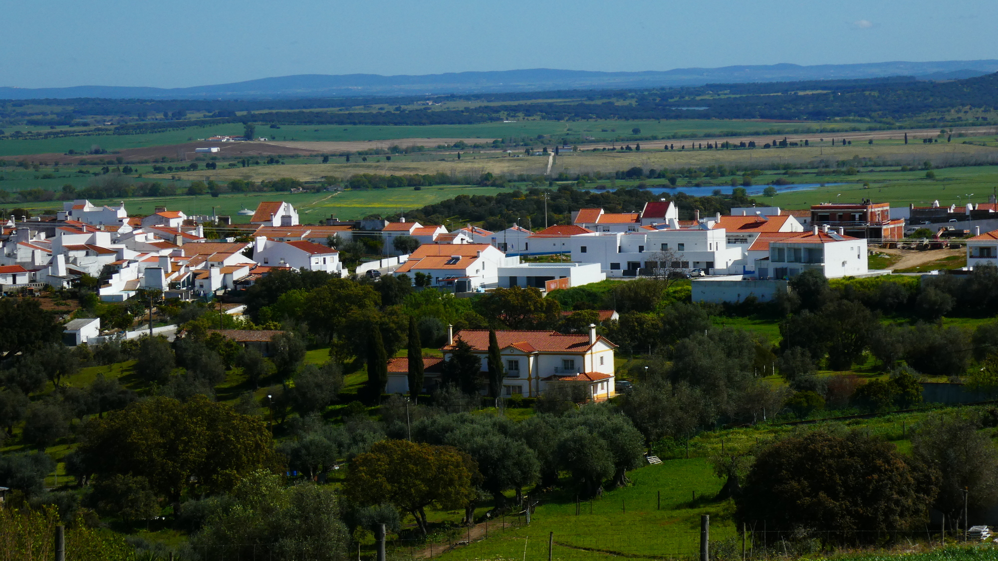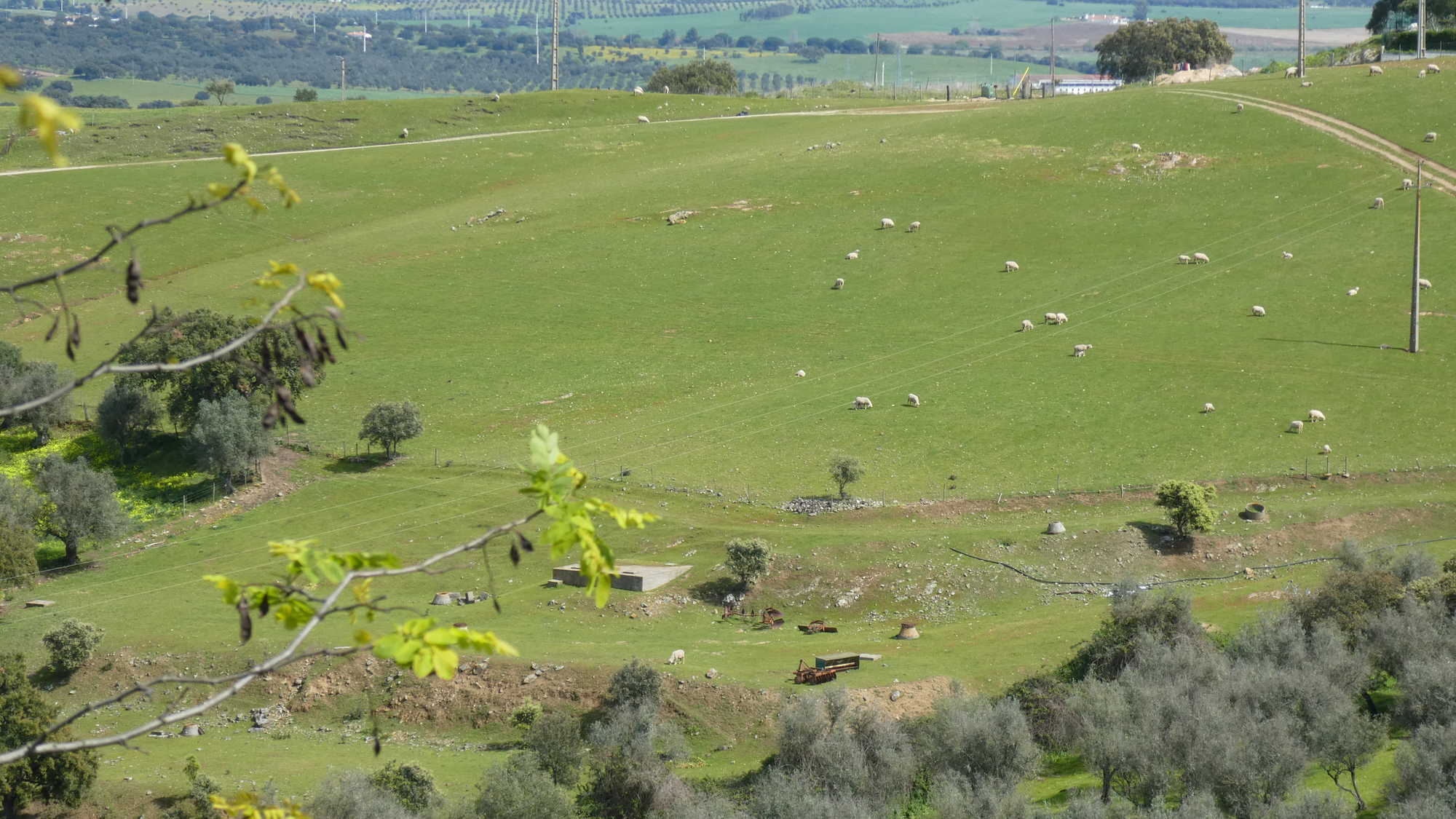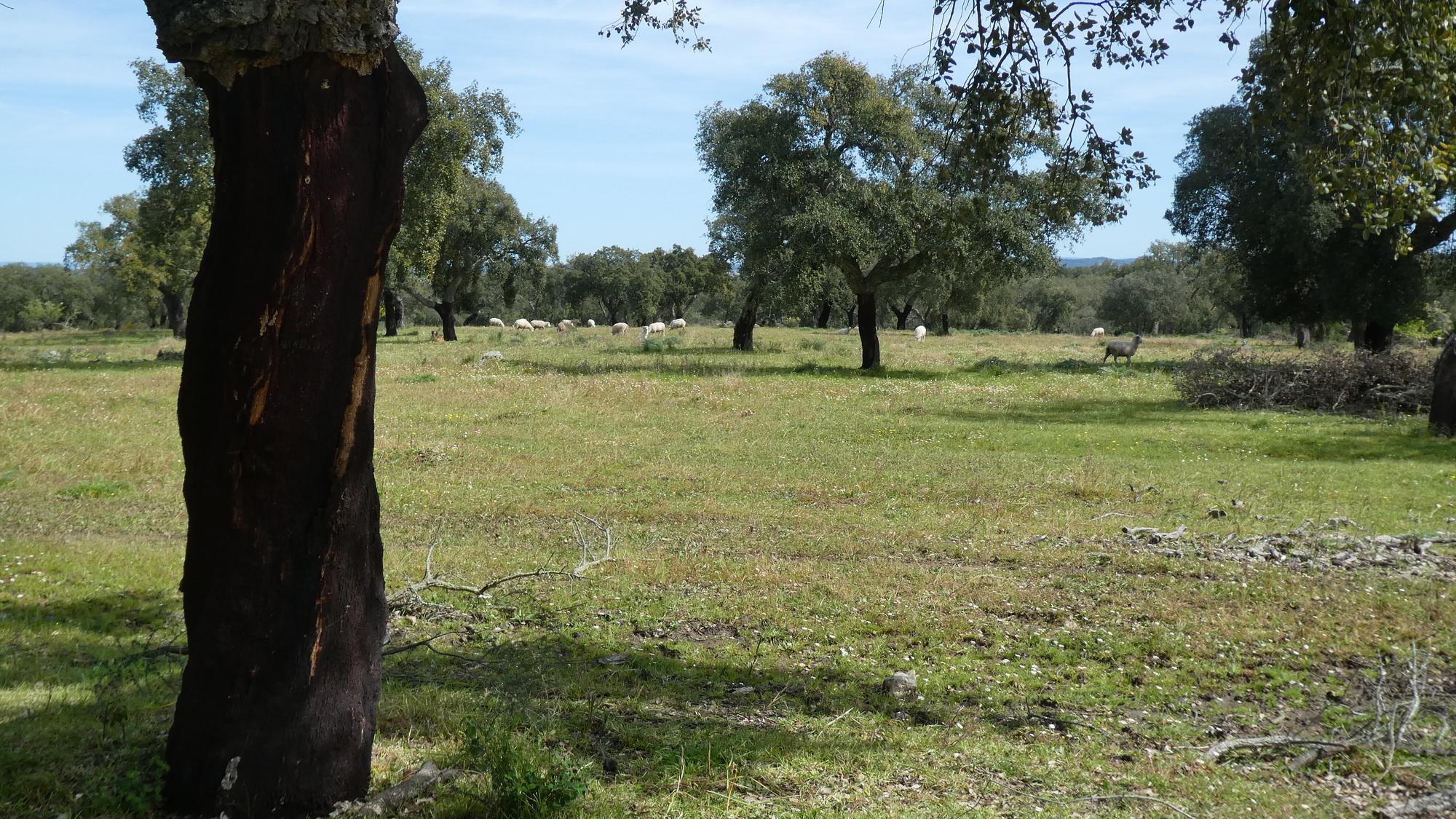 We have been very impressed by the countryside in the Alentejo, with the widely spaced trees, and the green fields. Scott wrote to us and gave a name to this landscape from Spain: dehesa. But here it is the "montado":