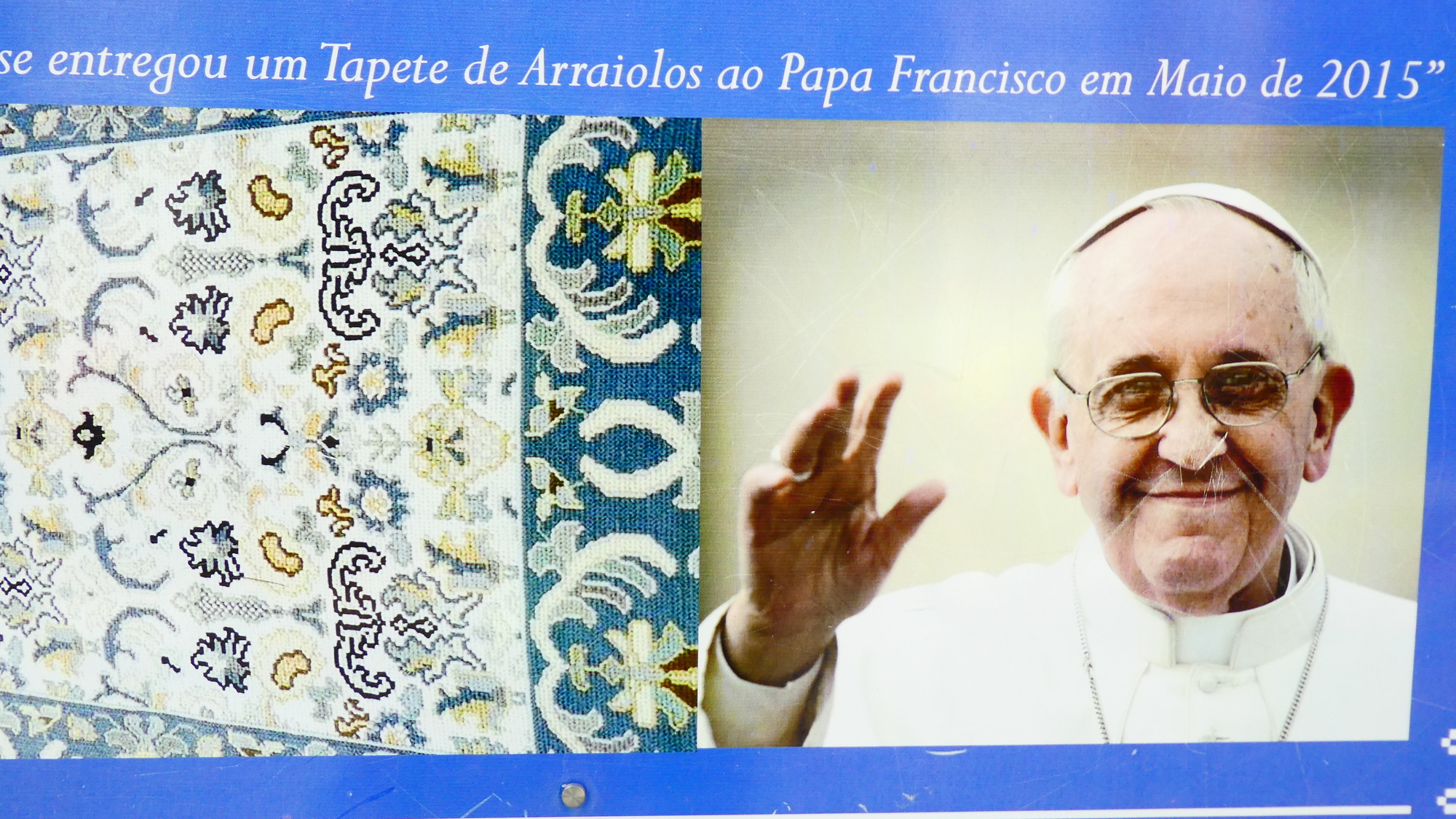 This particular lady had somehow managed to make a gift of a carpet to Pope Francis (need to do some reading to find out the background to that), and scored a photo of the great one with her carpet, something to mount on the front of the shop. (I assume the thing was not Photoshopped!).