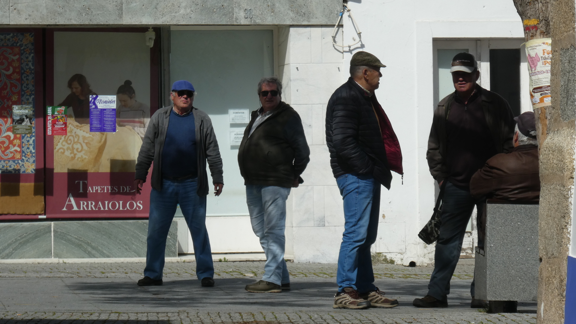 We proceeded on into the square, looking down a side street complete with a walker with cane, and arriving at the (required) cluster of old boys standing around.
