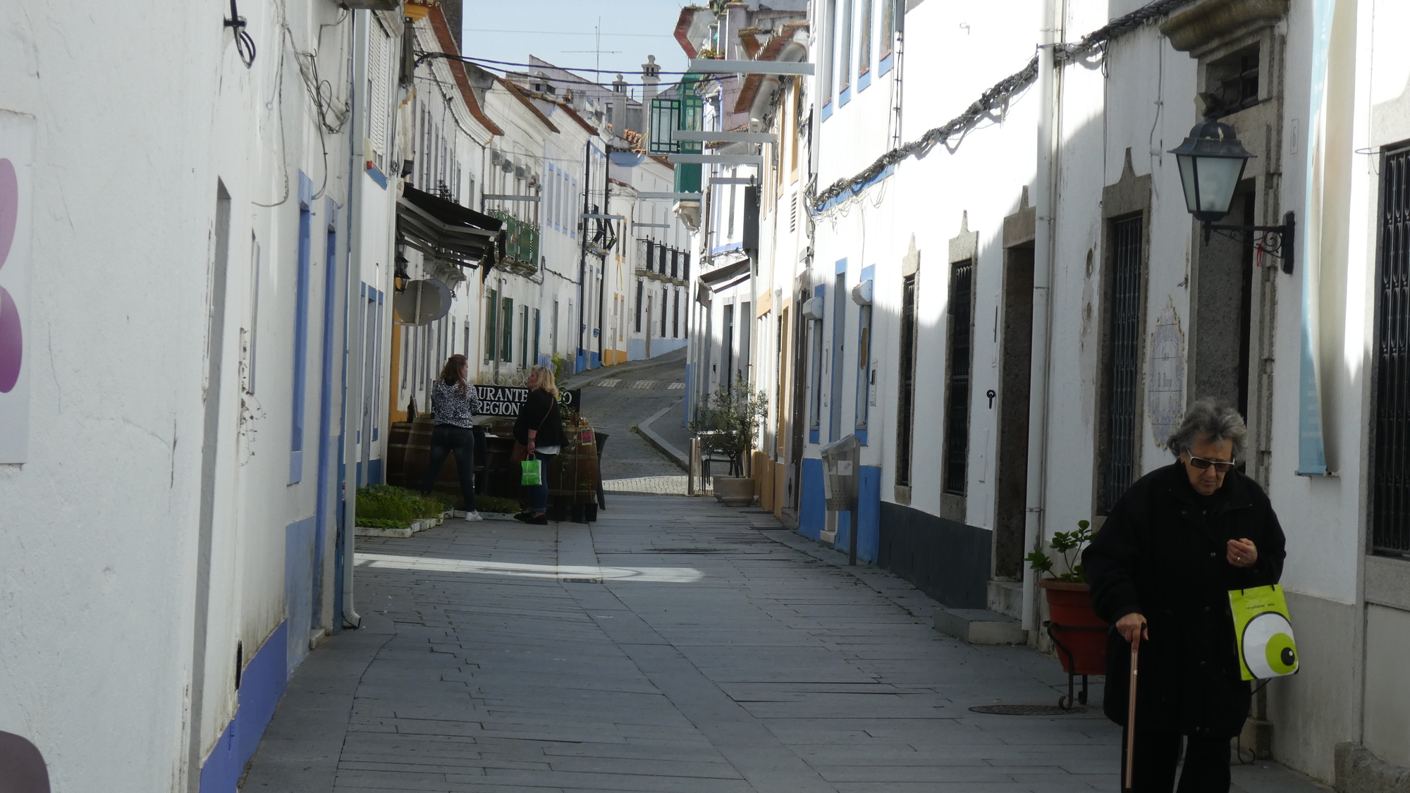 Our hotel was inside the walls of the Evora old city, where the streets are narrow and cobbled. Something missing is sidewalks! That's ok, except when there are cars. They trundle slowly along on most streets, but there are some where they are going quite quickly. Old cities and cars were of course not made to be compatible.