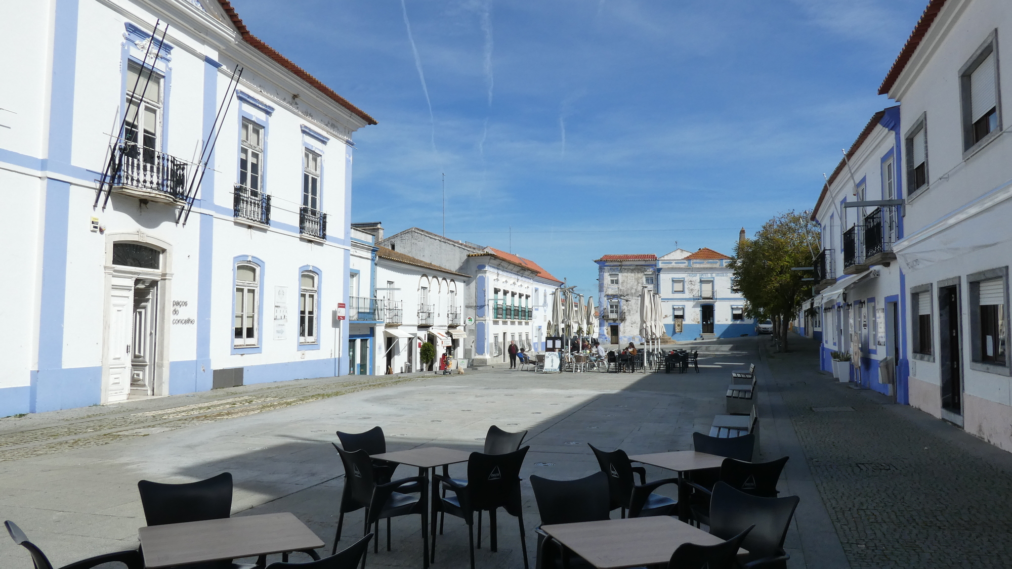 The final stretch of the day's ride was along the N251. This mostly had a wide shoulder, which was good because was it ever infested by large trucks! Our spot in Couço at "Lcc Rooms" is one of a few ground level units that open to a patio, all part of someone's house. Ground level and patio are just what is most convenient for the bikes, so we are happy. We also have lots of food on board, so we are not bothered by the lack of restaurants, or included breakfast, in this little town.