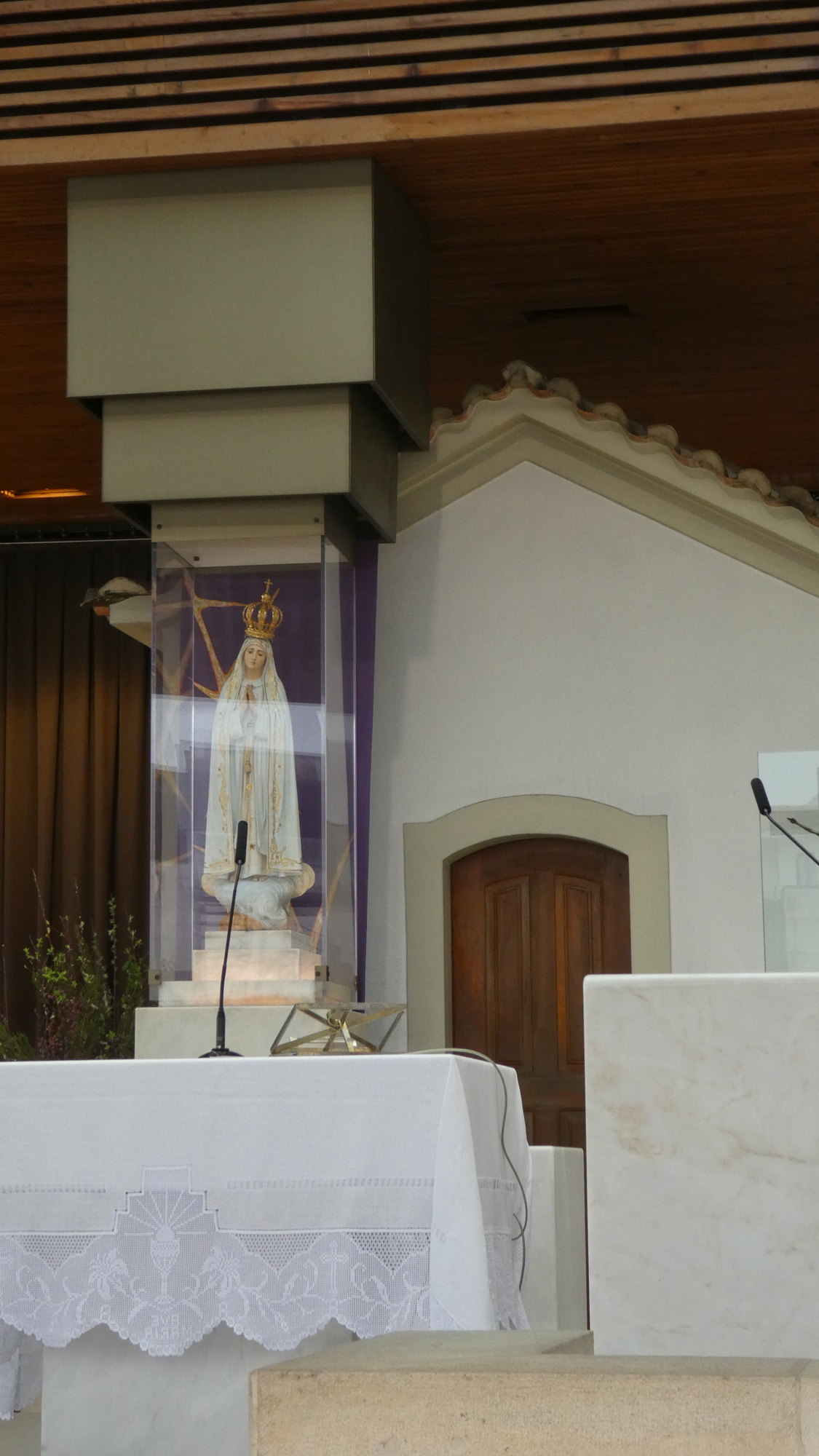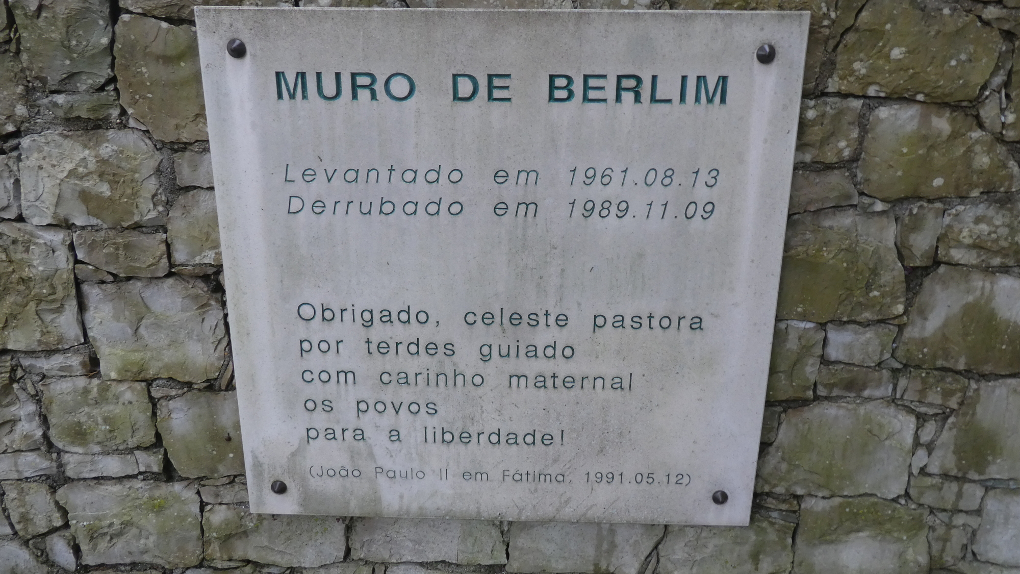 The Fatima thing was down on communism from the start. So it makes sense that they received a donation of a piece of the Berlin wall, and set it up on their grounds. Interestingly it is protected behind glass (making a photo difficult). Like many former brutal things, this is now a cultural artifact that needs preservation. The fact that 25 years after the fall of the Wall, Russia launched a new set of aggressions, in Ukraine, makes this display rather poignant.