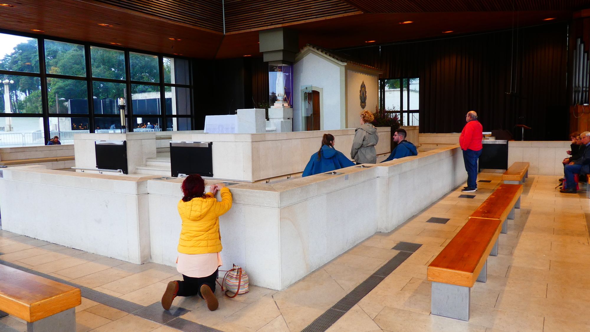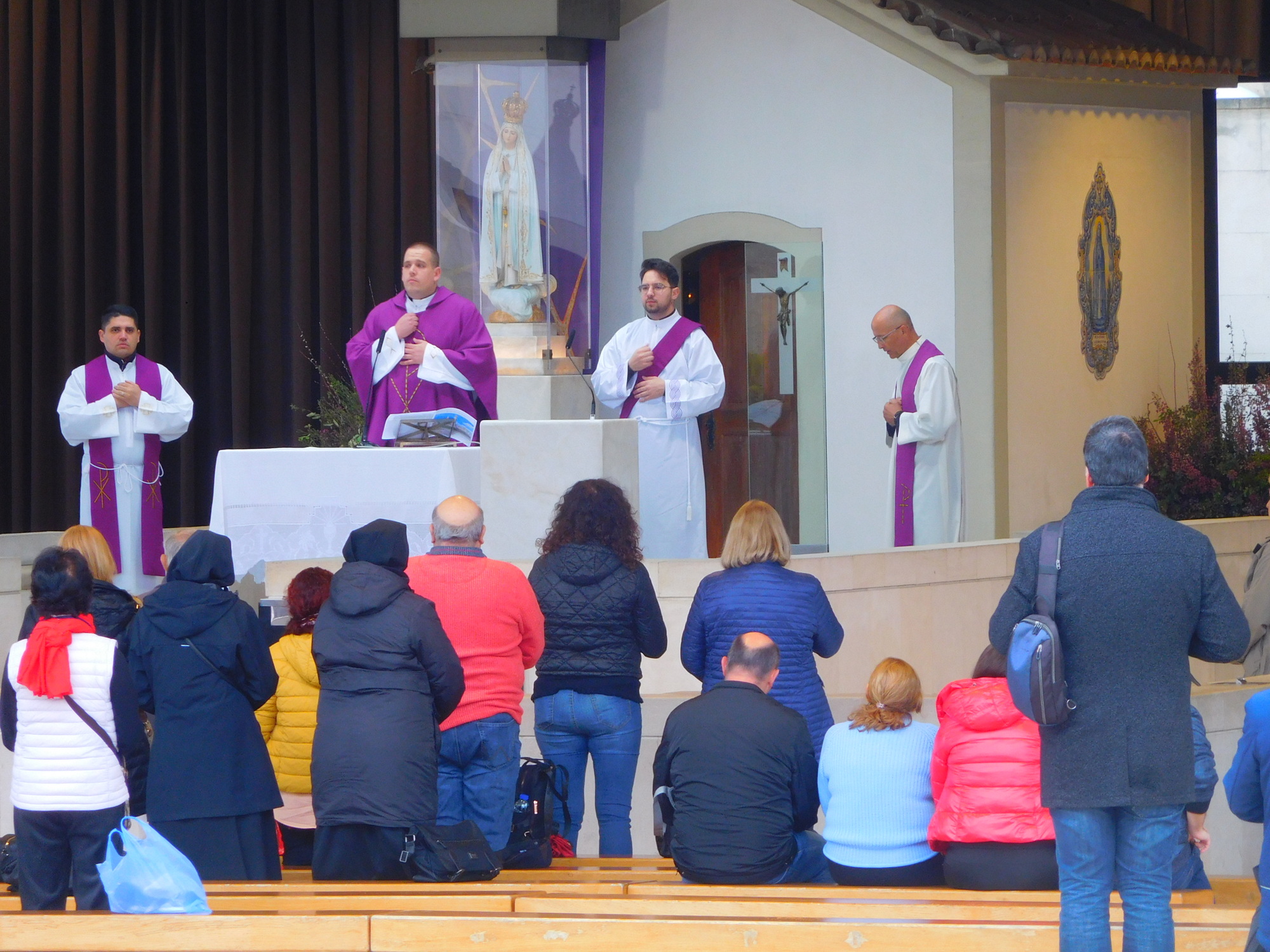 We started the day by going back to the Sanctuary for a bit of a closer look. This time we started properly, at the Chapel of Apparitions. We arrived just before the priests came for their first service. But they soon got things underway. We also had the arrival of the infirm, some helped by nuns. Yesterday we were unsure about whether there was a healing culture here, as there is so strongly in Lourdes. There is, but they lack the spring fed flow of holy water, so it seems they need to hand bless every vial, and they are not offering holy water bathing.