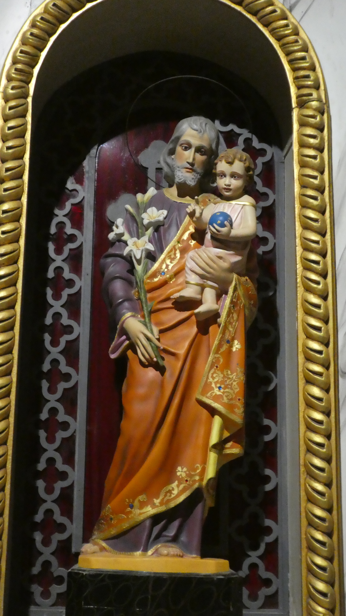 We also found this slightly unusual statue, depicting a grey haired Joseph with his son. As usual, the son has already learned to make that shape with his hand.