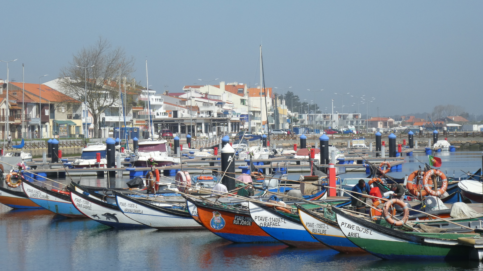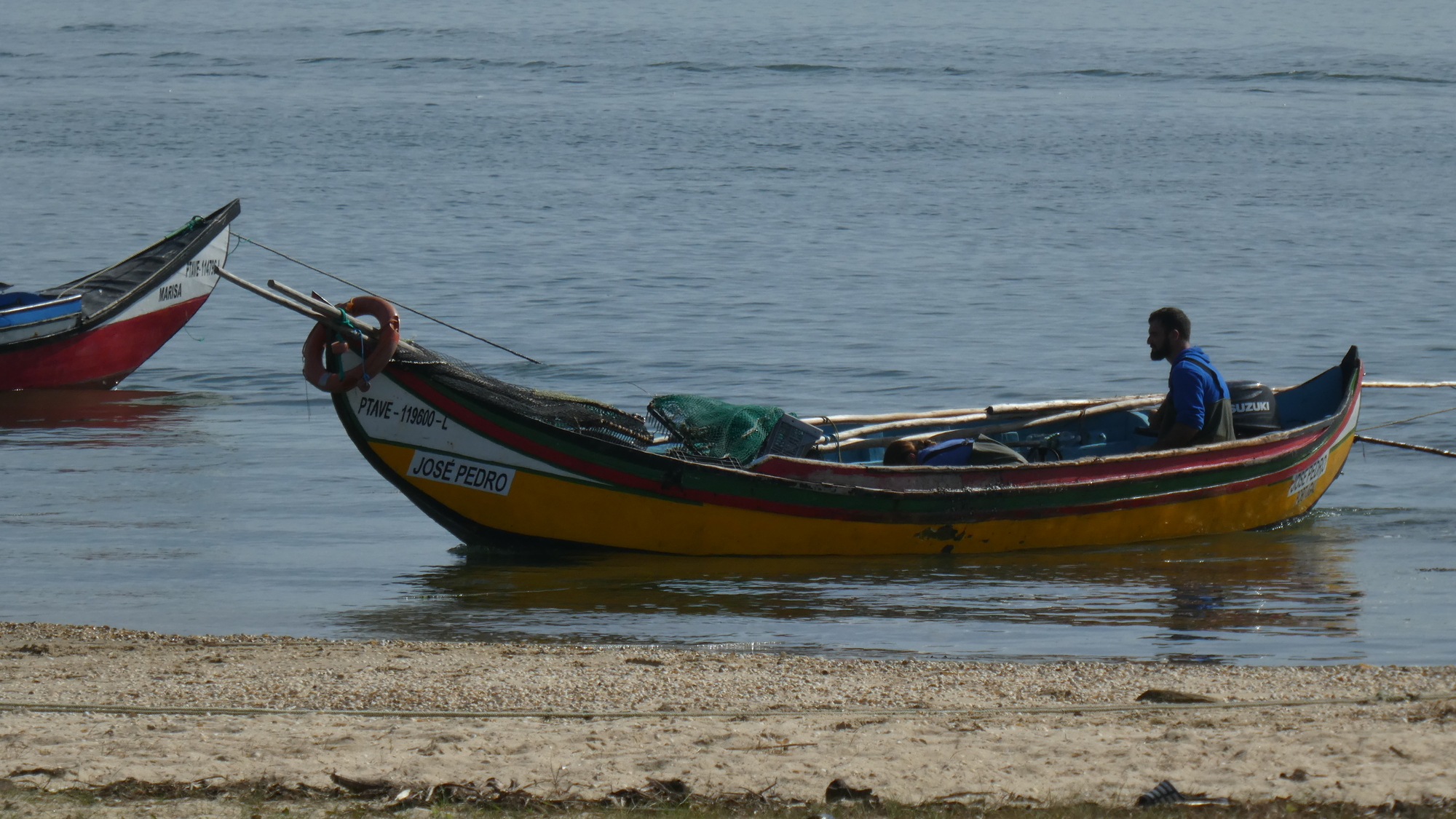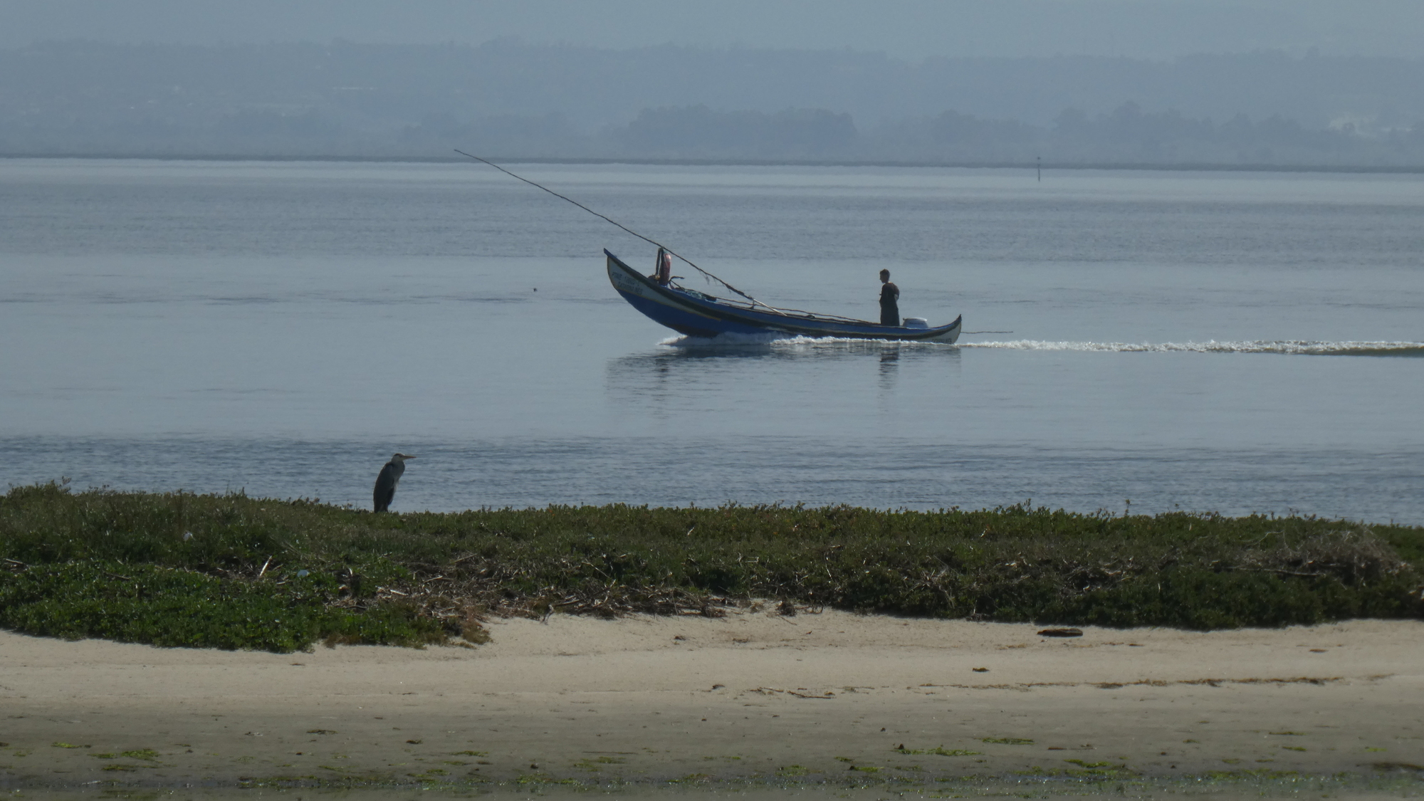 Off the ferry and now pedaling north on the peninsula, with the large lagoon on our right, we watched the fishers, with their iconically shaped and painted small fishing boats. It caused me to remark that this did not only look "like" a typical Portuguese scene, this was the real thing, meaning this is where you would come to shoot the postcard.