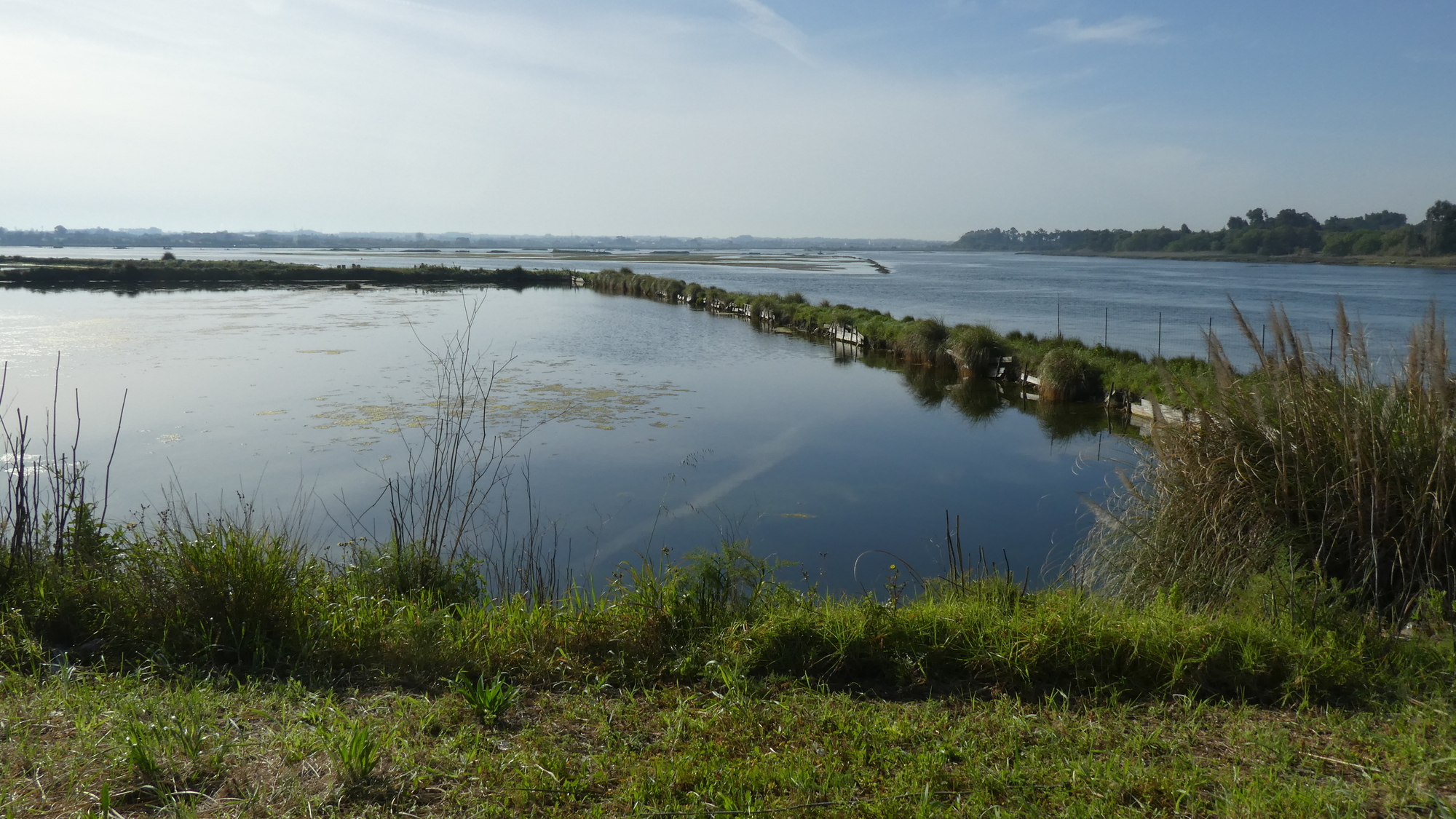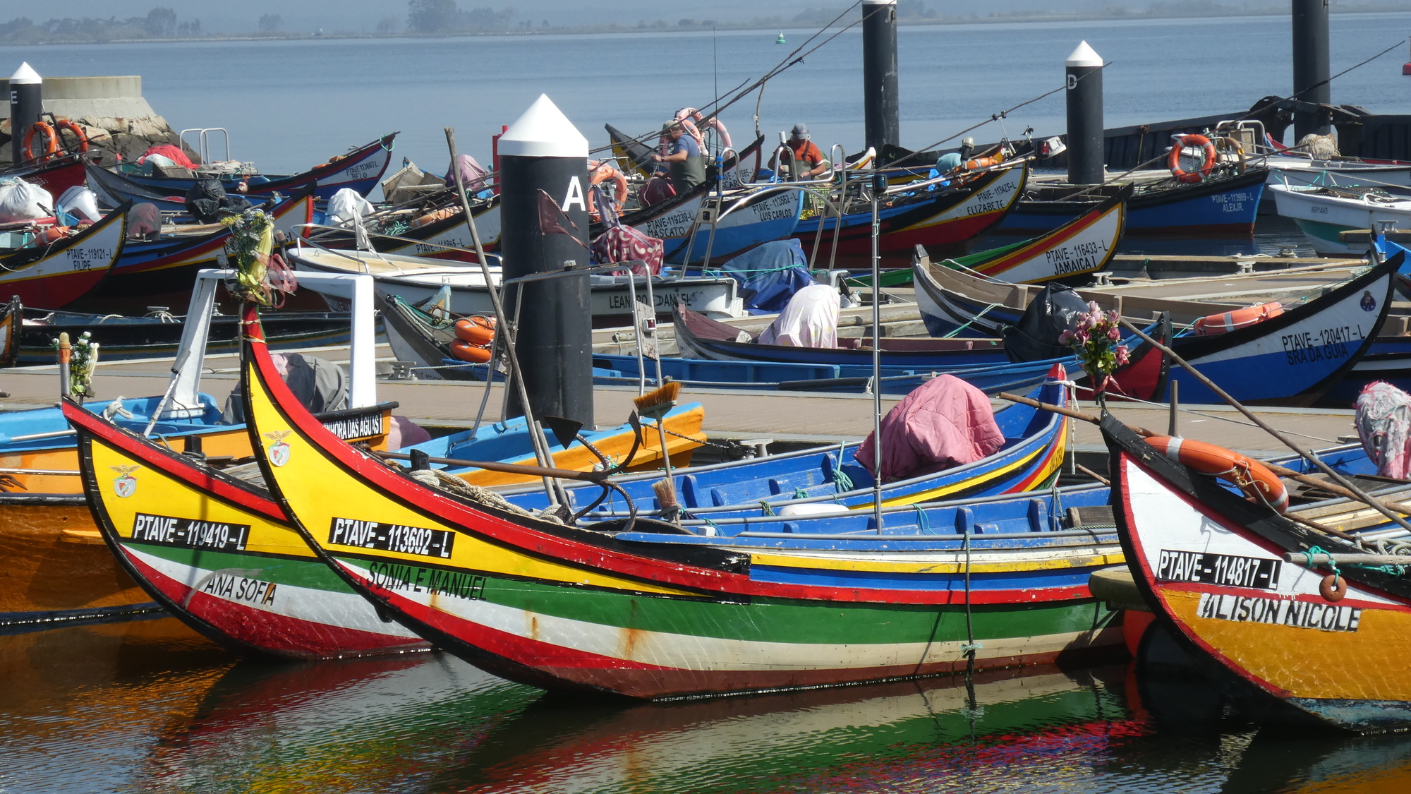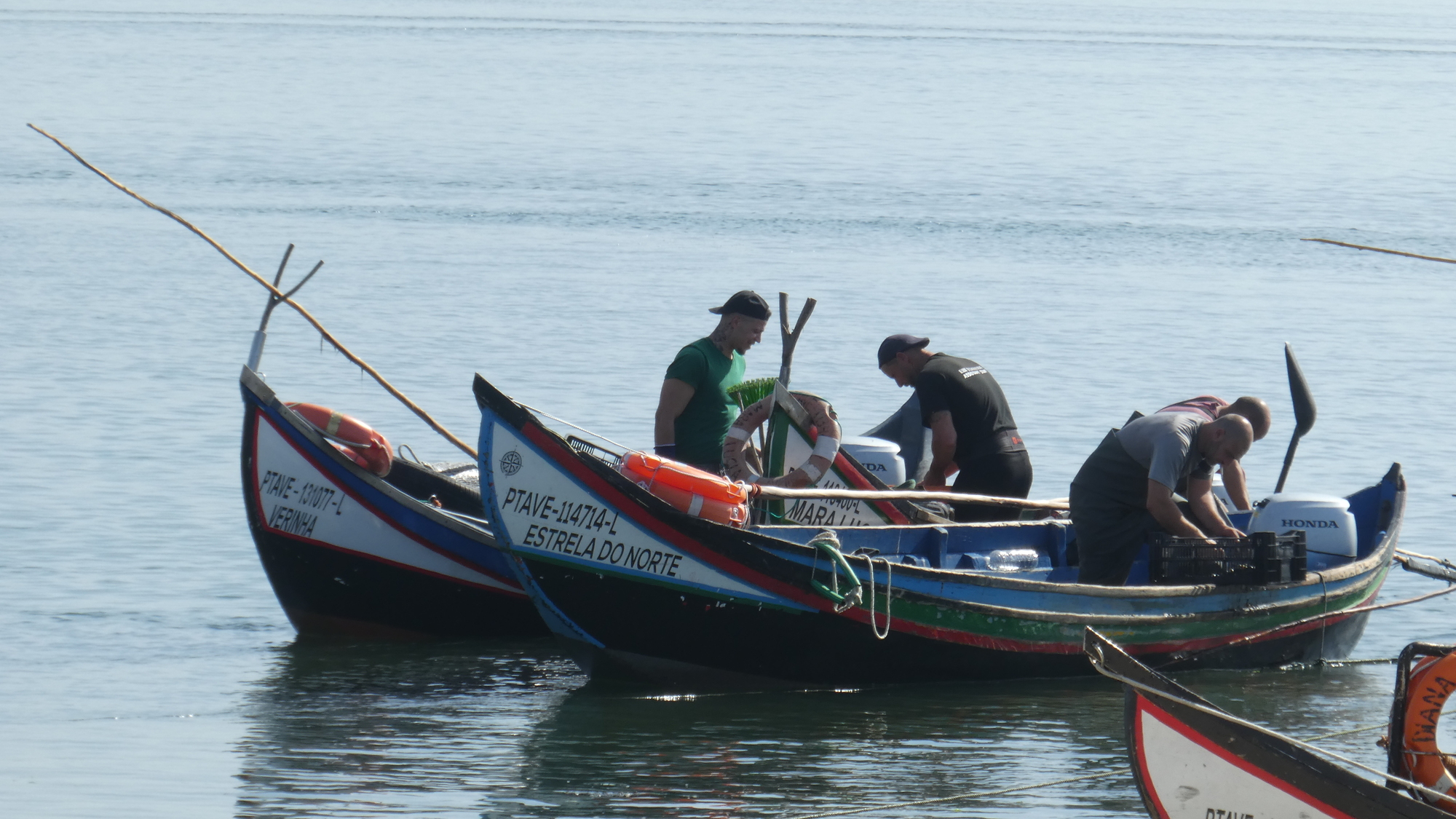 Off the ferry and now pedaling north on the peninsula, with the large lagoon on our right, we watched the fishers, with their iconically shaped and painted small fishing boats. It caused me to remark that this did not only look "like" a typical Portuguese scene, this was the real thing, meaning this is where you would come to shoot the postcard.