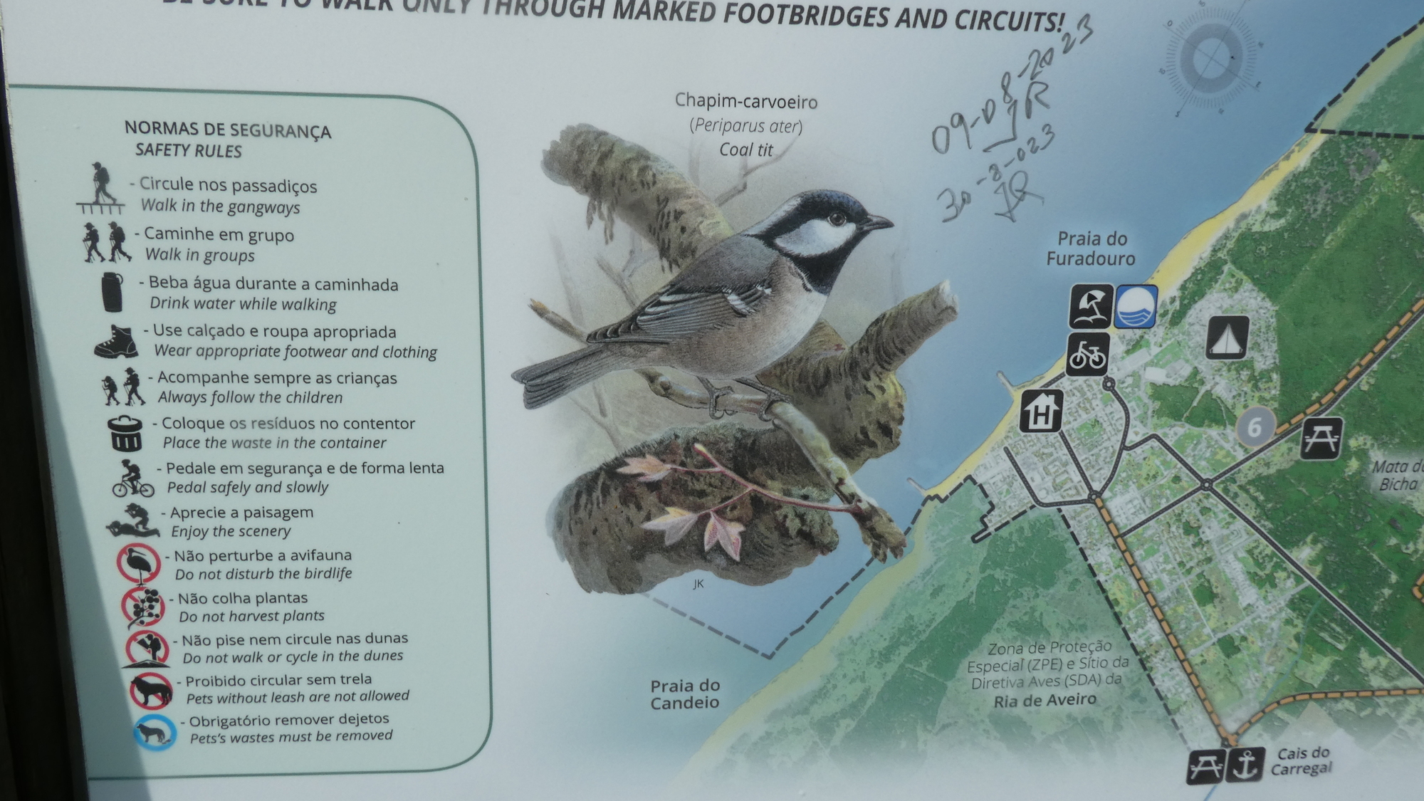 Our route now took us through a pine forest, just behind the beach dunes. It was called the Ovar Dunes Forest Trail, and it had many panels describing birds and mammals that we know we have almost zero chance of seeing. We did of course see a Hoopoe, earlier!