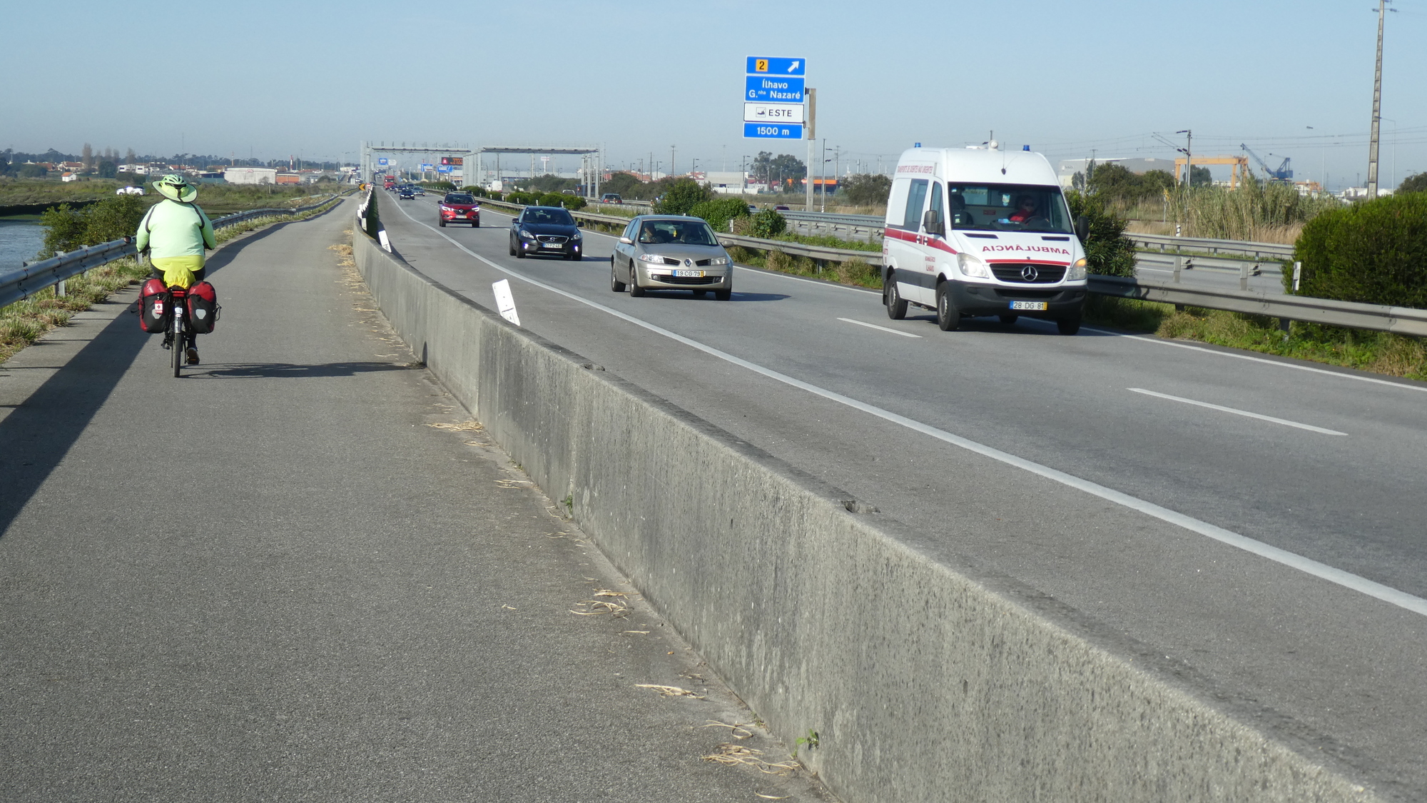 A watershed point in the ride came a little after the bridge to Ovar. We had crossed that bridge last year, said Dodie, something that I found amazing, since it looked way too high for me. It fact is had a bike lane and is fine. We didn't take it this time, keeping instead to the coast, skipping Ovar, on a straight shot to Espinho.