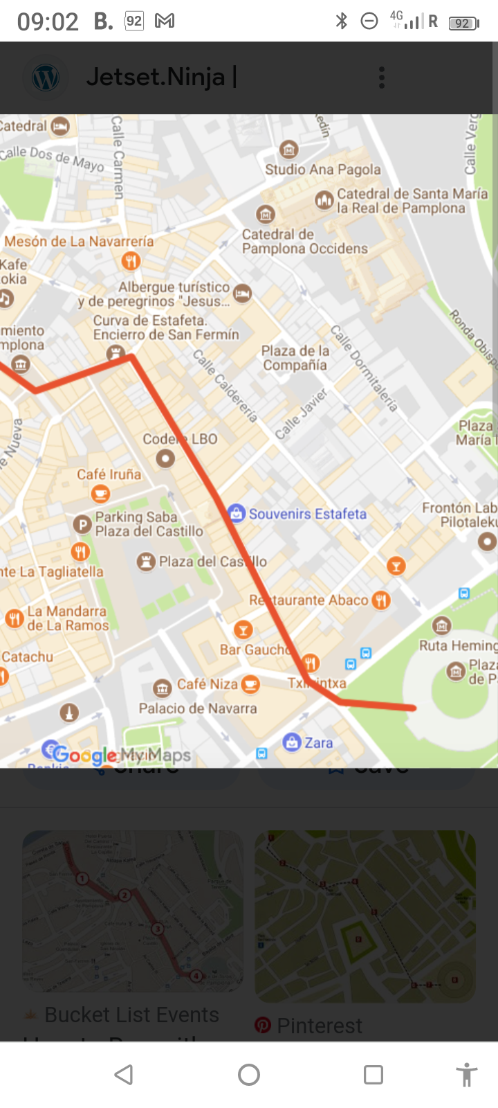 Since I was awake, I figured I could learn more about the famous Running of the Bulls here. Our spot tonight is just by the run route, and the destination bull ring: