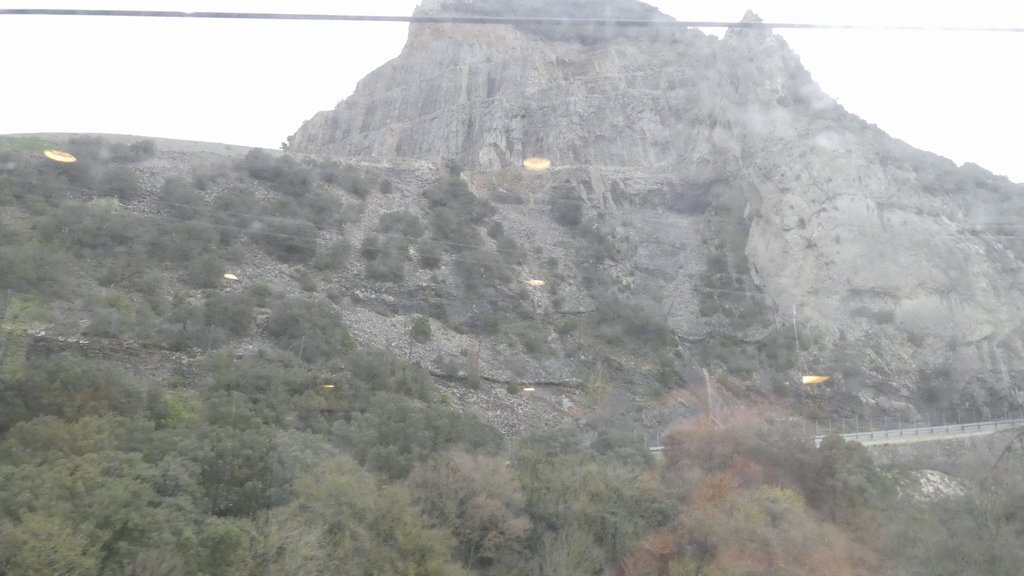 Back home, we had talked about cycling out of Spain , with the assumption of a train or something, to Pamplona. We clearly were not wanting to just reverse the Camino and leave at St Jean Pied de Port. Too hilly. So we had scoped out a route to Irun, which we thought would sidestep the mountains a bit by keeping more west. Now that our train was rather following what our bike route to Irun was going to be, we were appalled to look out the window and still see lots of mountain, with the train going through many tunnels. Together with the cold drizzle, we were glad it had worked out with the bikes shipped and not pedaled to Irun.