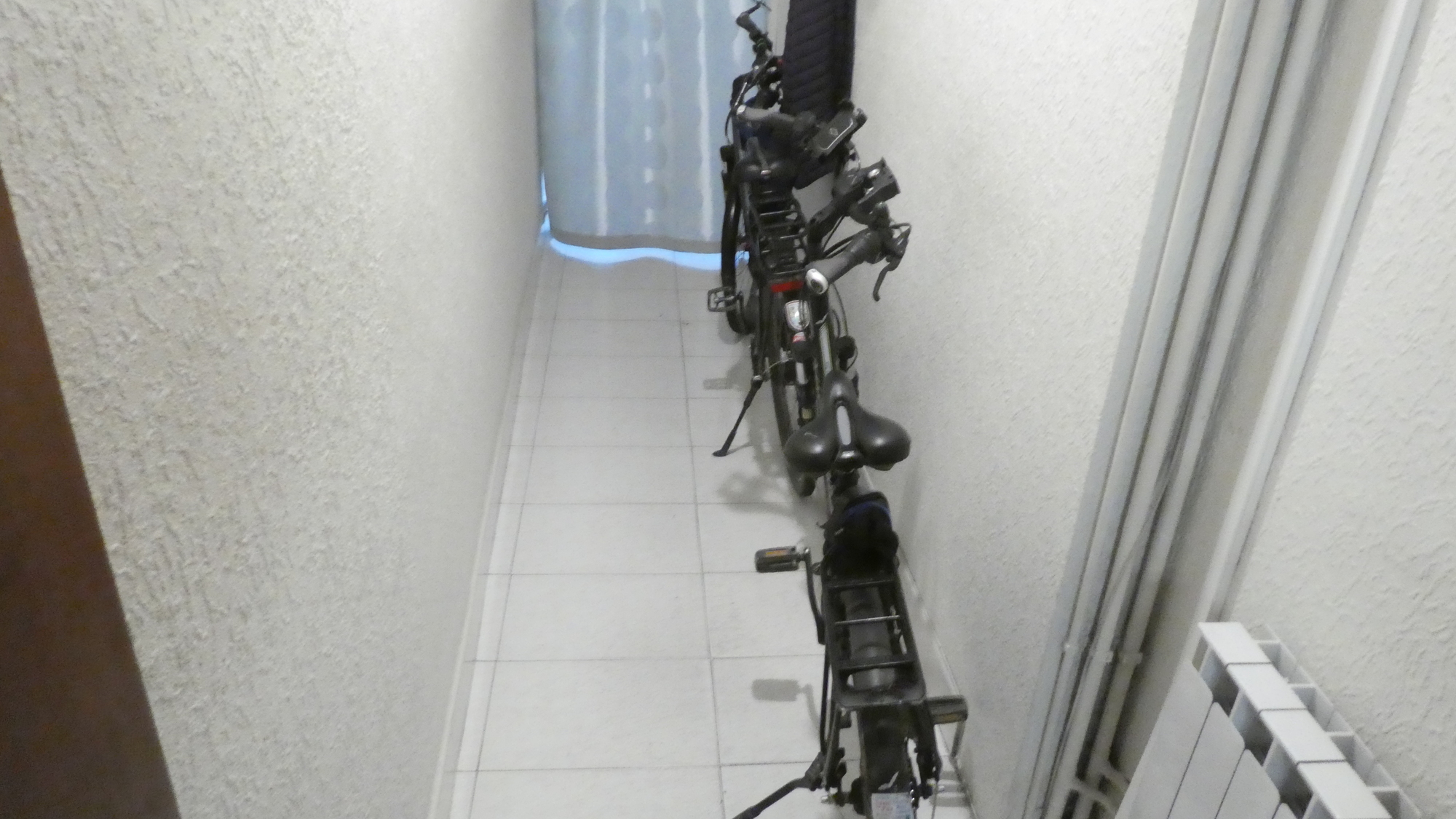 The plan at this stage was for me to pull the disassembled bikes from the boxes, and see about getting them roadworthy, right in that corridor. Dodie would pull our gear from the third box, and reconfigure the stuff for loading onto the bikes. If all went well, we could not only do that but write this blog and leave for France tomorrow.