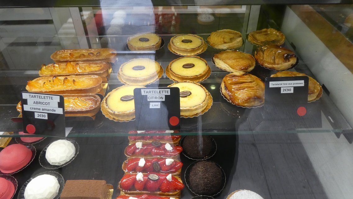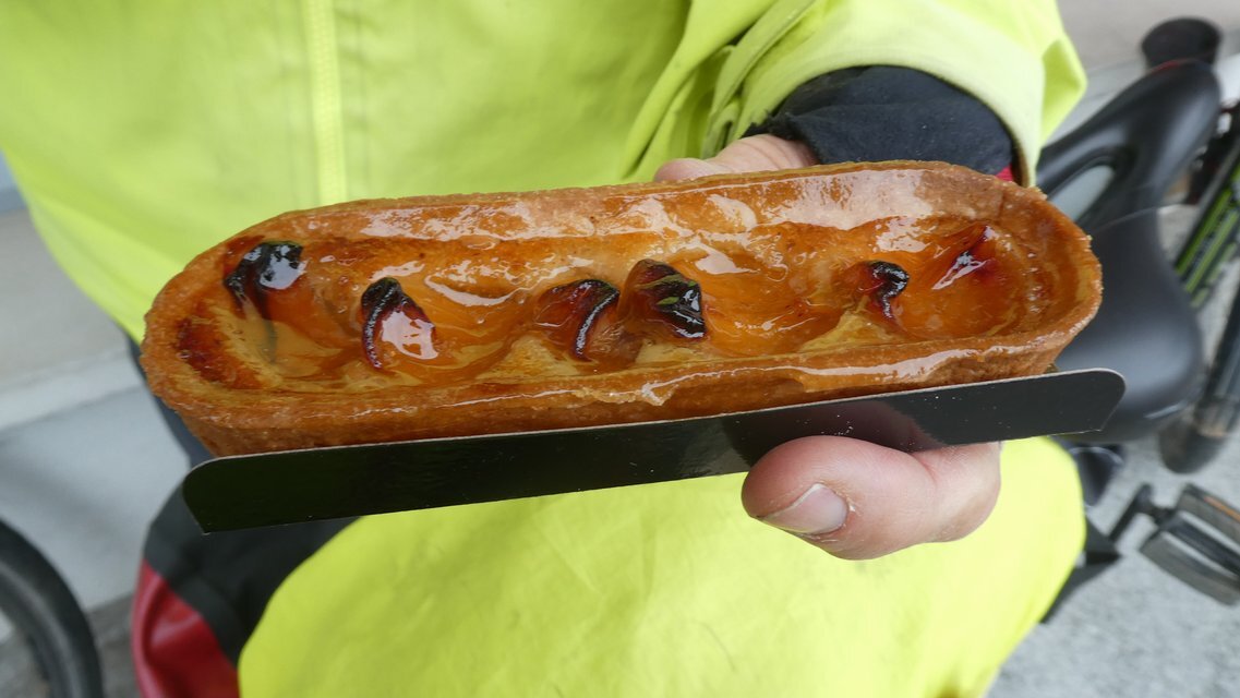 Of course the first thing to do in the first French town is to check out the first bakery. This one had some nice tartelettes. I went for the abricot, with the creme amandes!