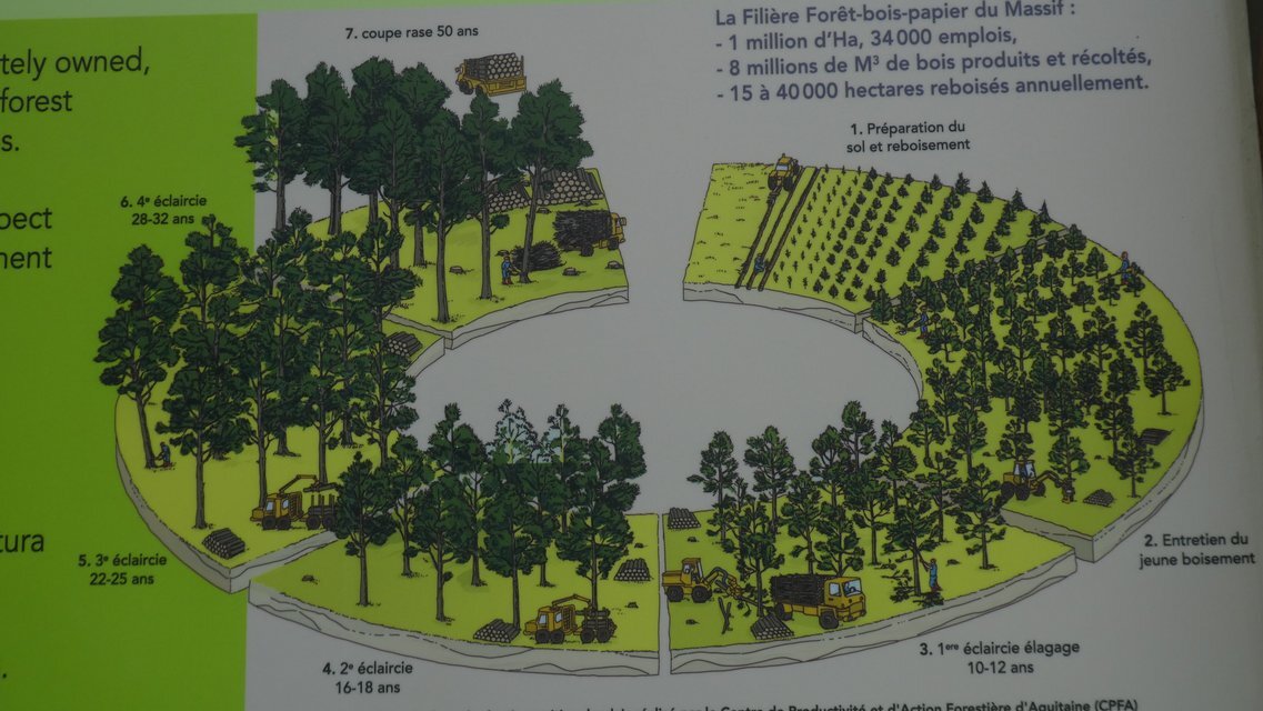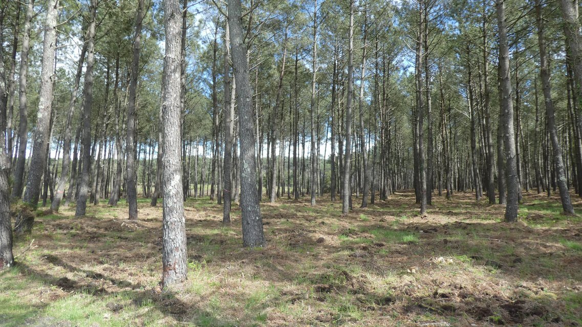 Now we entered an area of managed pine forest. This goes on for a very long time. It is easy to see patches that will soon be thinned, thinned patches, and areas of mature trees.