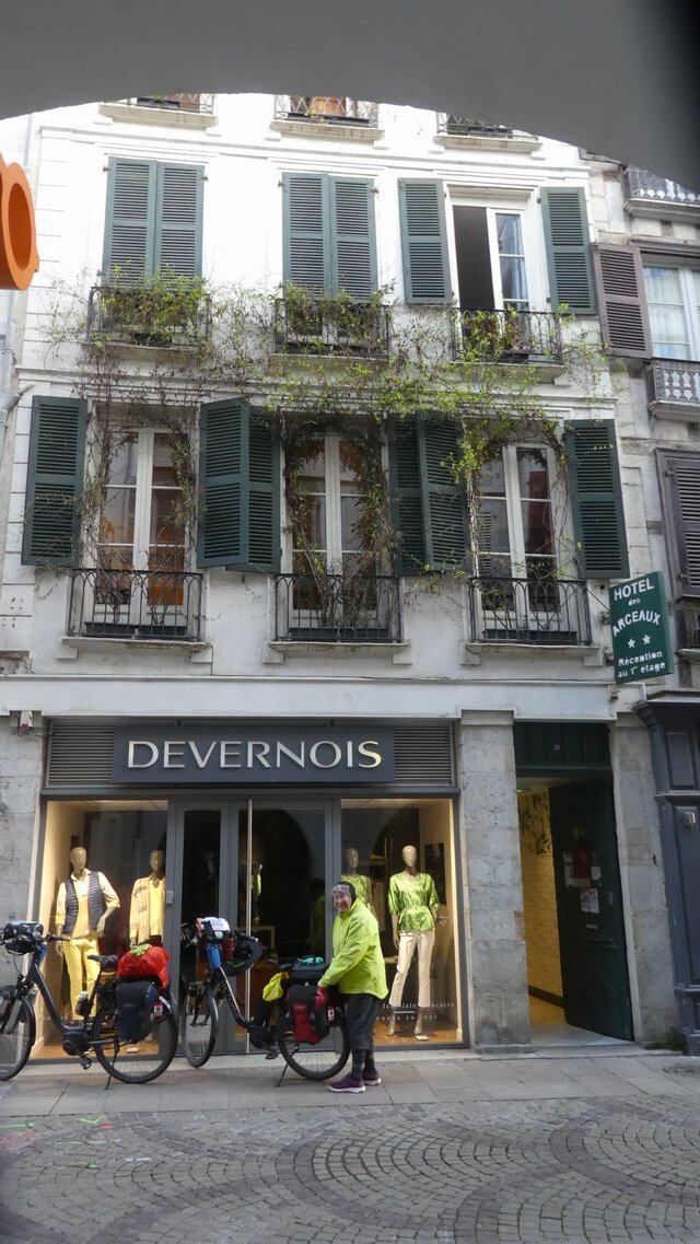Loading up in front of Hotel des Arceaux, I noticed that it was not really as narrow as it had felt yesterday. It was mainly the entrance that was super narrow. The grey shroud at the top of the photo is not an attempt at censorship, but, I think, a weird camera glitch.