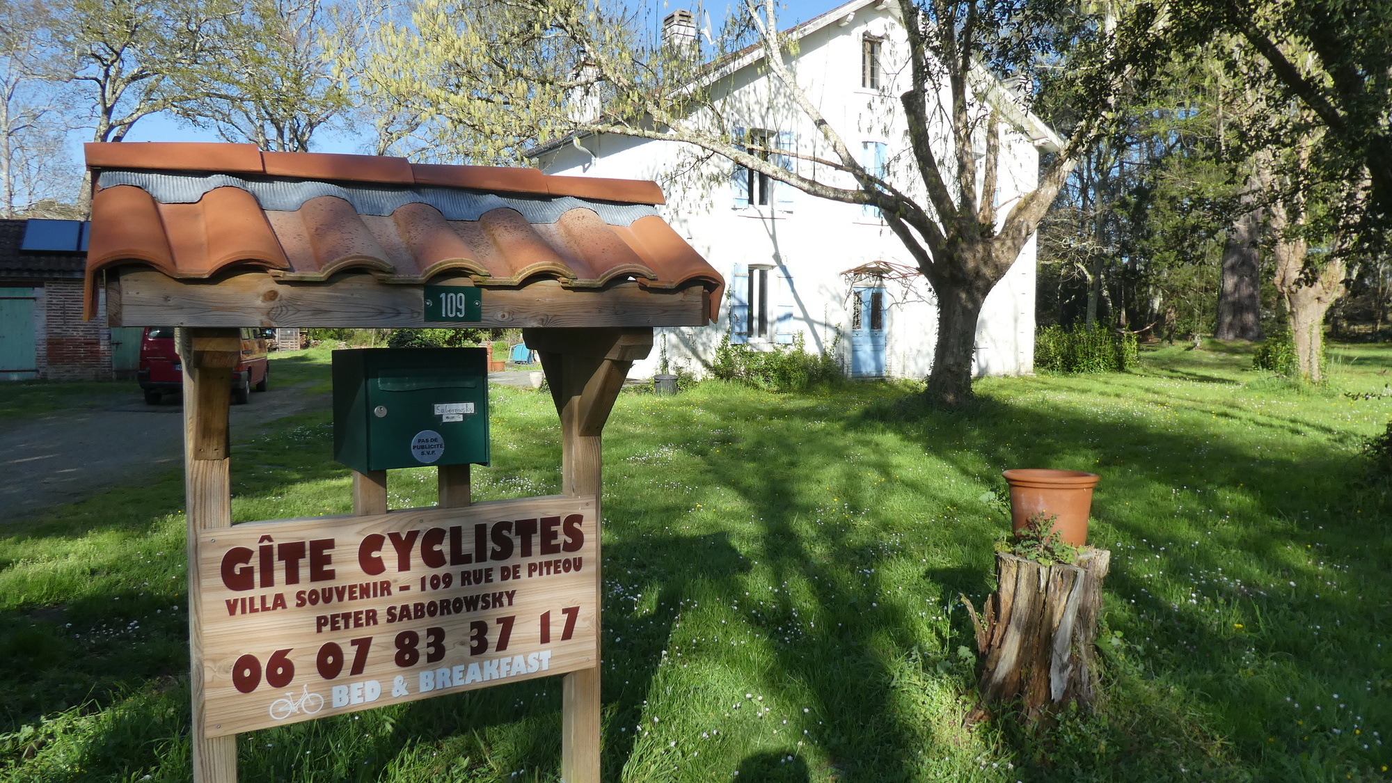 We booked a place just outside Leon, that attracted us with its name. Indeed, it is set up to receive cyclists from off EV1, and even has an Acceuil Velo sign.