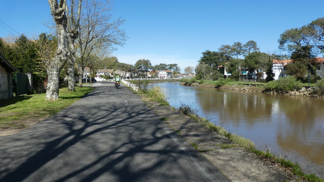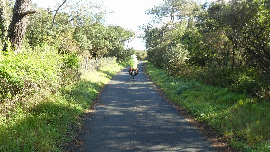 We carried on along the road for a bit, but soon had another crack at regaining EV 1. Now it really did the trick for us. It is a combination of rail trail and marked bike lane, such that at no time during today were we battling with cars.