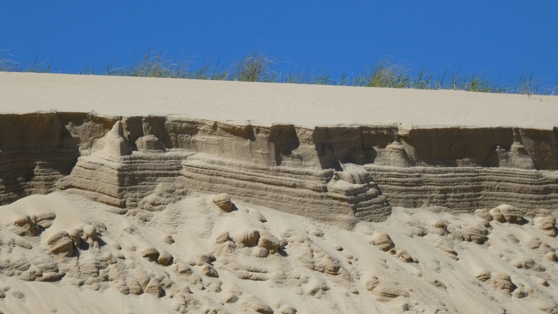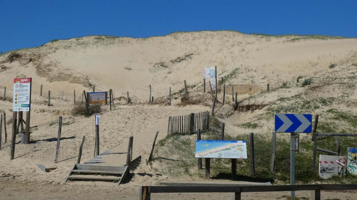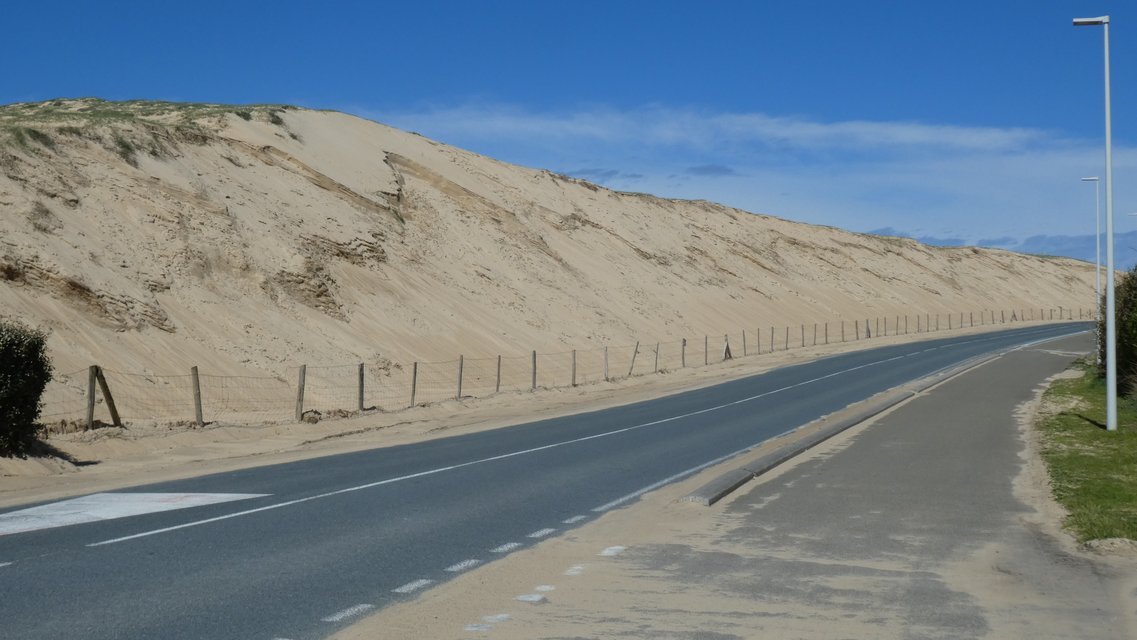 At this point one could walk up the dune and have a look at the ocean. We found David and Jennifer there, doing just that. They said the 15 minute hike up was worth it, but for some reason we were eager to move along. Grampies 2017 also recommended this, but Grampies 2024 will maybe wait until an opportunity comes up tomorrow.