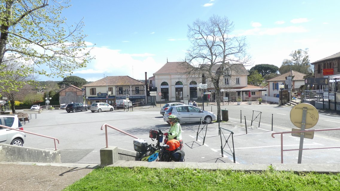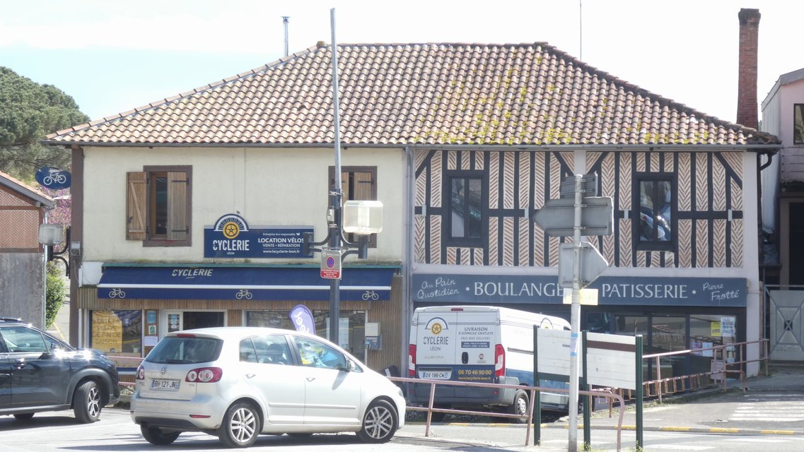 At last we came to Leon, our destination town for today. We were pleased to see the standard French layout, with church on one side, bakery on the other, of the central square. There was a bonus this time, with a bike shop beside the bakery.