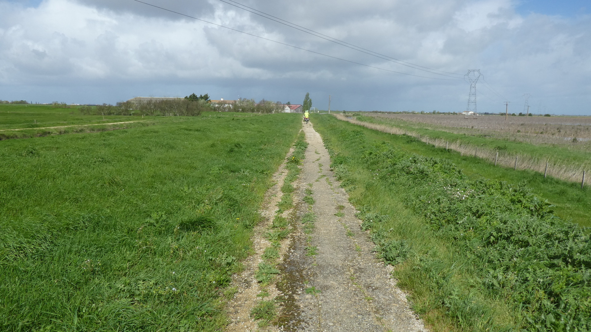 Eventually the track settled down to following a canal, one which runs from La Rochelle to Marans. (Marans is famous with us former chicken farmers as the place of origin of a breed of chickens that makes very dark brown eggs.)