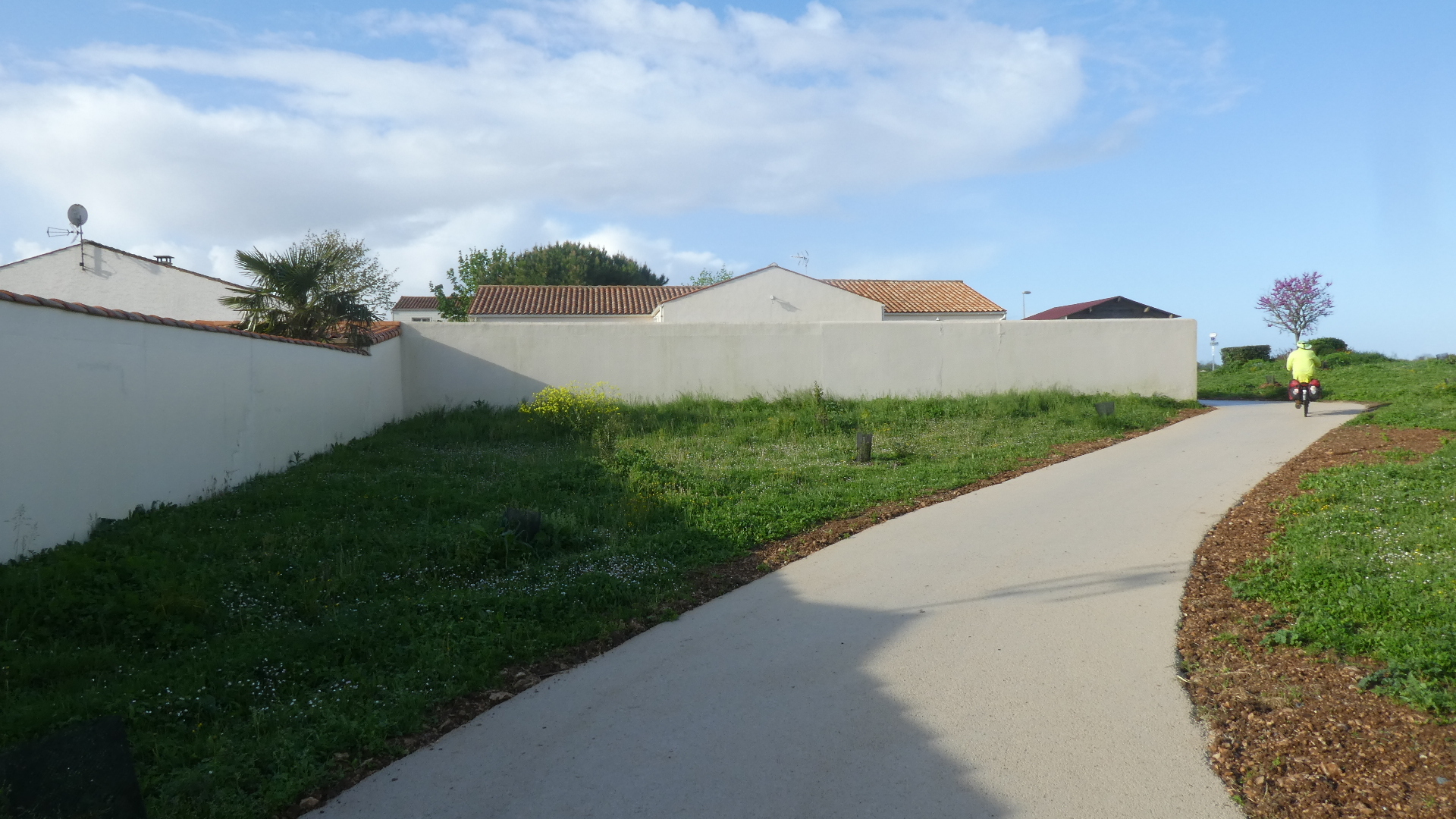 Before we could worry about Nature, we were commenting on how the cycle route designers often like to put the thing away from any services and outside the towns. Dodie remembered this particularly with Dompierre-sur-Mer, where the town has a modern version of a wall around it, and EV1 dutifully skirts the outside.