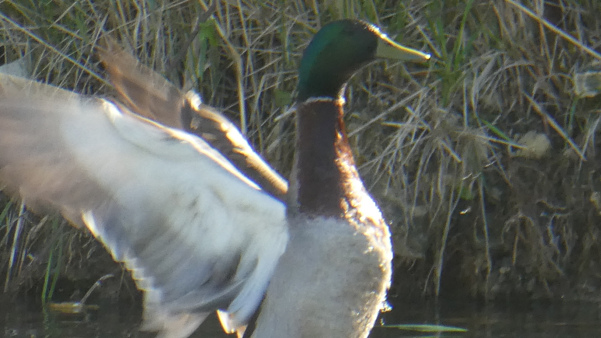 The canal and marsh area produced some bird sightings. Among these was a Mallard, too common to be exciting, except for the show this one put on.