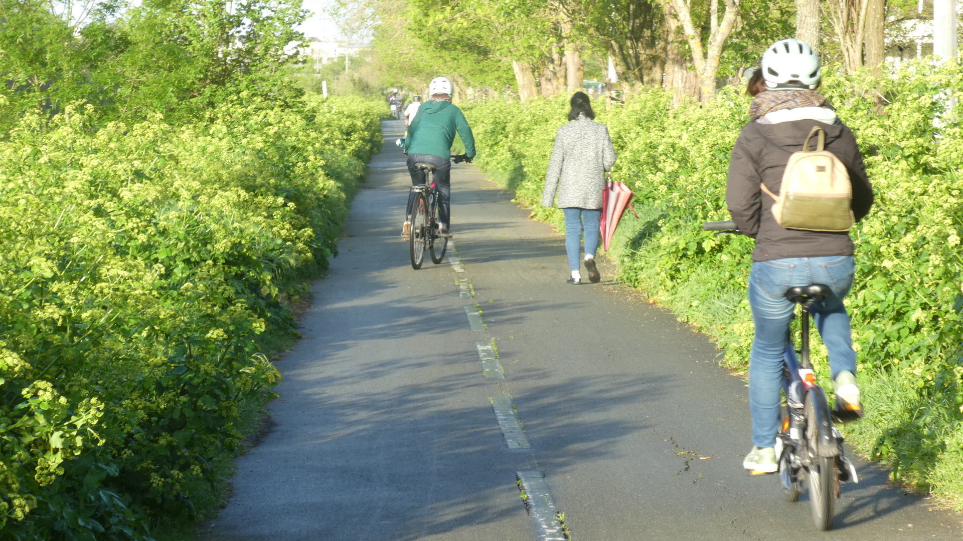 As we set about leaving the downtown area, we encountered a gratifying number of cyclists coming in. They had all sorts of bikes, including the readily noticeable cargo bikes with kids seated in front.