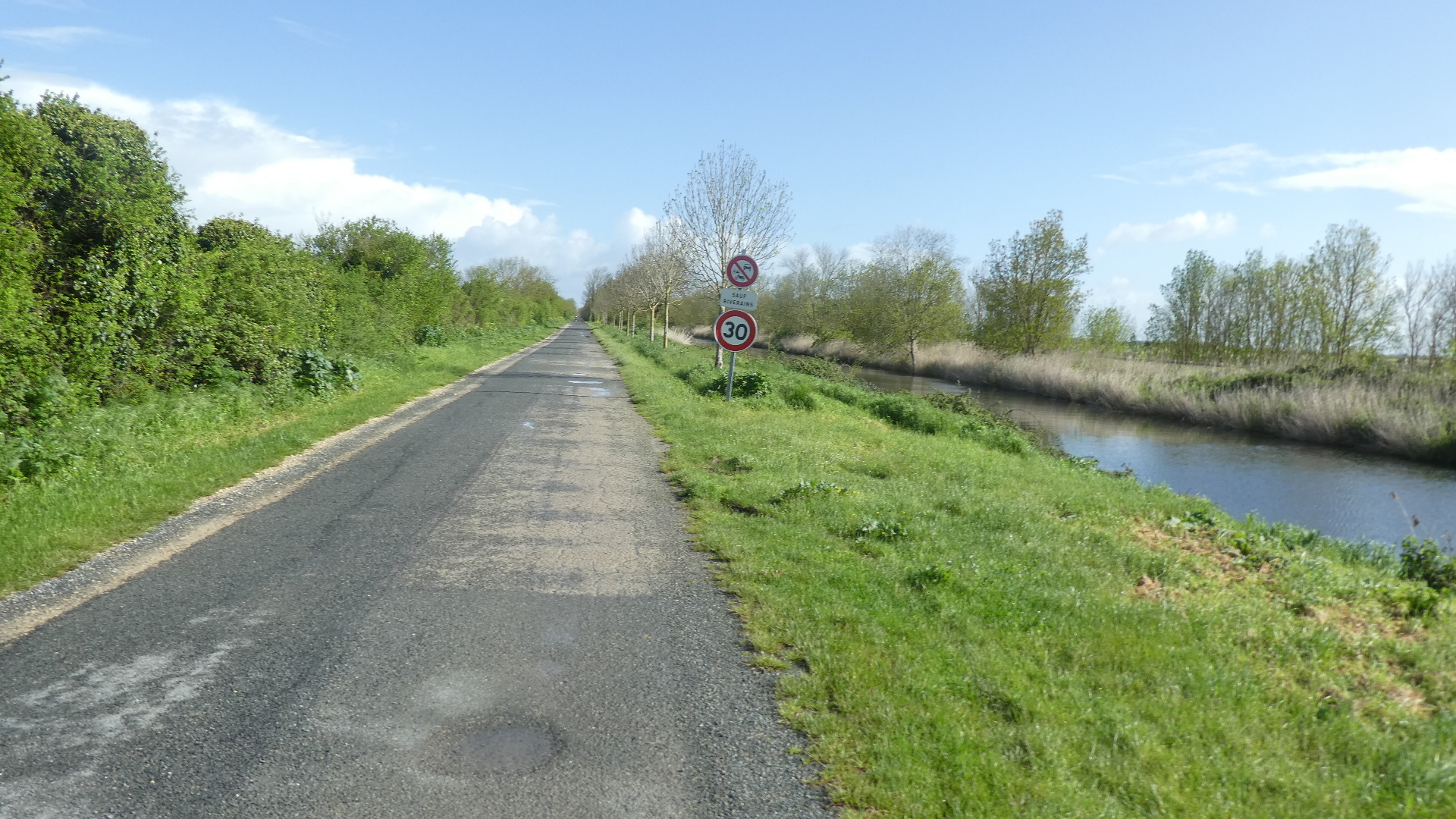 After a time, the track took to just seemingly random wandering through marsh, and farm fields. This area is part of the Marais Poitevin (Poitevin marsh) regional park. I have put lots of stickers on my bike and bags over the years, from all over Europe. Most eventually fall off, but one has hung in there, and it says Marais Poitevin. I have no idea when or exactly where I got it, but I wonder why I did, because this time out it was, honestly, hell.