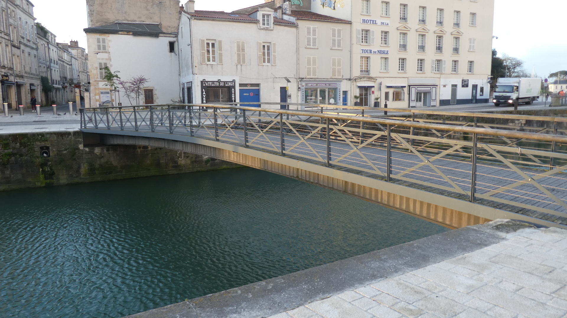 We crossed over a passerelle (small bridge) from the hotel to start the day's adventure. Although it looks quite modern, the passerelle is dated at 1550 by a plaque at the entrance.