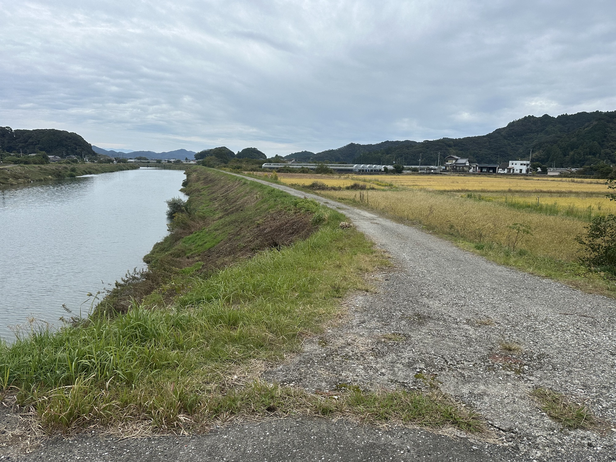 We were doing our best to stay off the main roads, and Komoot was mostly helping in this endeavour, sending us a route that tracked along canal-side dikes through rice paddies, occasionally crisscrossing over bridges from one side the other for reasons that were not evident to us — but we were happy to go along with the arbitrary changeovers. Then, ominously, our paved one-lane road turned to gravel, then to a rutted, muddy track. We persevered for a while, hoping the road would reappear. Nope, Komooted again!