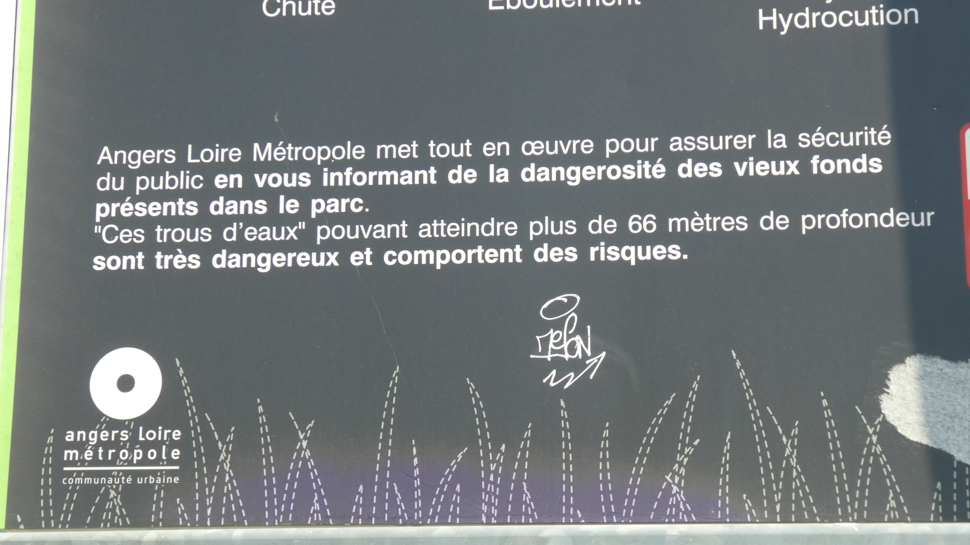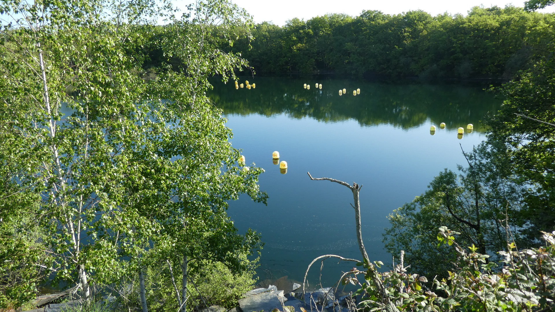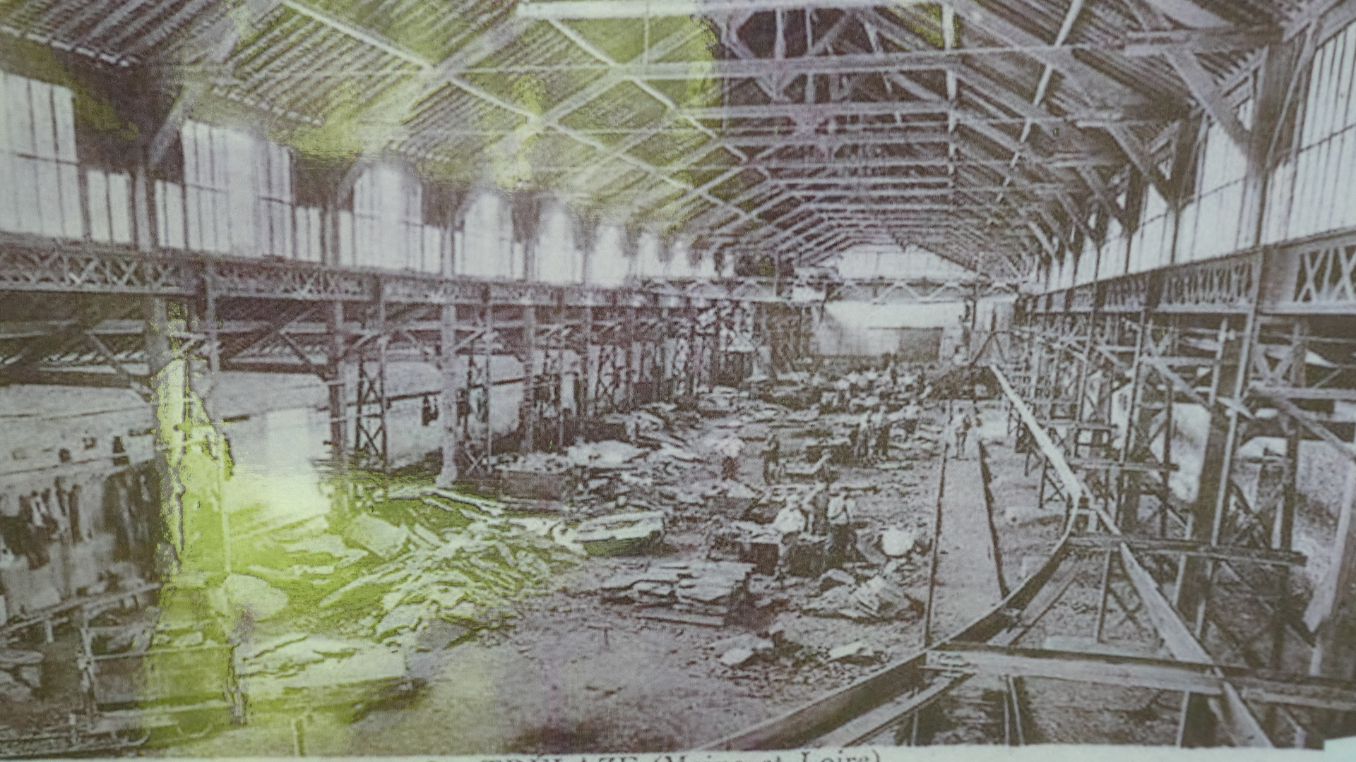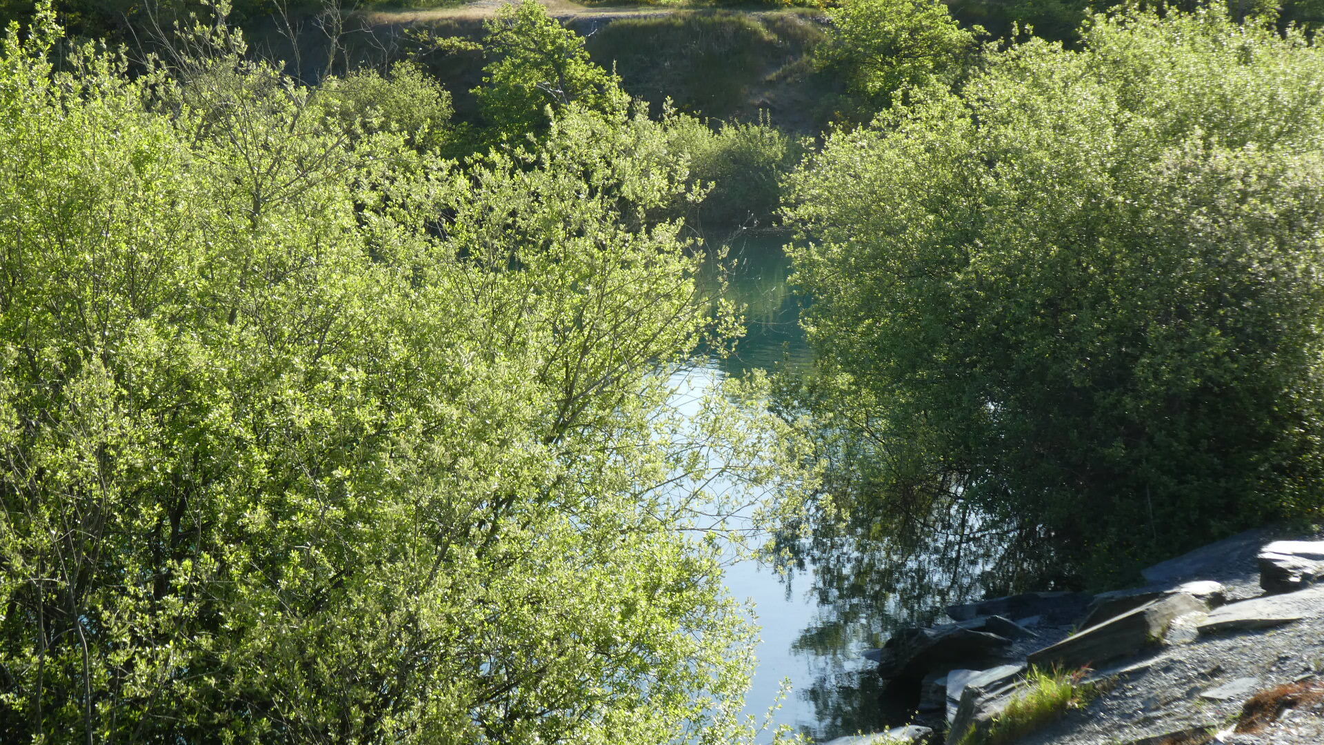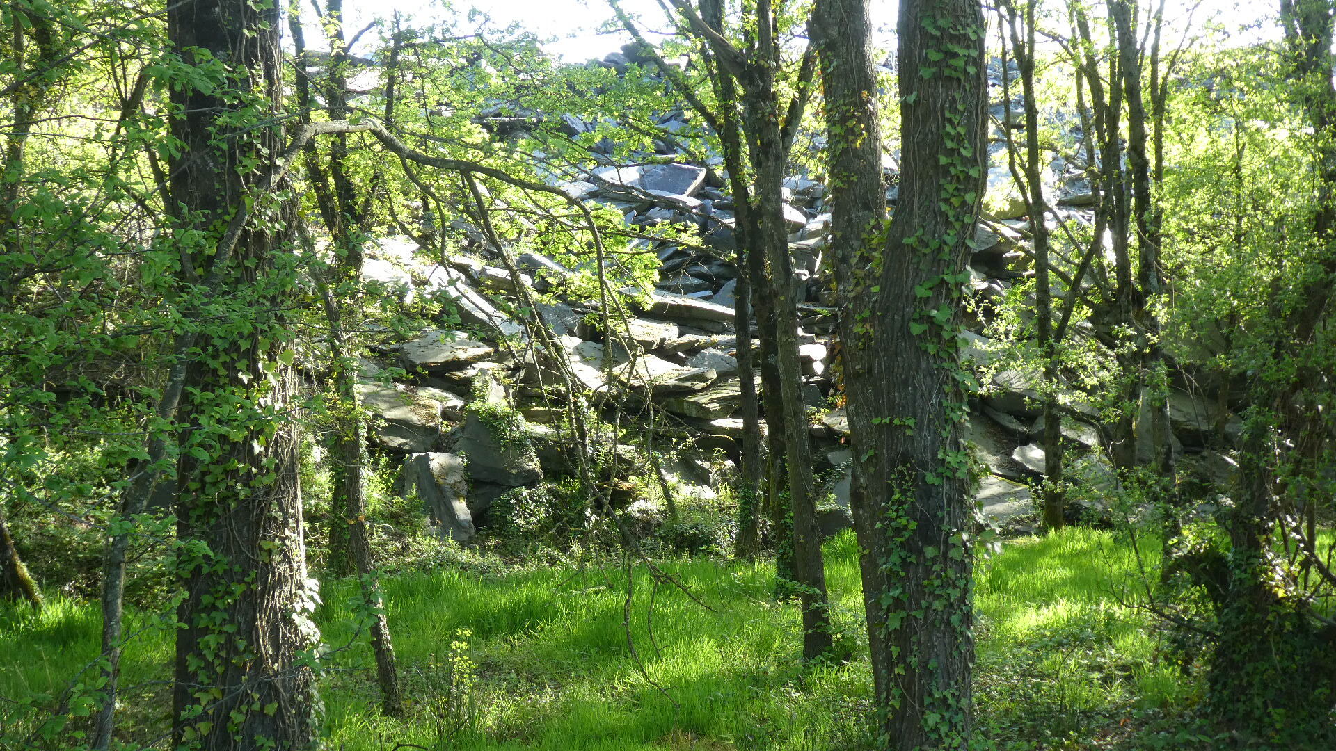 There was still a chance for the city to degenerate into car dealerships and box stores, and maybe it does, in some direction. But for us, within 4 km of downtown we were already at the entrance of the Ardoises park. What this is about is that a little southeast of Angers there were huge deposits of slate. From the 8th century this was used for walls and from the 11th for roofing. Extraction began in open air pits with manual methods, and progressed as steam and heavy equipment became available. The industry began to falter in the early 20th century, with competition from other building materials, such as clay tiles. By the 1970's, all the larger quarries had closed. However, as we have seen with other mining landscapes (such as coal around Leipzig), environmental restoration can turn moonscapes into valuable parks.
