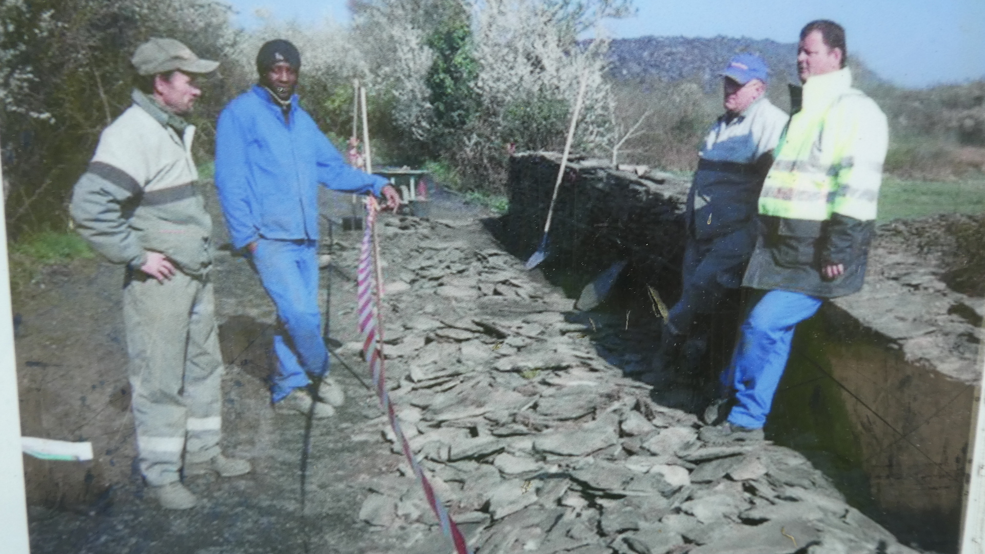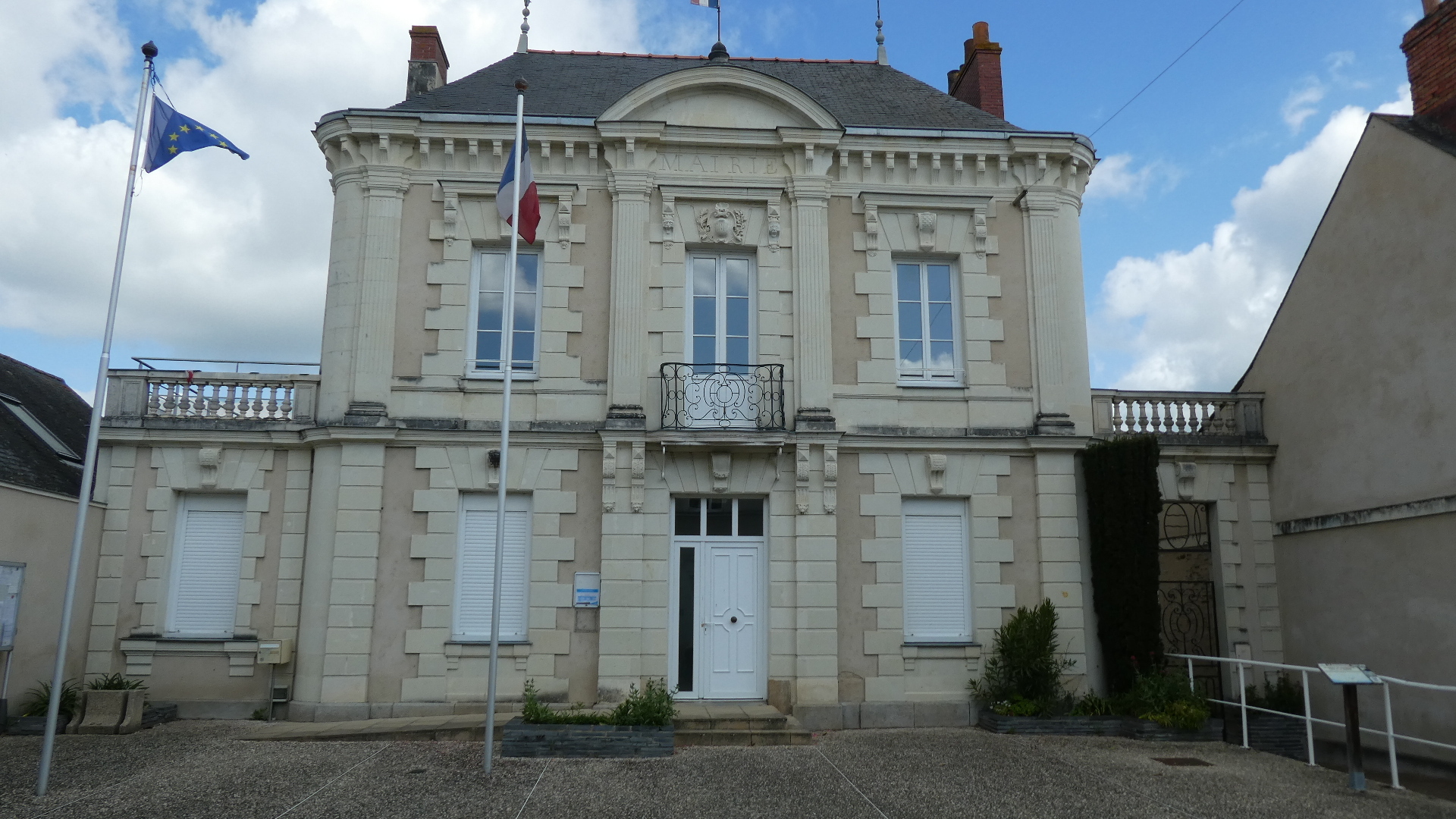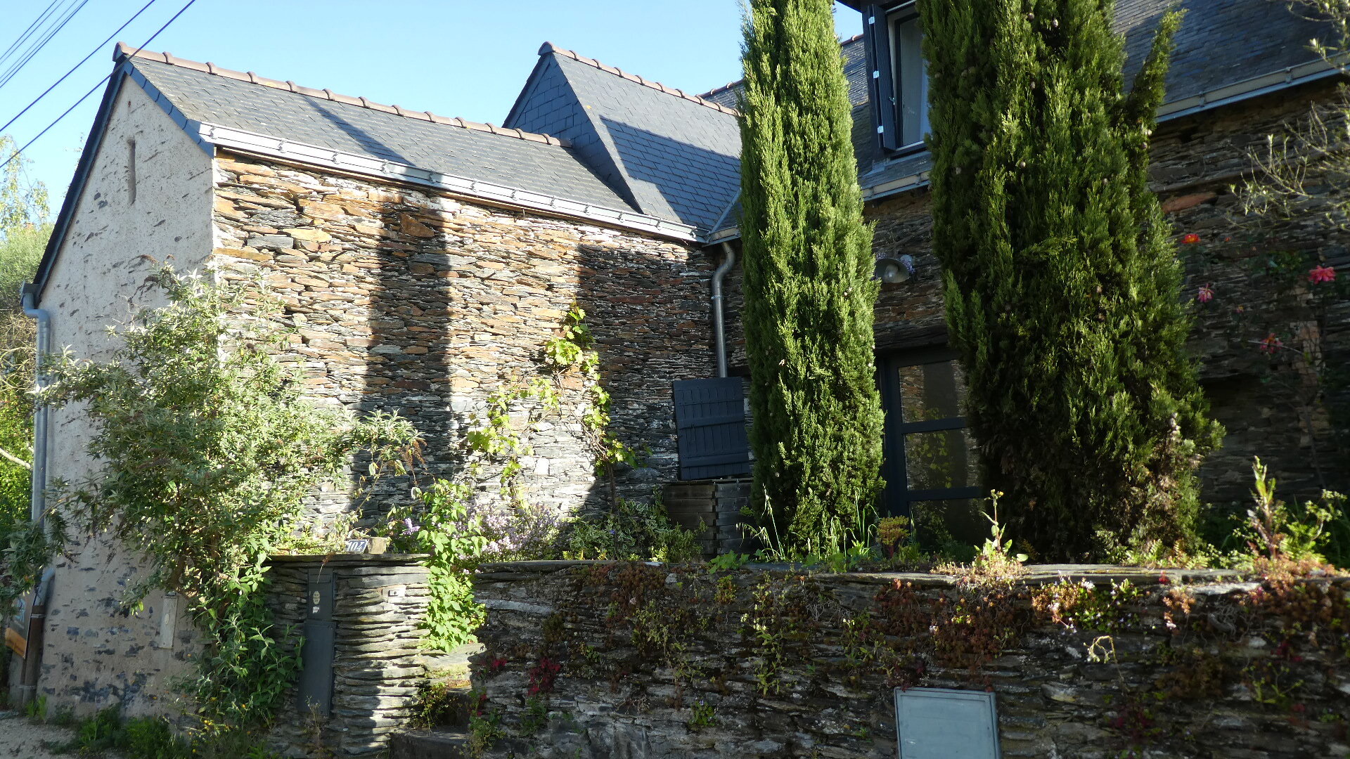 Once we were through the park, we had the ambition of visiting the slate museum, which we understood was in the nearby town of Trelaze. We had a track from the Tourism people that we thought would take us there, and we rather blindly followed it. If you look at the map below, you see us coming in from the upper left, through where it says "Les Petits Carreaux". Then we swing left around the big pond, and come to where a right, onto the dotted green, would have taken us to the Authion, and the little ferry. But on the way we met another cyclist, who stopped to tell us the ferry was not operating. La Dagueniere city hall strikes again. Nine years they've had to clean up their act!