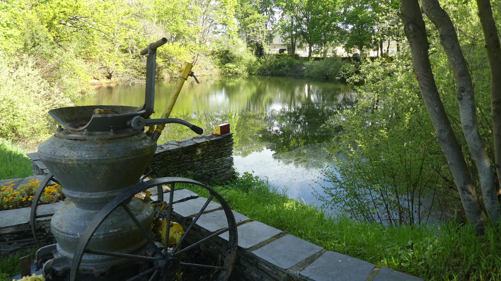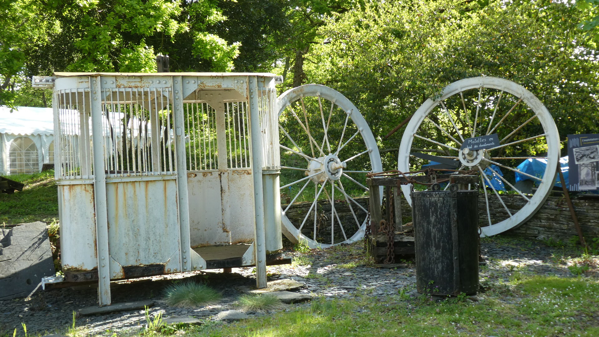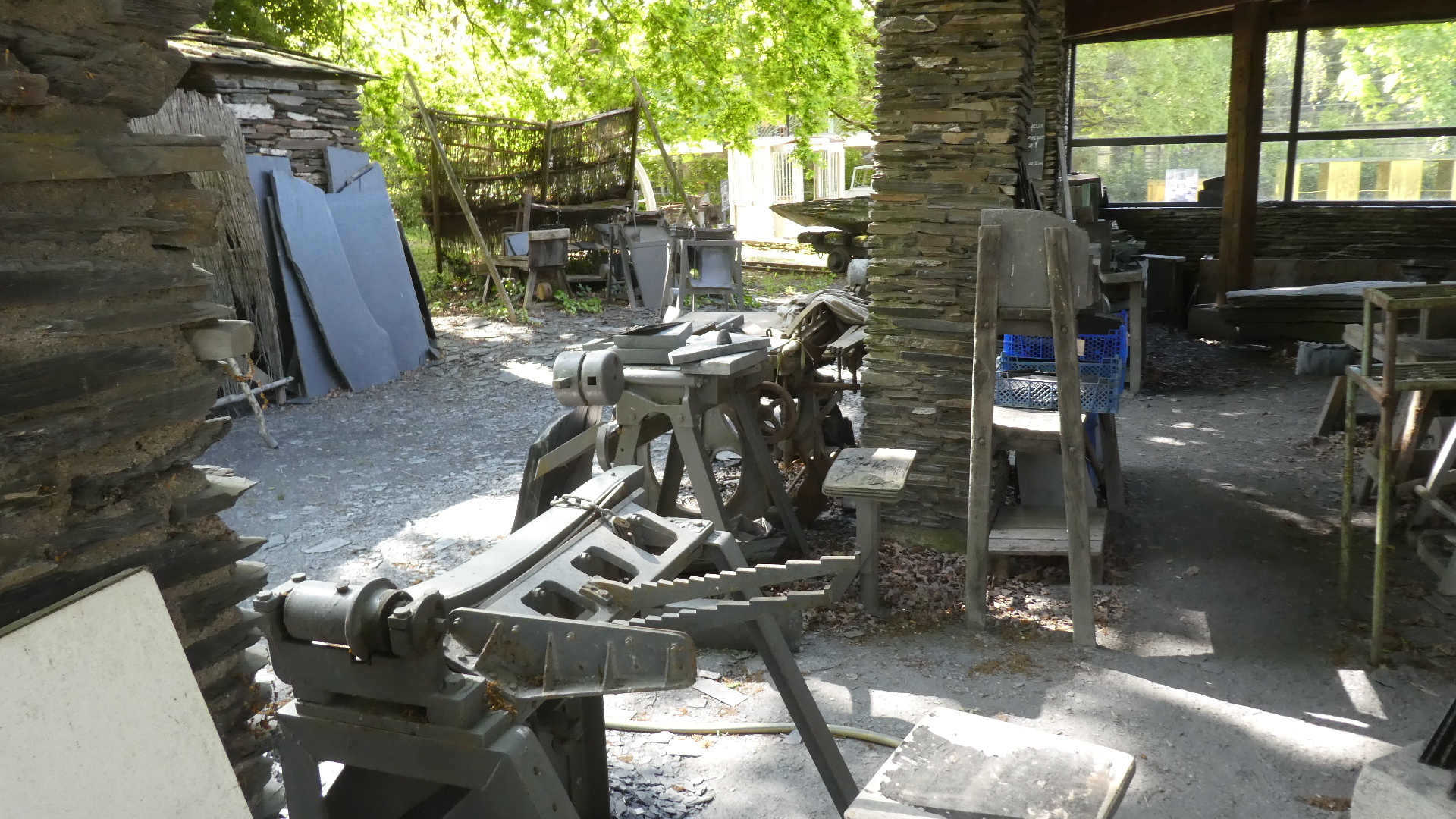 We responded to this by jumping the fence (slate, of course) and strolling the grounds for a bit. Very reminiscent of the "forest museum" near our home, they had a selection of old equipment lying about, and some photos of how it was in the old days.