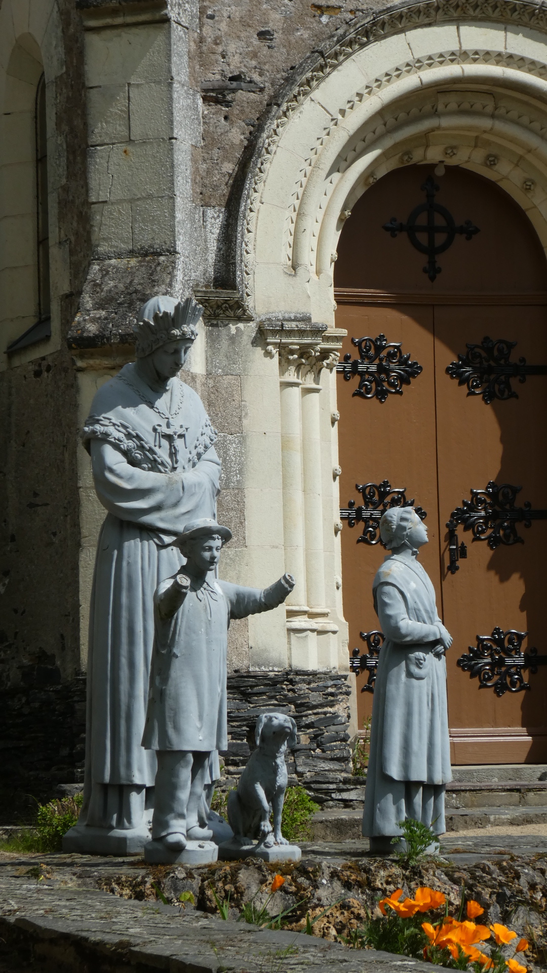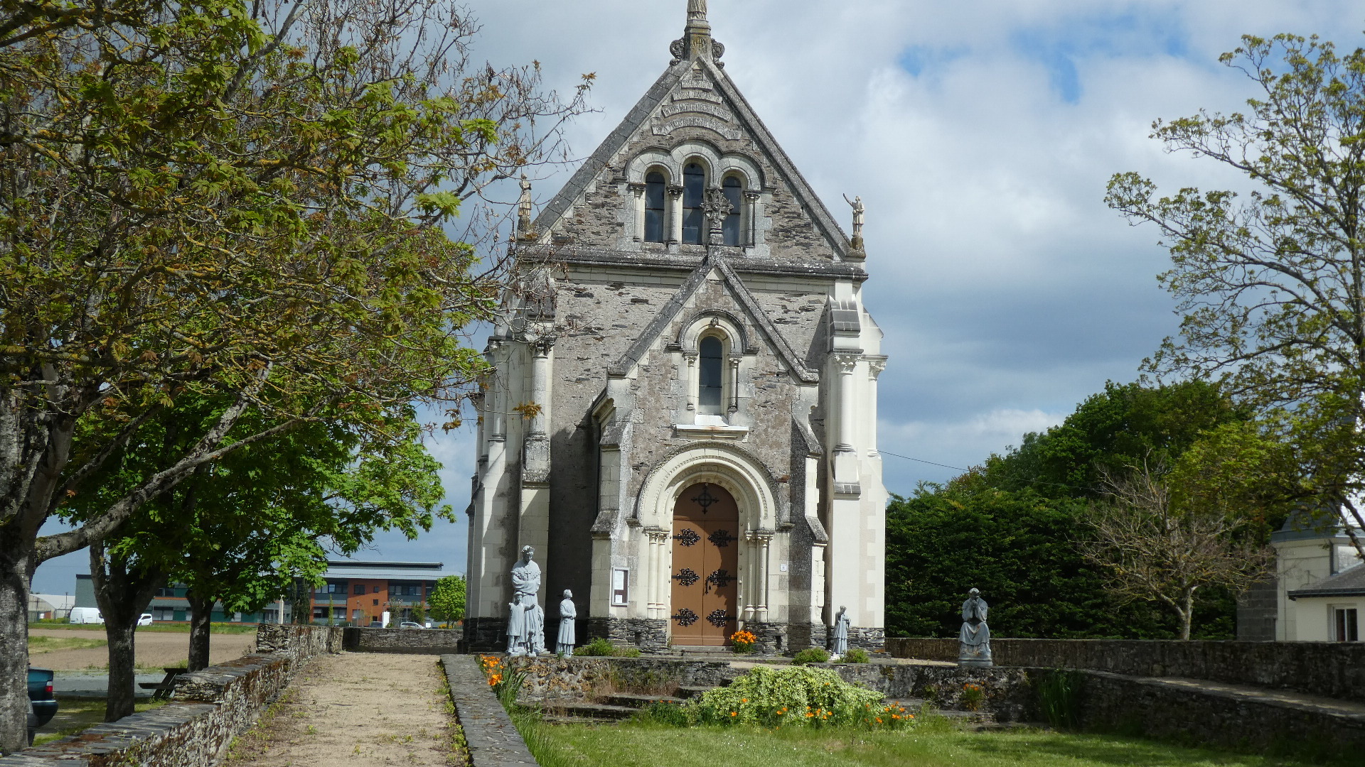 Down the road we came to a rather attractive chapel, that the sign said was from about 1890. A healing miracle attributed to Mary lay behind its construction. It is called Notre Dame de la Salette, and was apparently quite a pilgrimage site for a while. It has some striking full sized stone statues outside as well.