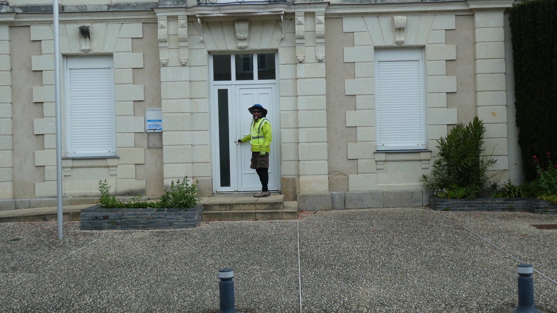 We have been to this area before, and like it a lot. But there are two shadows on the story to mention. The first is from when we first were here, in 2015. Coming in on EV 6 from the east and trying to reach Angers, there is a river to cross. It's the Authion. To make the crossing on the bikeway, the nearby town of La Dagueniere provides a cable drawn self-serve little boat. When we arrived here in 2015, the boat was out of service, parked in the middle of the river. A call to the emergency number provided nearby, to La Dagueniere city hall, provided no help. Consequently we had to slog through grass and mud for a fair distance, to the dangerous highway bridge. Because of this experience, which you can re-live with us here, we subtitled that blog page "C'mon Mairie de La Dagueniere, get serious!".