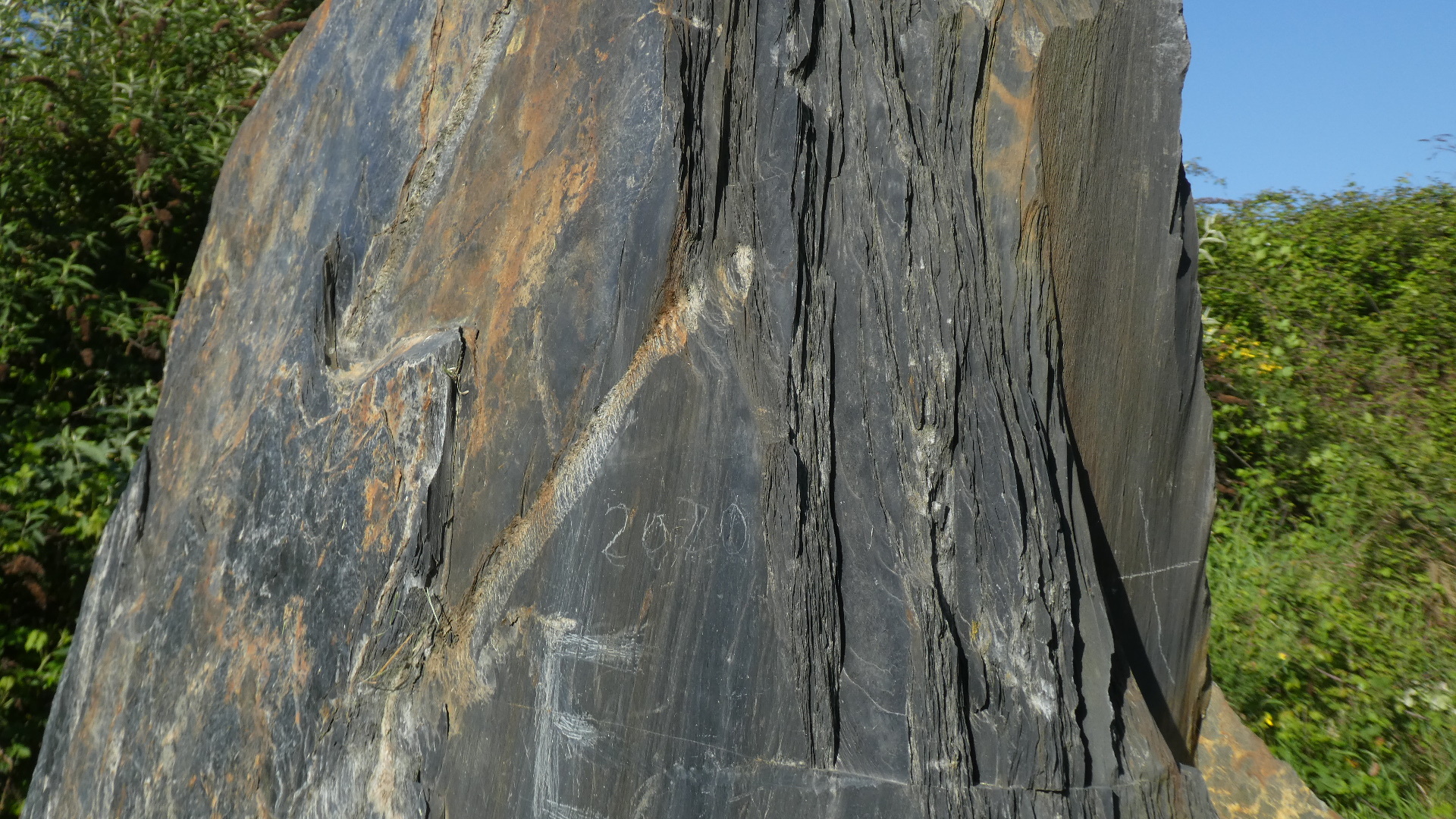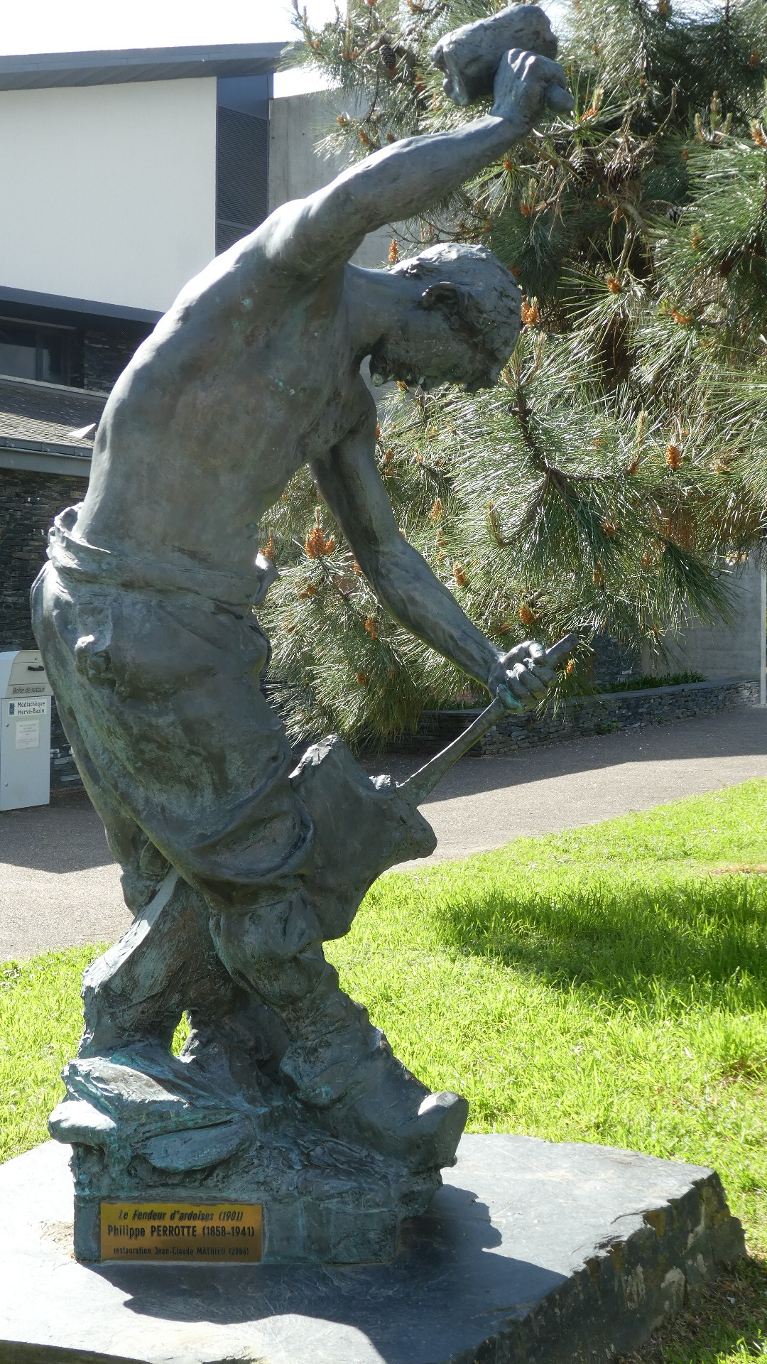 Out front there was this statue depicting slate splitting. Had we stayrd around until 16:00 we would have seen a demonstration of this.
