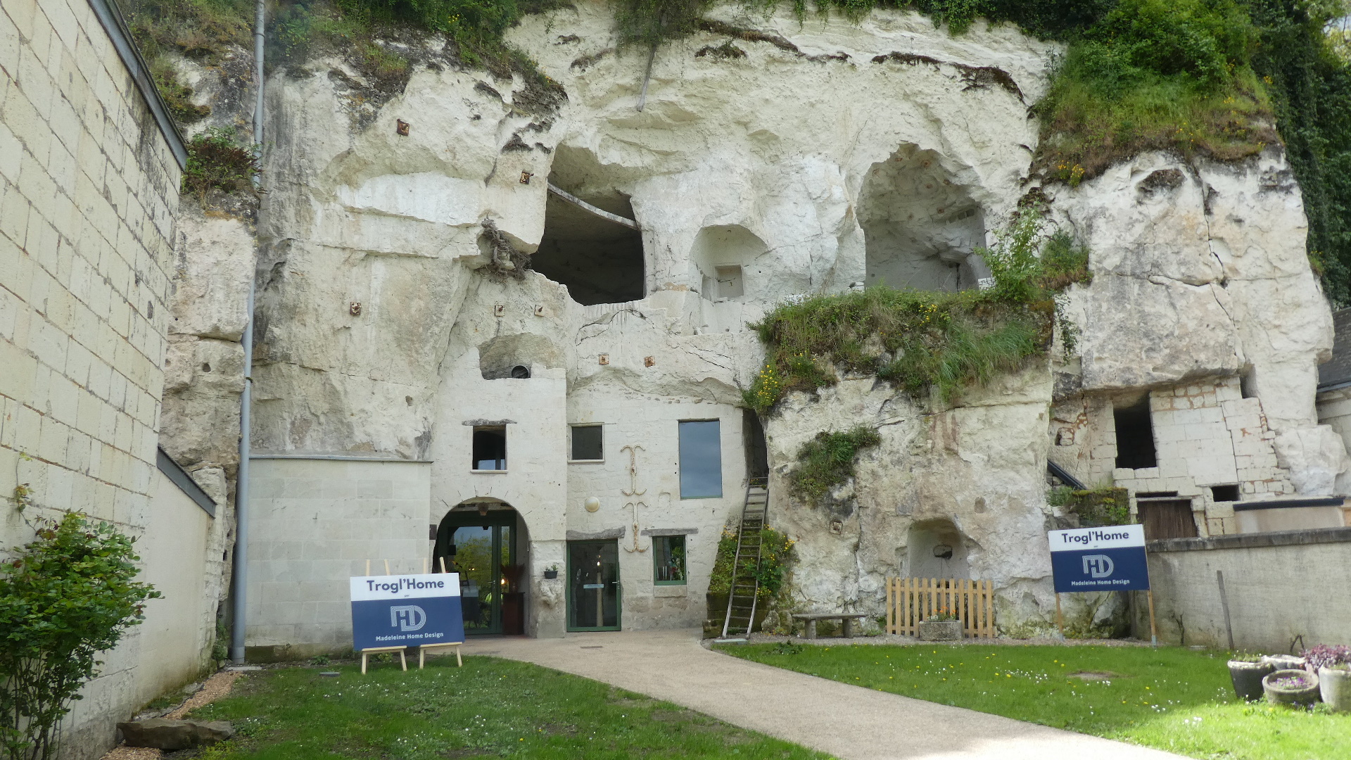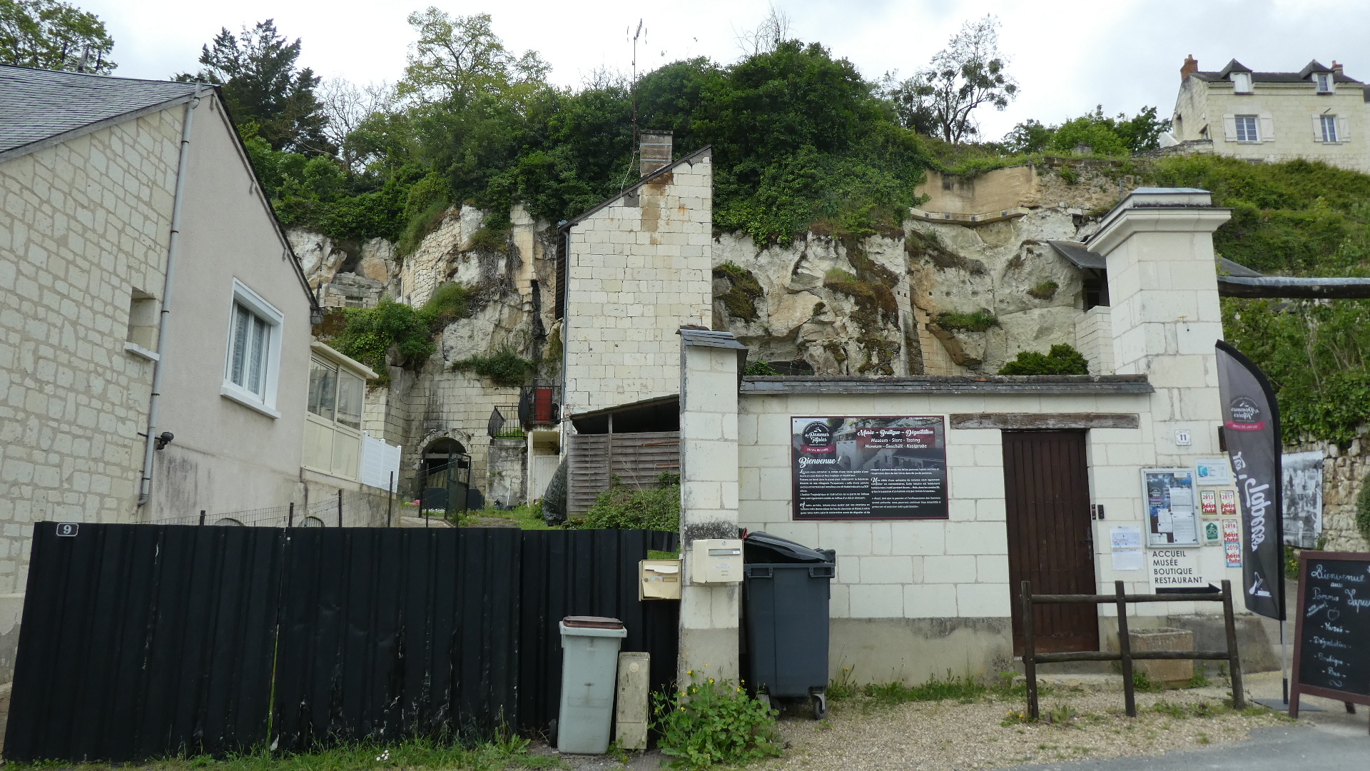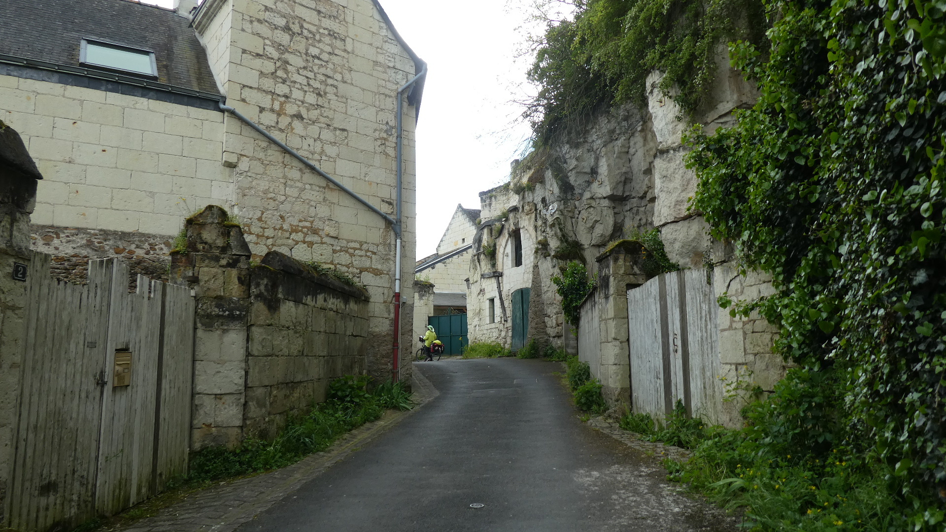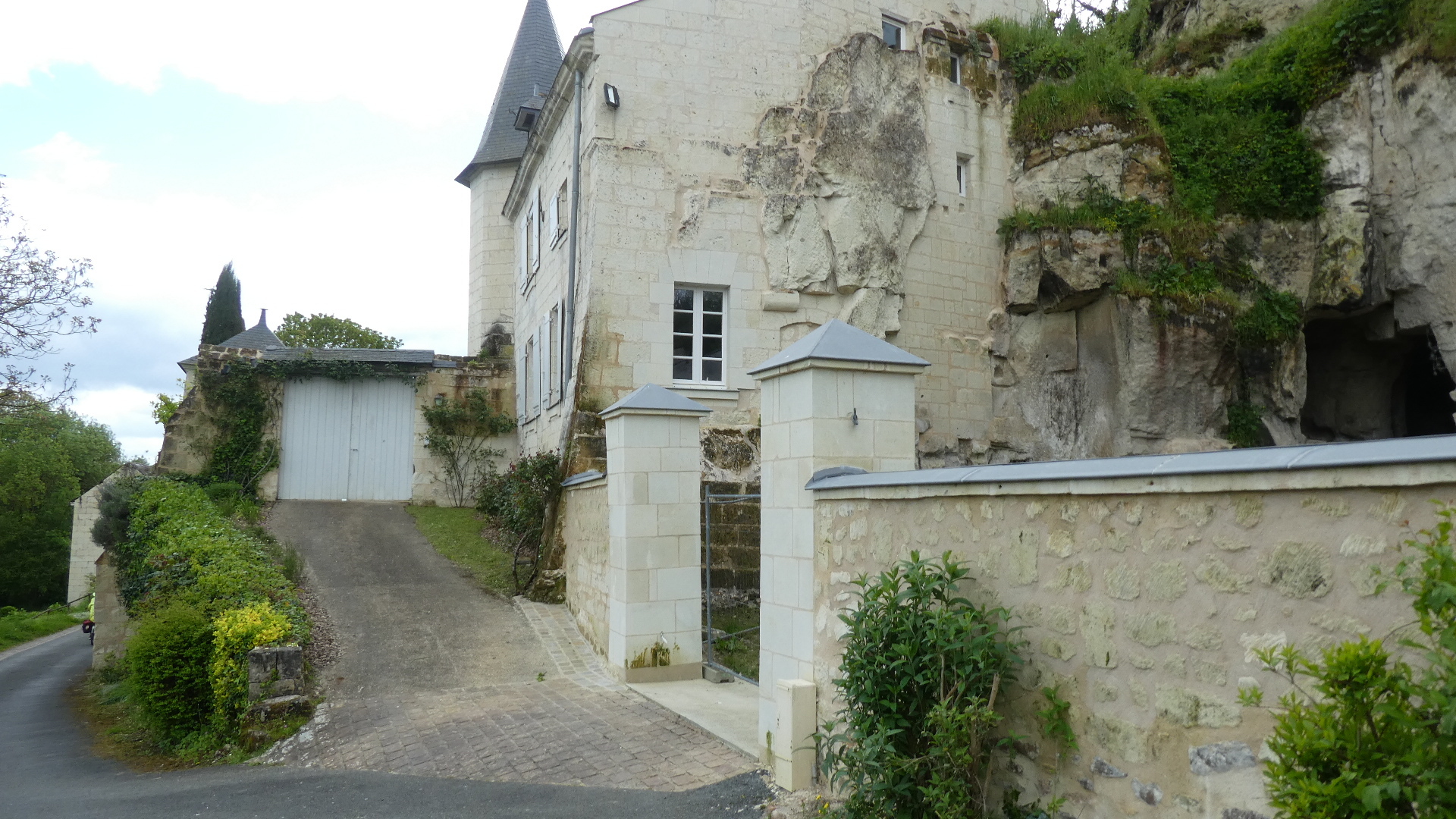 Most of the houses here, and in fact all the way to Paris, use tuffeau carved from cliffs like those above for construction.